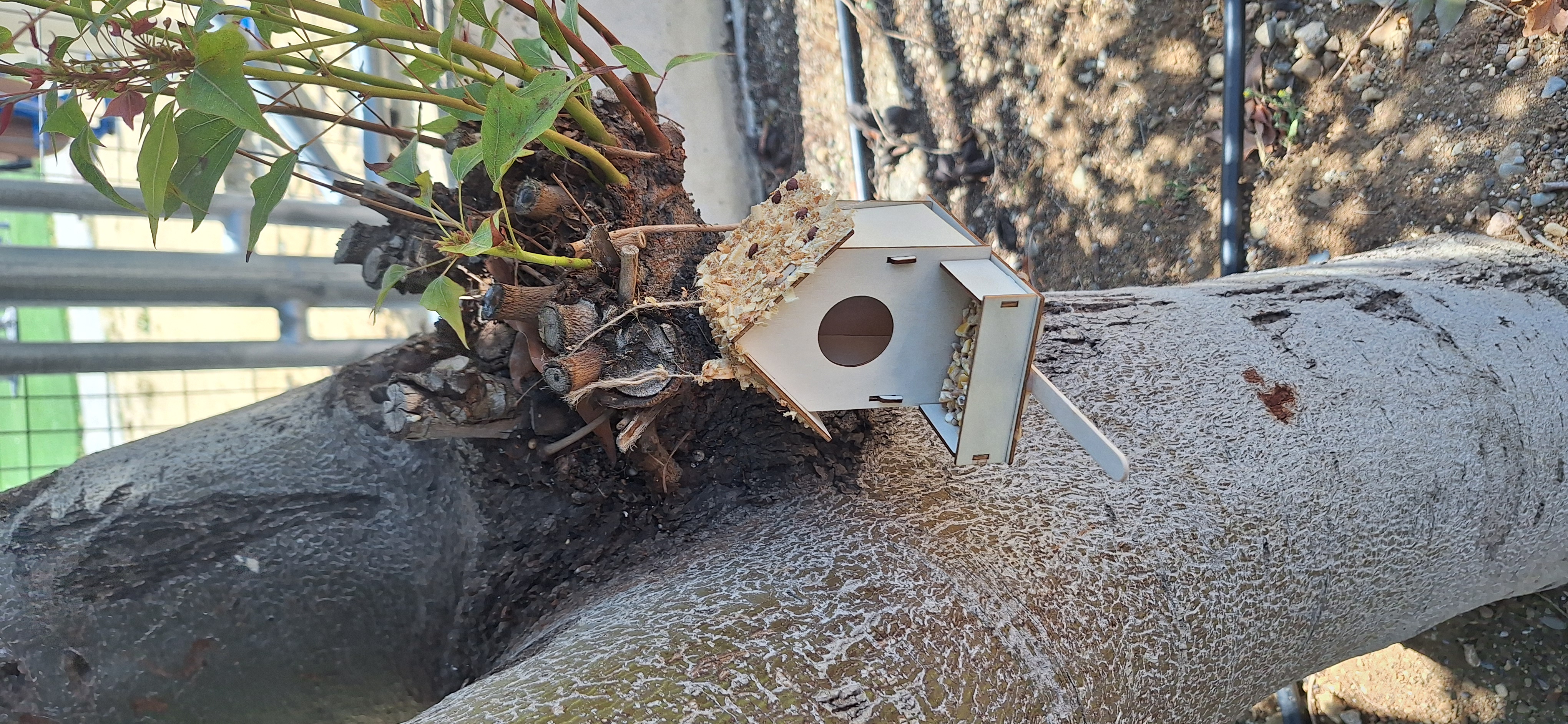 Τα παιδιάκια της Α' τάξης, με καθοδήγηση της δασκάλας τους, συναρμολόγησαν ξύλινες φωλιές πουλιών και αφού κόλλησαν πριονίδια στις στέγες τους, γέμισαν με σποράκια τις φωλιές και τις κρέμασαν στον κήπο για να προσελκύσουμε πουλάκια στον χώρο μας. Ήδη κάποιες από τις φωλιές έχουν "κατοικηθεί"!