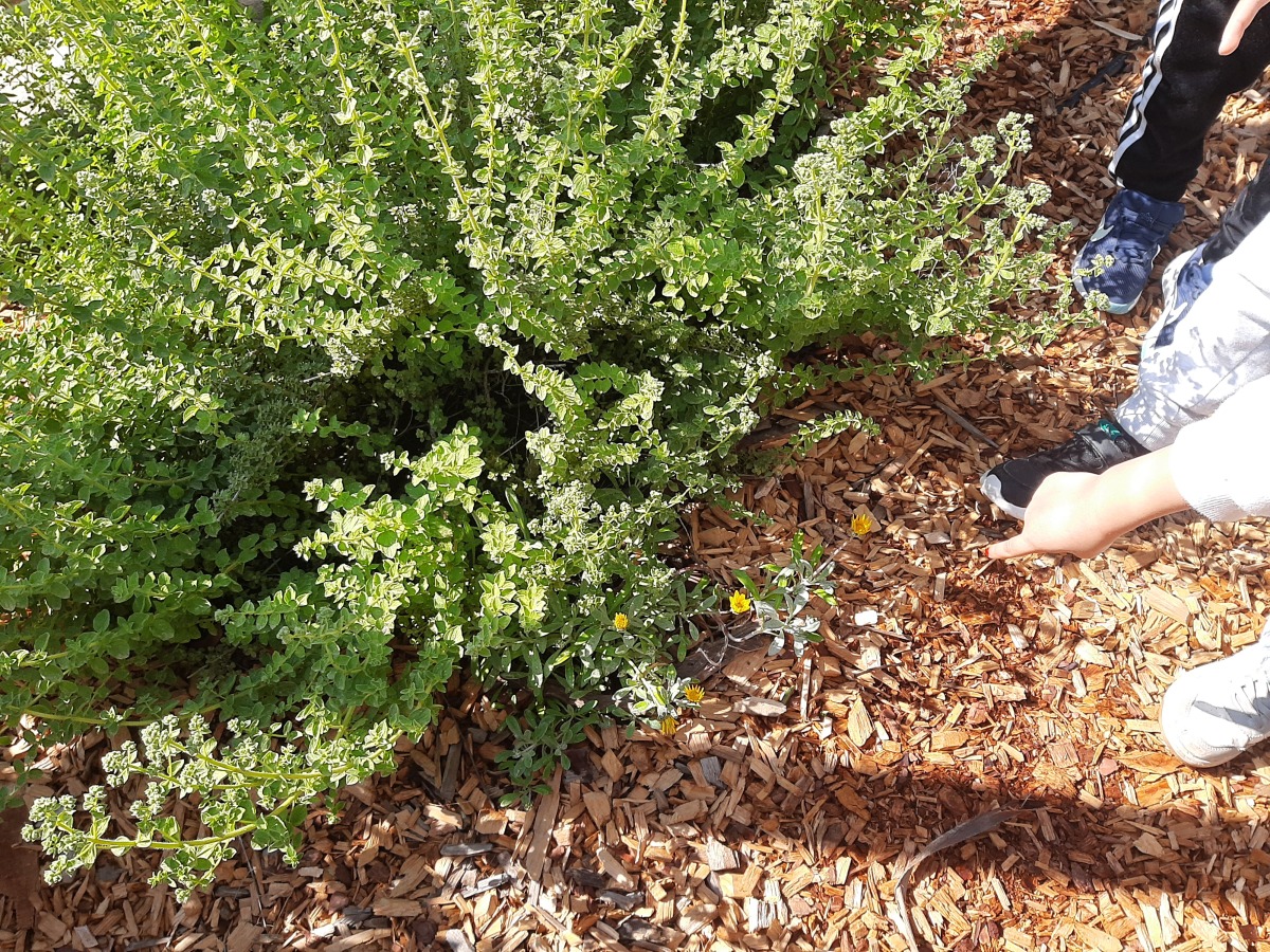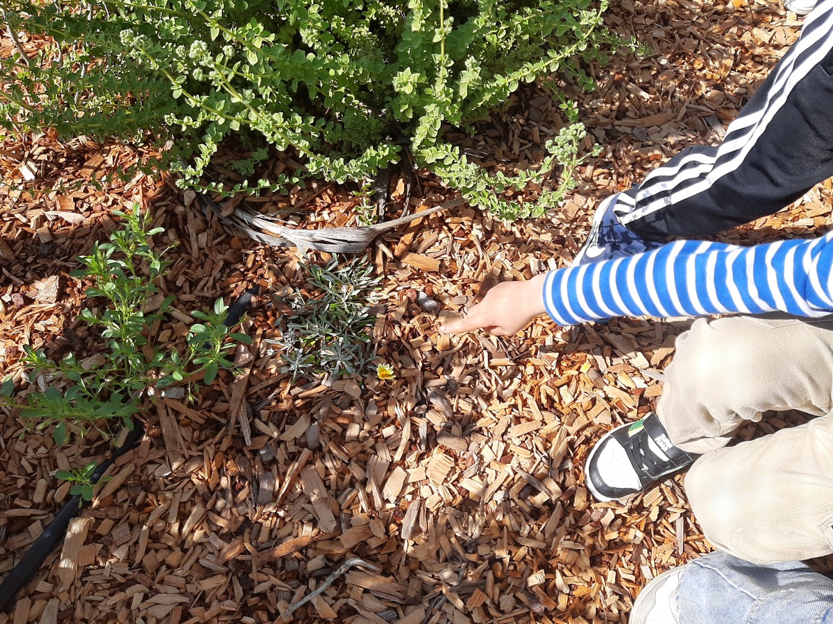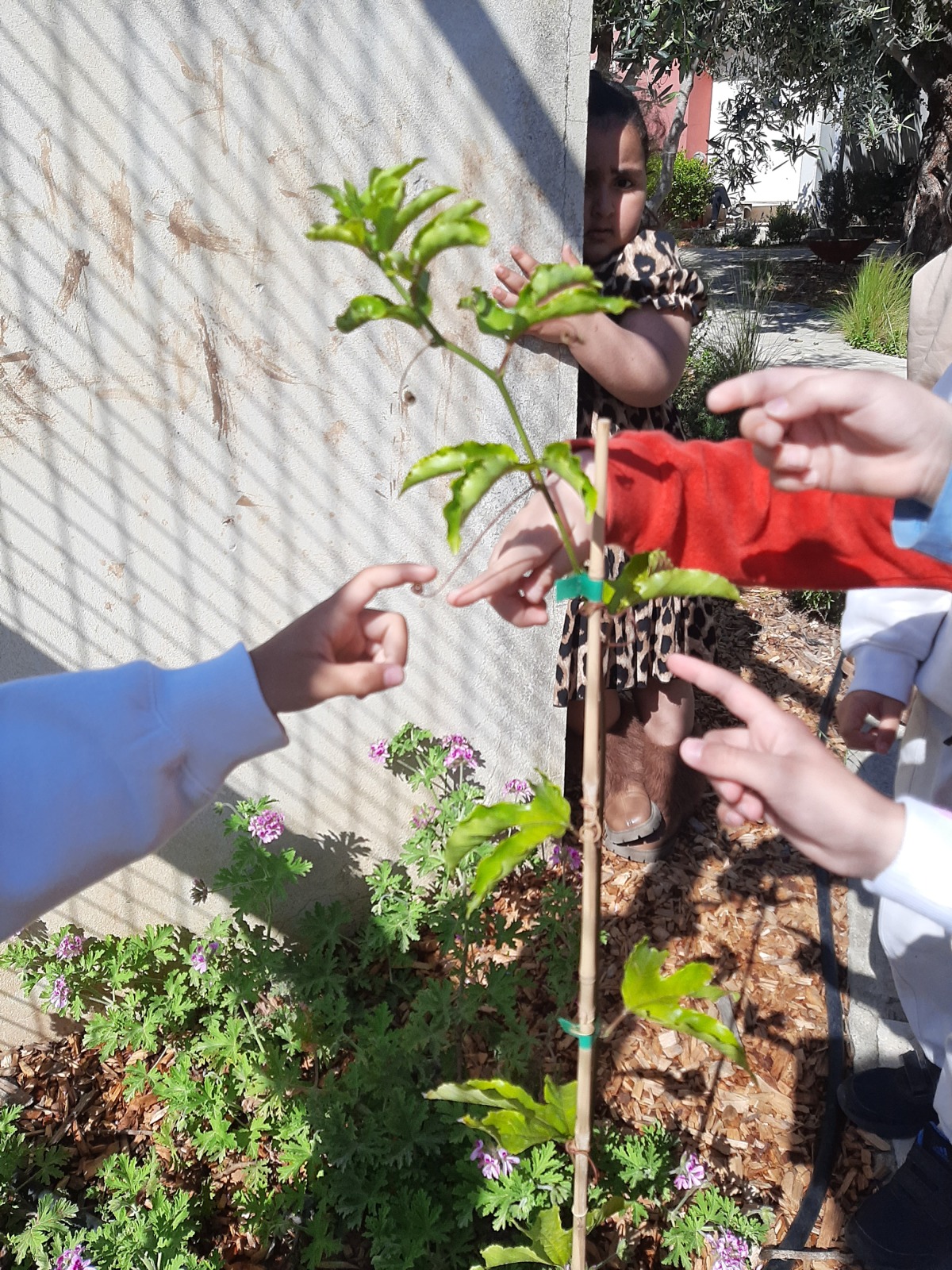 Η μηλιά άρχισε να δυναμώνει και να φαίνονται ωραία τα φύλλα της. Φυτά φύτρωσαν από μόνα τους χωρίς να τα έχουμε φυτέψει και κάποια φυτά μάλιστα κατάφεραν να φυτρώσουν μέσα από κουγκρί. Στις σχισμές των κομμένων κορμών φύτρωσαν μανιτάρια. Συζητήσαμε πώς ήταν ο χώρος της φύσης το Χειμώνα και πώς έγινε την άνοιξη.