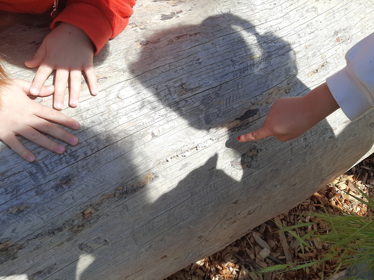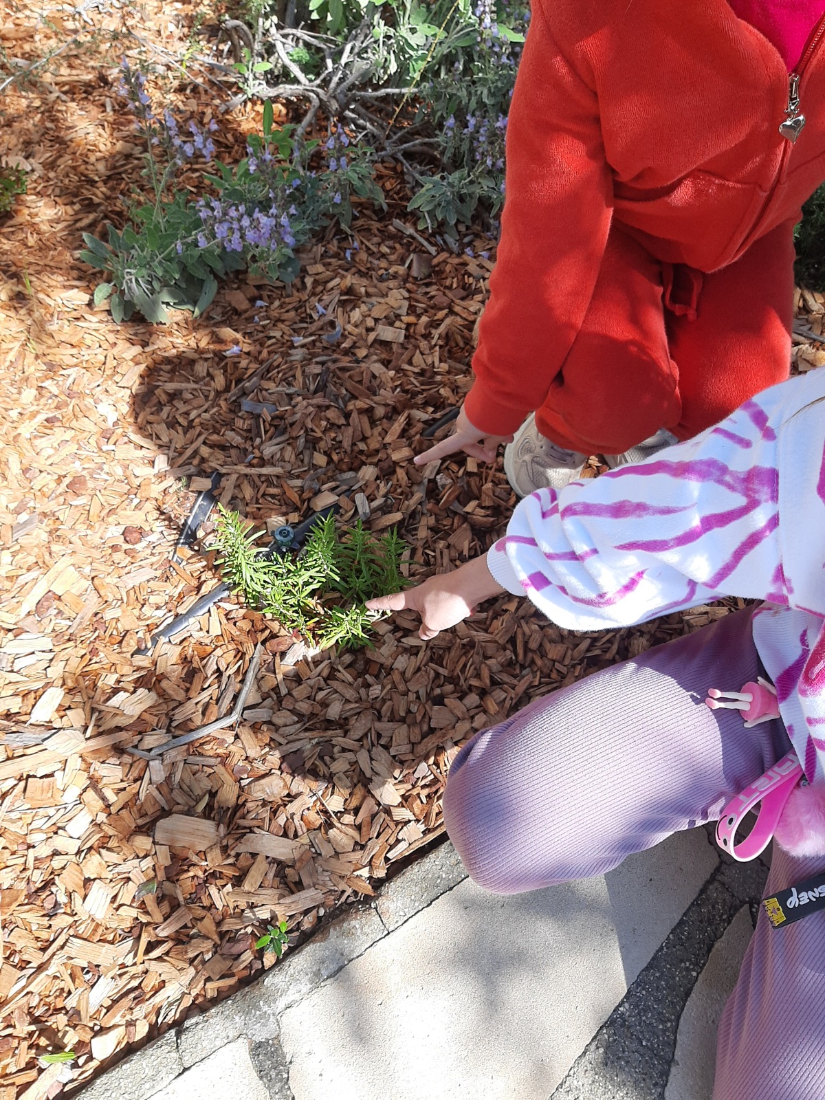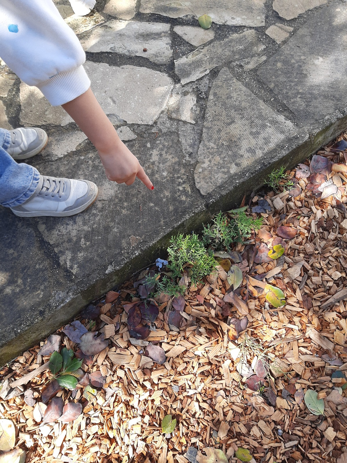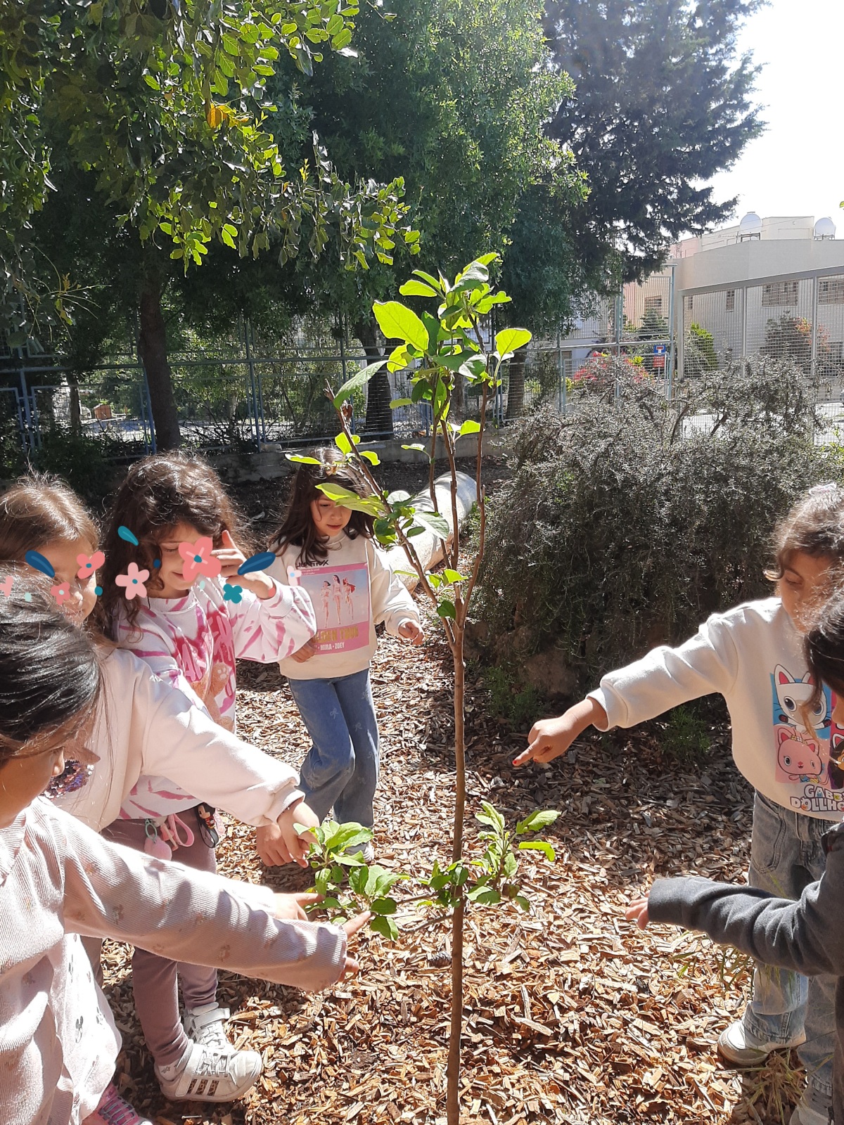 Η μηλιά άρχισε να δυναμώνει και να φαίνονται ωραία τα φύλλα της. Φυτά φύτρωσαν από μόνα τους χωρίς να τα έχουμε φυτέψει και κάποια φυτά μάλιστα κατάφεραν να φυτρώσουν μέσα από κουγκρί. Στις σχισμές των κομμένων κορμών φύτρωσαν μανιτάρια. Συζητήσαμε πώς ήταν ο χώρος της φύσης το Χειμώνα και πώς έγινε την άνοιξη.