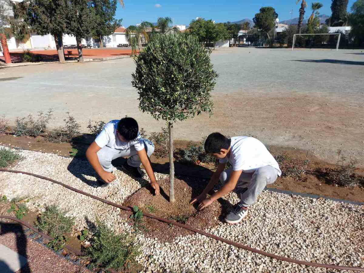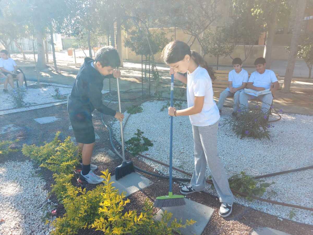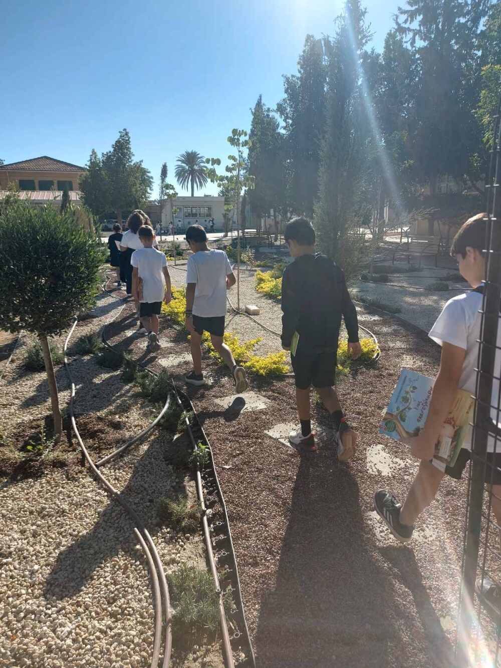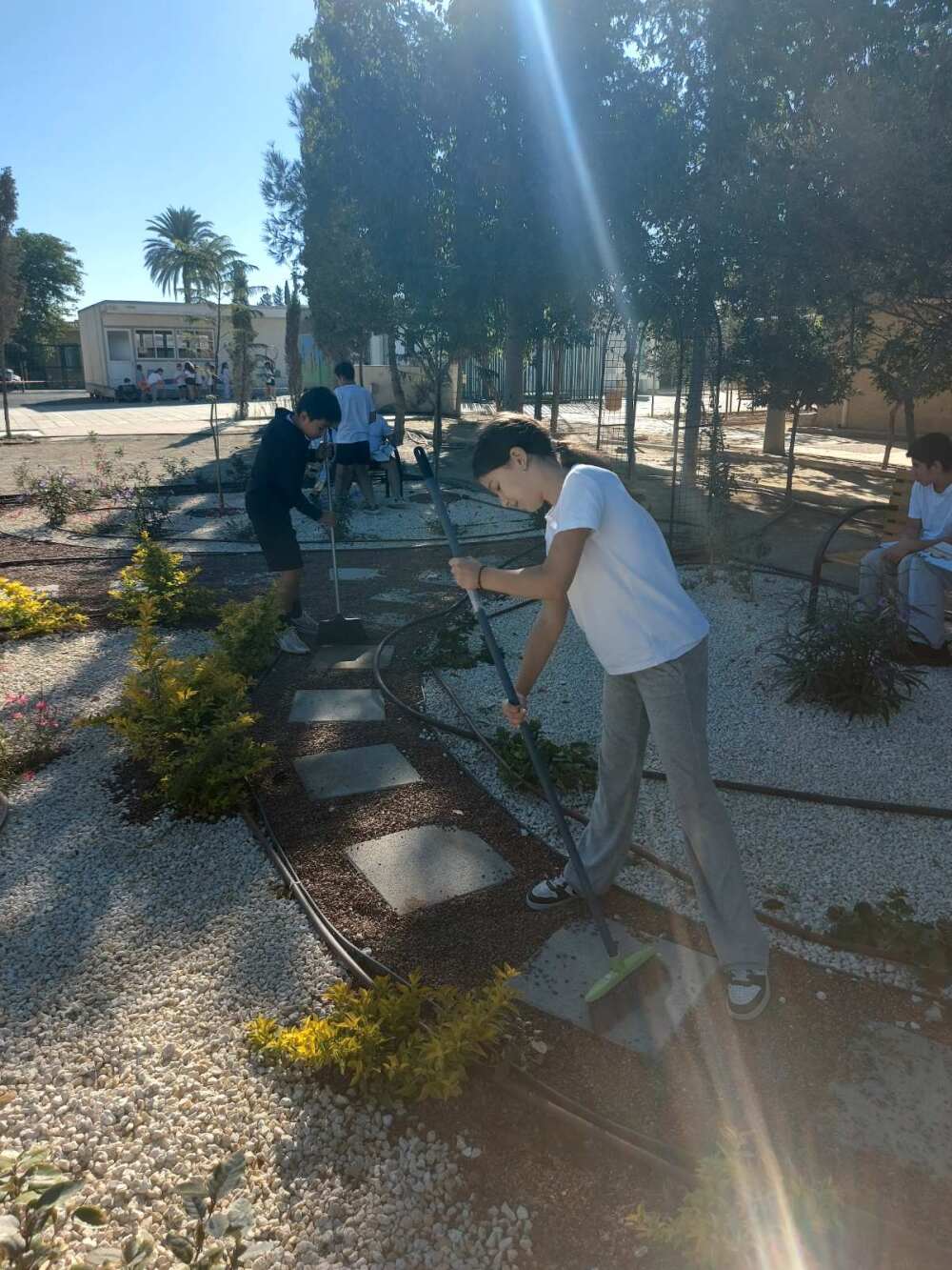 Μαθητές/μαθήτριες ποτίζουν, σκαλίζουν, δημιουργούν λεκάνες για τα δέντρα, φροντίζουν τον κήπο μας.