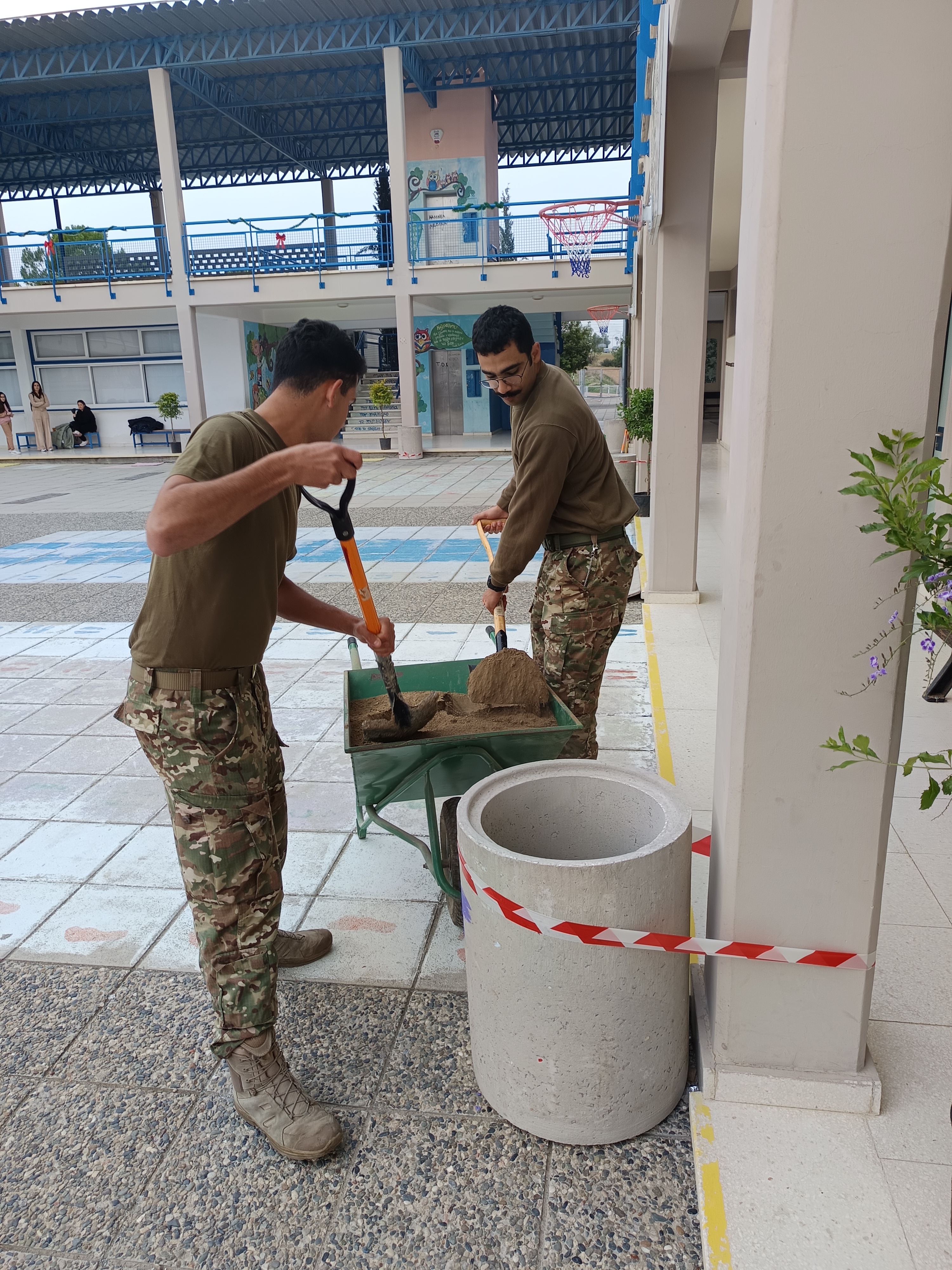 Στην είσοδο και στην εσωτερική αυλή του σχολείου κυριαρχούσε το μπετόν και τα κάγκελα. Έτσι αποφασίστηκε να αγοραστούν μεγάλοι ανθώνες και πολυετή φυτά που είναι δοκιμασμένα στις καιρικές συνθήκες της Κύπρου. Κουμ κουάτ, γαλλικό γιασεμί, ντουράντες, μπλουμπάκο, ρολογιές και βιγνώνιες