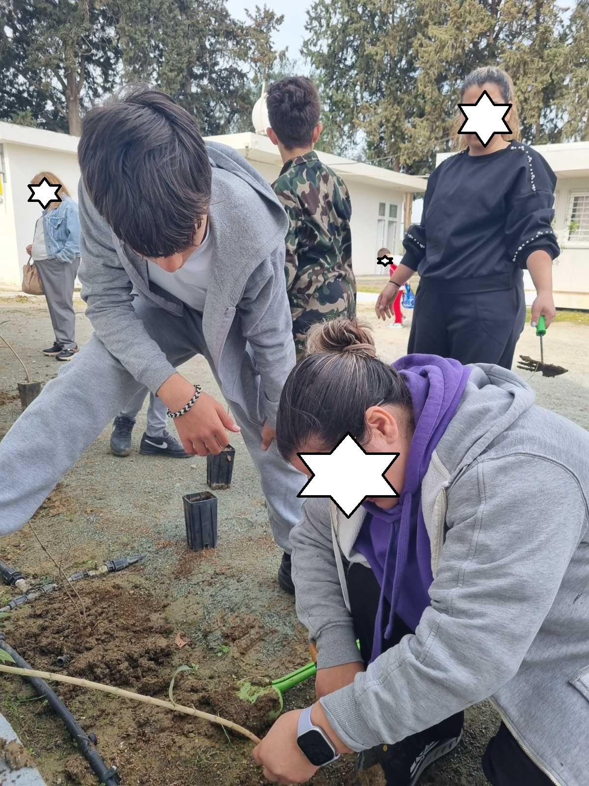 - Γονείς και παιδιά φυτεύουν στην αυλή του σχολείου. Μύρισε Άνοιξη.