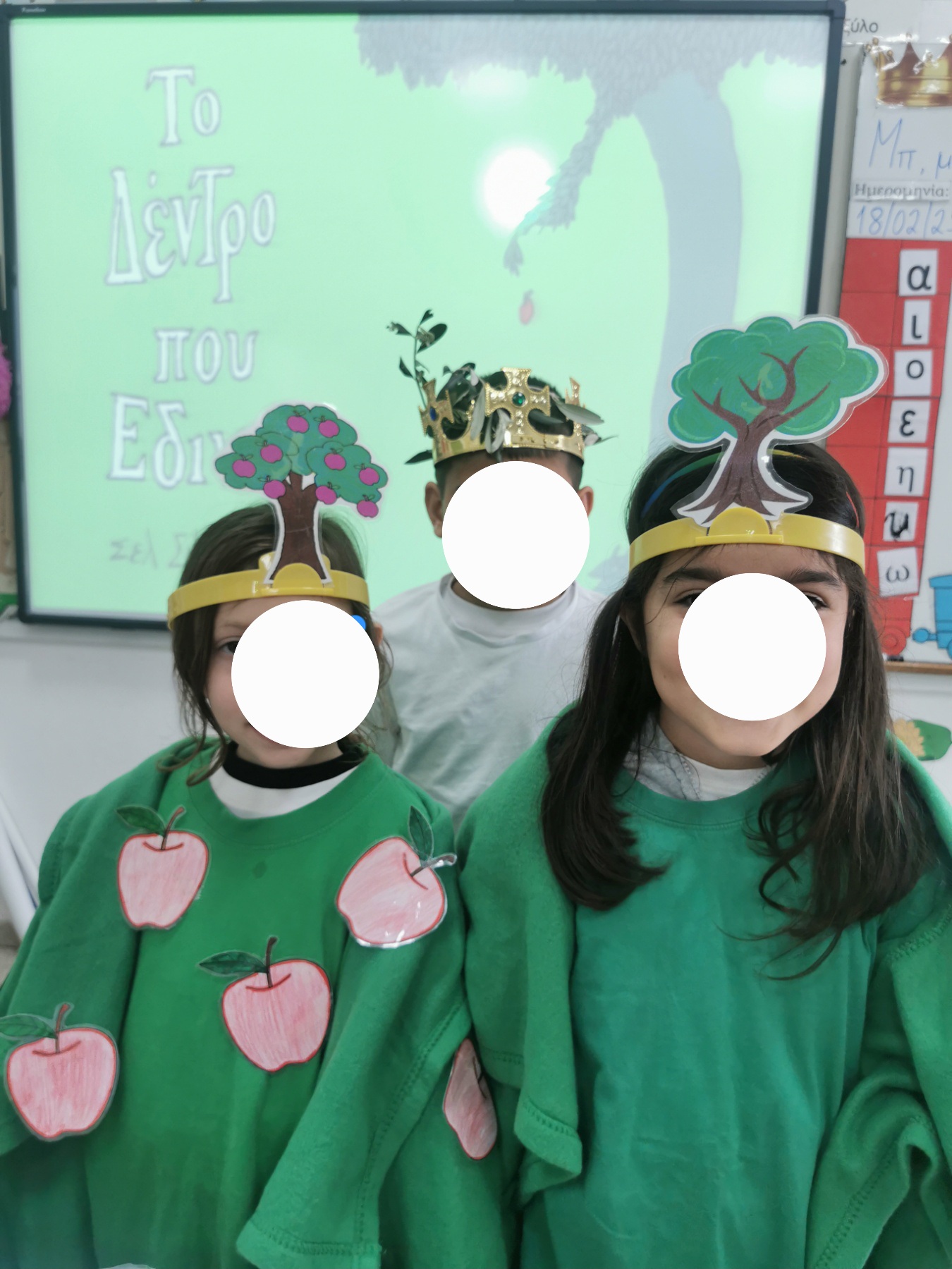 Οι μικροί μαθητές και μαθήτριες της Α1’ και Β2' τάξης διάβασαν το υπέροχο παραμύθι «Το δέντρο που έδινε» του Σέλ Σιλβερσταϊν, ένα κείμενο γεμάτο συναισθήματα και πολύτιμα μηνύματα για την αγάπη, τη γενναιοδωρία και τη σημασία της φύσης στη ζωή μας. Μέσα από την επεξεργασία του παραμυθιού, τα παιδιά αναγνώρισαν τη σπουδαιότητα των δέντρων, τη δύναμη της προσφοράς και τη σχέση ανθρώπου – φύσης. Συζήτησαν για το πώς πρέπει να φροντίζουμε το περιβάλλον και πώς μπορούμε να δείχνουμε ευγνωμοσύνη στη φύση που καθημερινά μας προσφέρει τόσα πολλά . Η δράση ολοκληρώθηκε με ζωγραφιές, μικρές κατασλευές αλλά και δραματοποίηση του παραμυθιού.