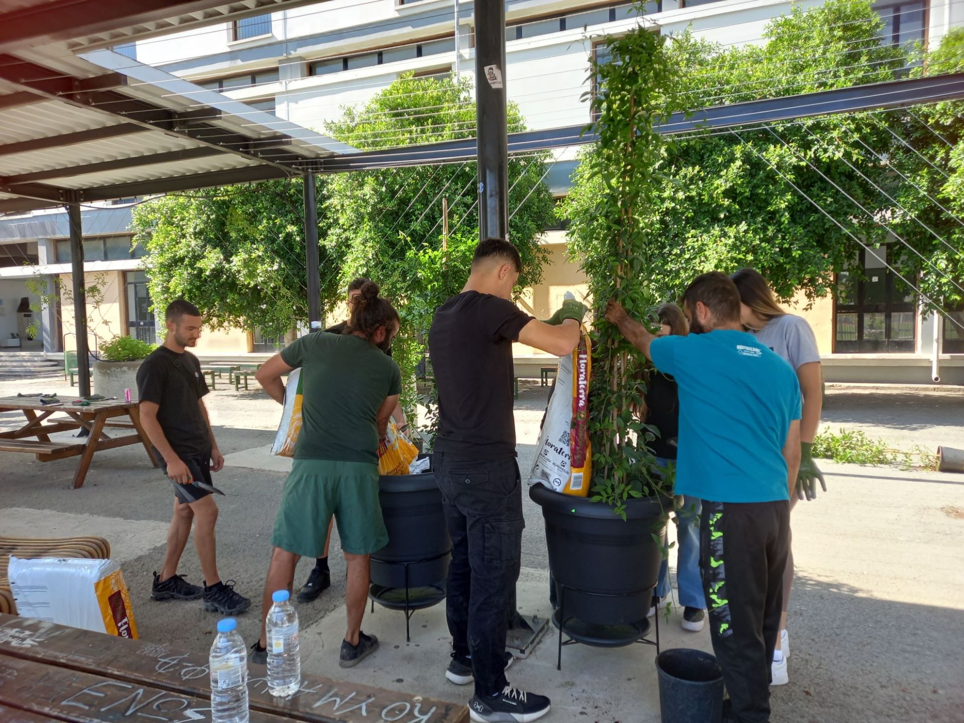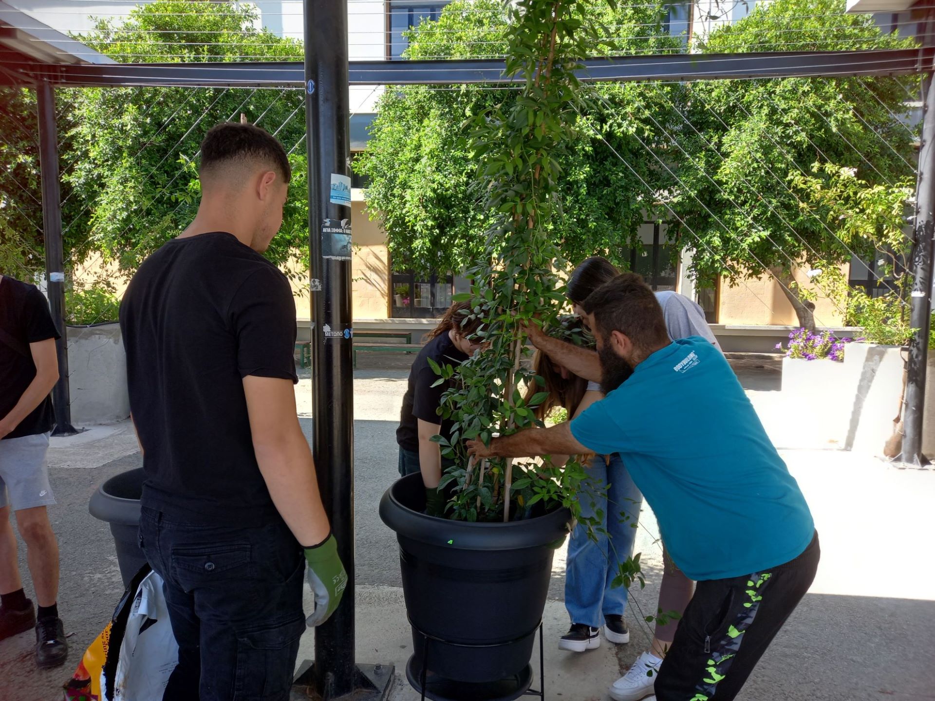 Την Πέμπτη 19/06/2025 ομάδα μαθητών και μαθητριών του προγράμματος ενισχυτικής διδασκαλίας, αφιέρωσαν χρόνο από τα διαλείμματά τους και μαζί με τους κηπουρούς, φύτευσαν επιπλέον αναρριχώμενα φυτά και συγκεκριμένα πανδωρέες. Σκοπός της νέας φύτευσης (προστέθηκαν στο χώρο πρασίνου και δύο νέες γλάστρες) είναι η επίσπευση της κάλυψης με πράσινο του στέγαστρου.