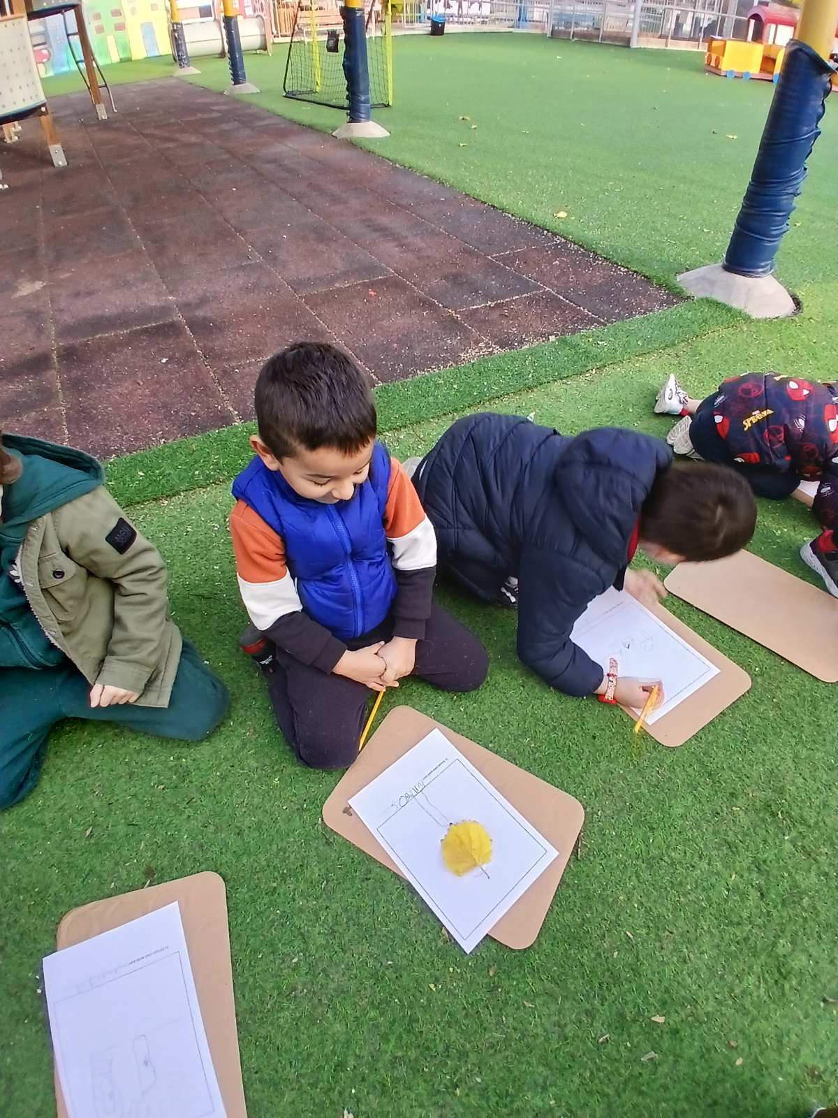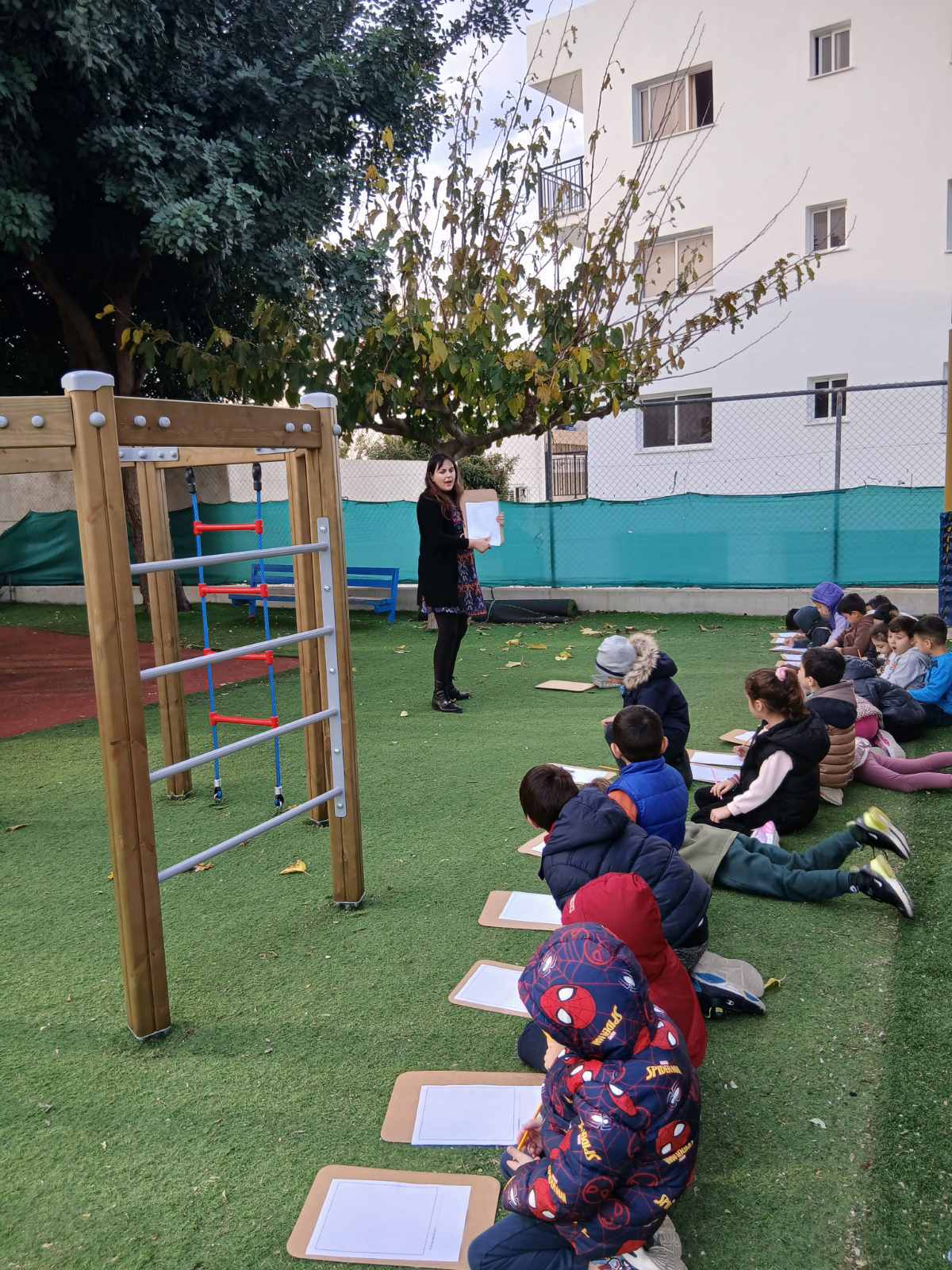 Κάναμε μάθημα στην αυλή μας παρατηρώντας τα δέντρα που έχουμε, μάθαμε τα ονόματά τους και αφού τα ταξινομήσαμε σε φυλλοβόλα και αειθαλή τα σχεδιάσαμε.