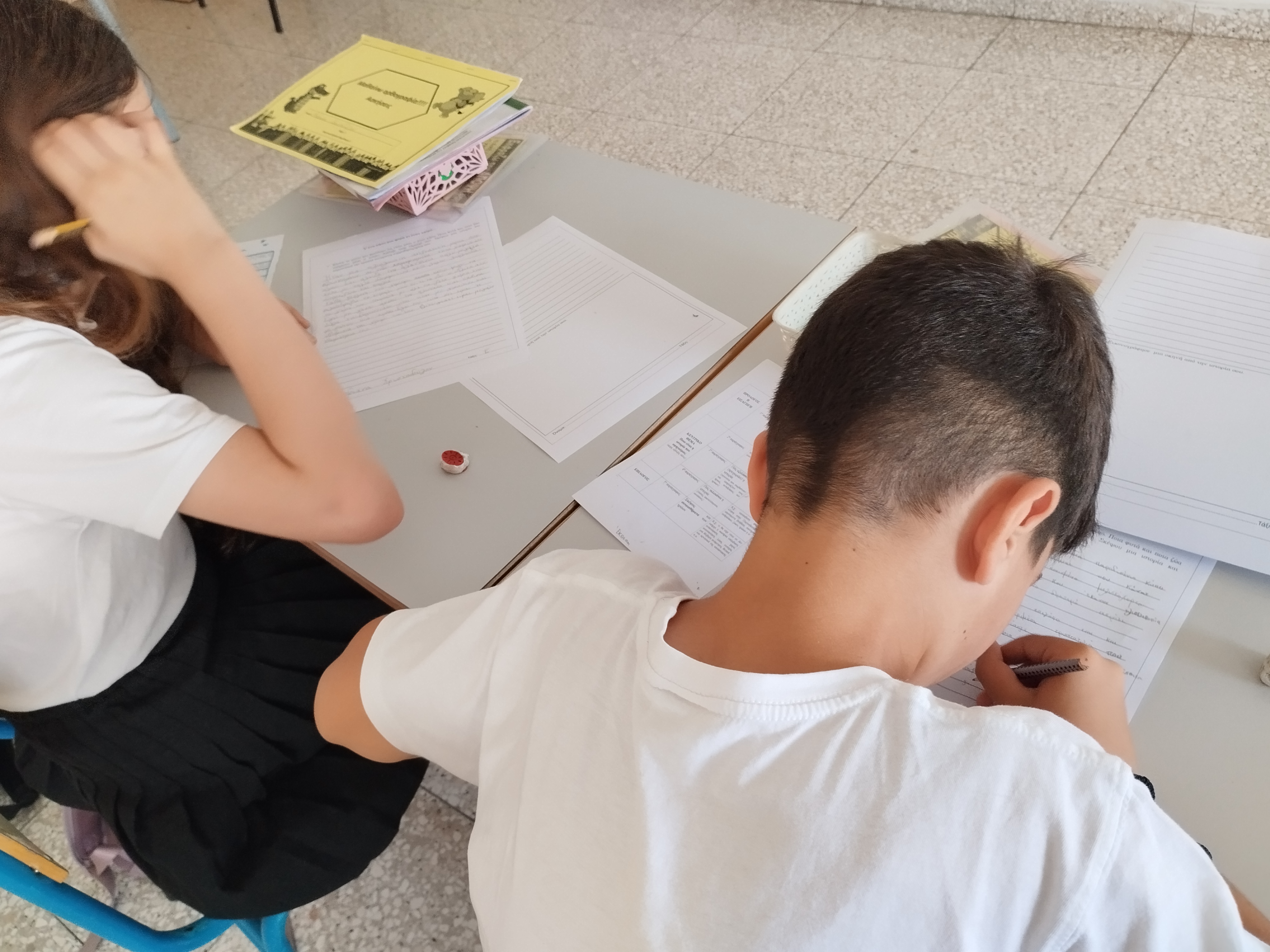 Τα παιδιά της Ε' τάξης ταξίδεψαν με τα φτερά της φαντασίας τους σε ένα αλλιώτικο κήπο. Εκεί συνάντησαν διάφορους ήρωες, δέντρα αλλιώτικα, ζώα και φυτά που συμπεριφέρονται ανθρώπινα. Όλα αυτά τα κατέγραψαν στις δικές τους φανταστικές ιστορίες.Σε ένα κήπο μια φορά κι έναν καιρό....pdf6.15 MB