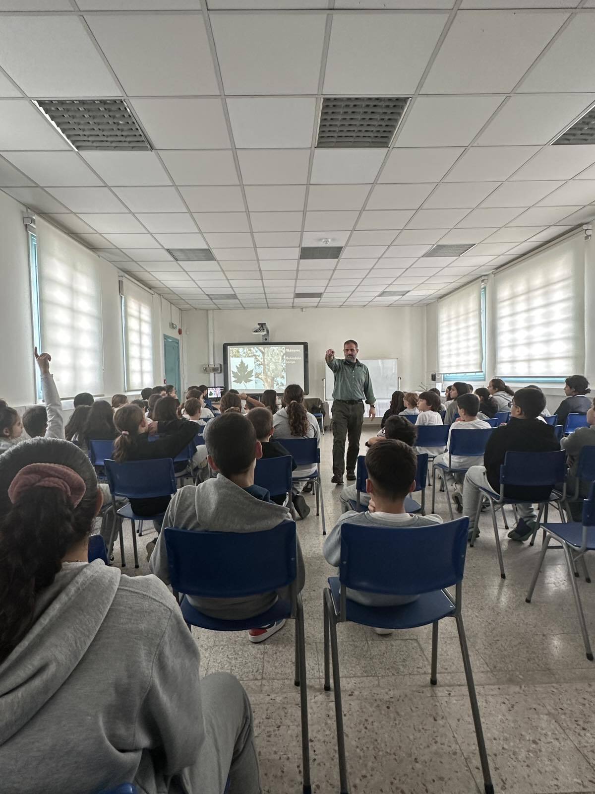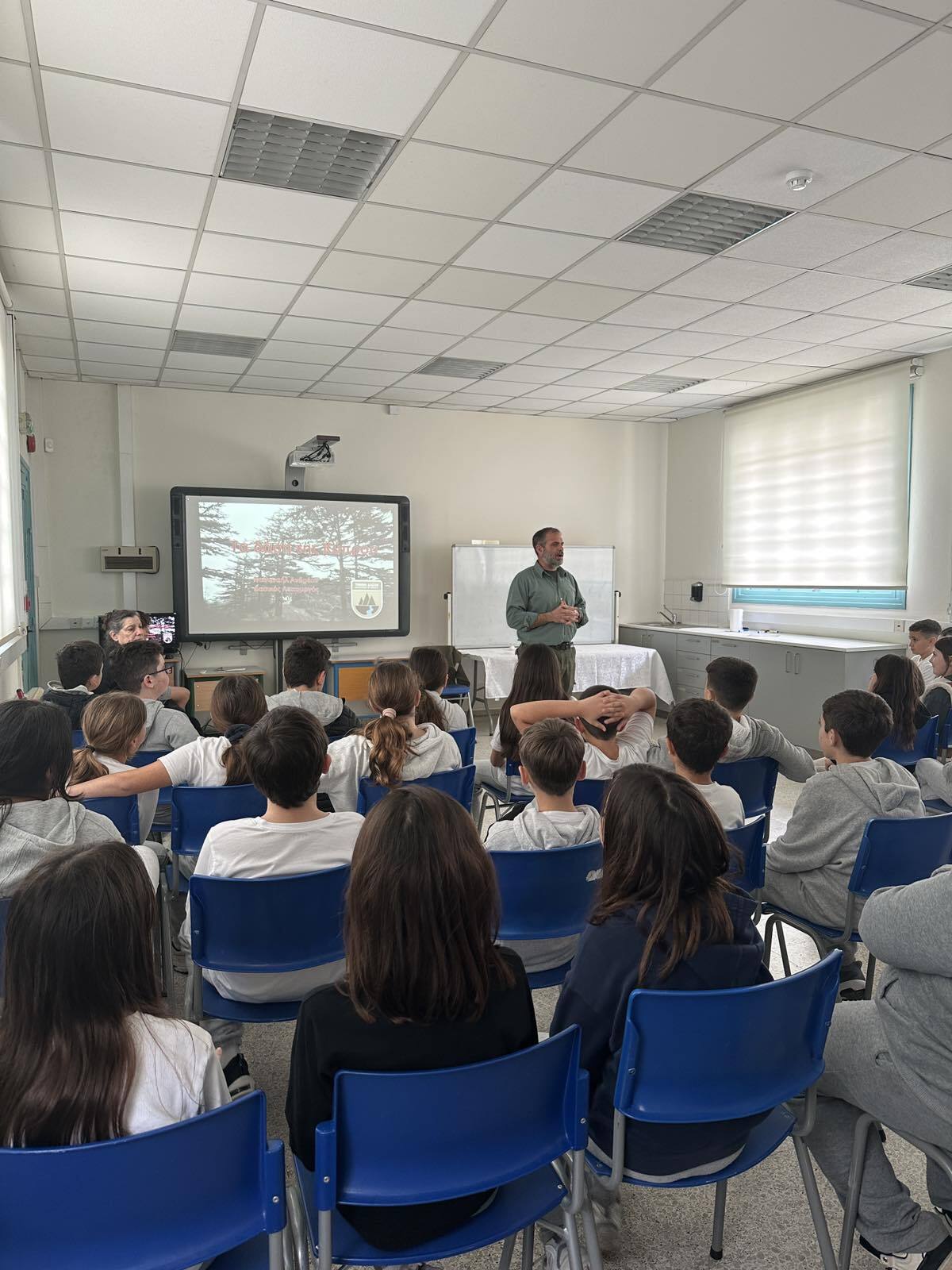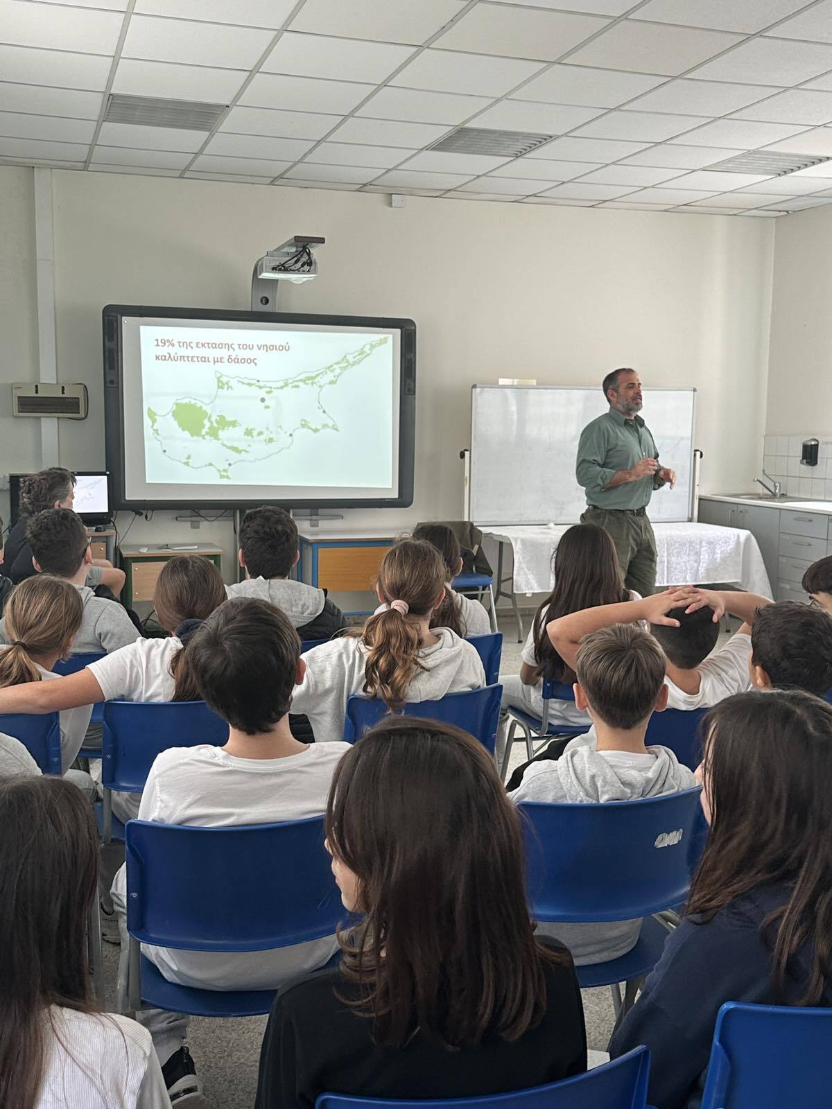Στο πλαίσιο του προγράμματος «Πρασινίζω», πραγματοποιήθηκε ενημερωτική διάλεξη από λειτουργό του Τμήματος Δασών προς τα παιδιά των Δ΄, Ε΄ και Στ΄ τάξεων του σχολείου μας, με θέμα τα δάση της Κύπρου και τη σημασία τους για το φυσικό περιβάλλον.