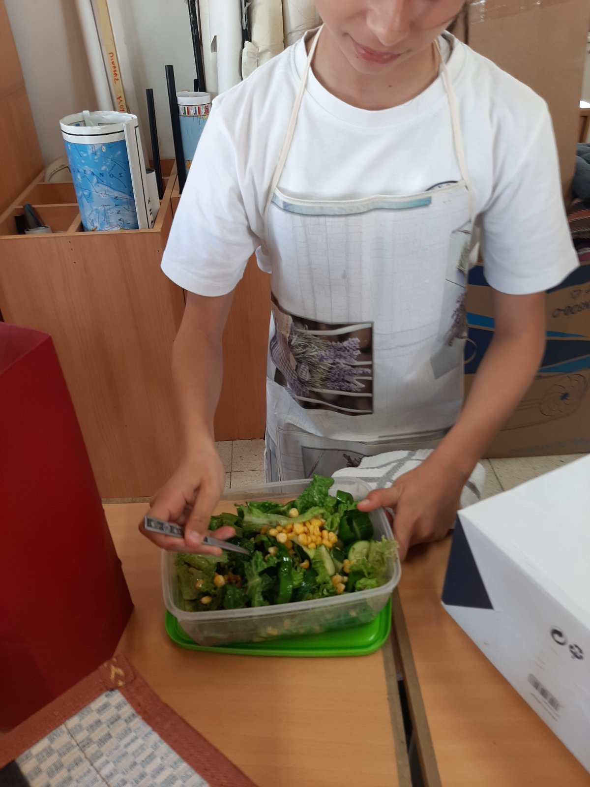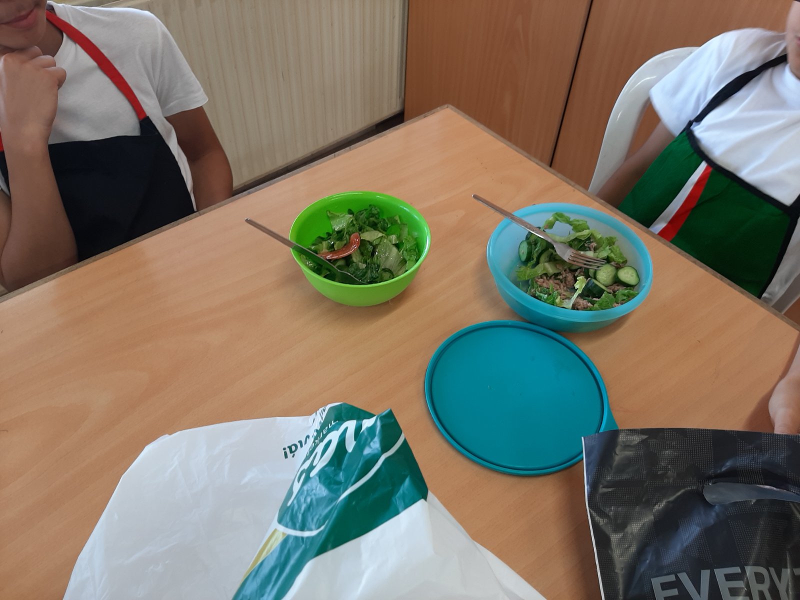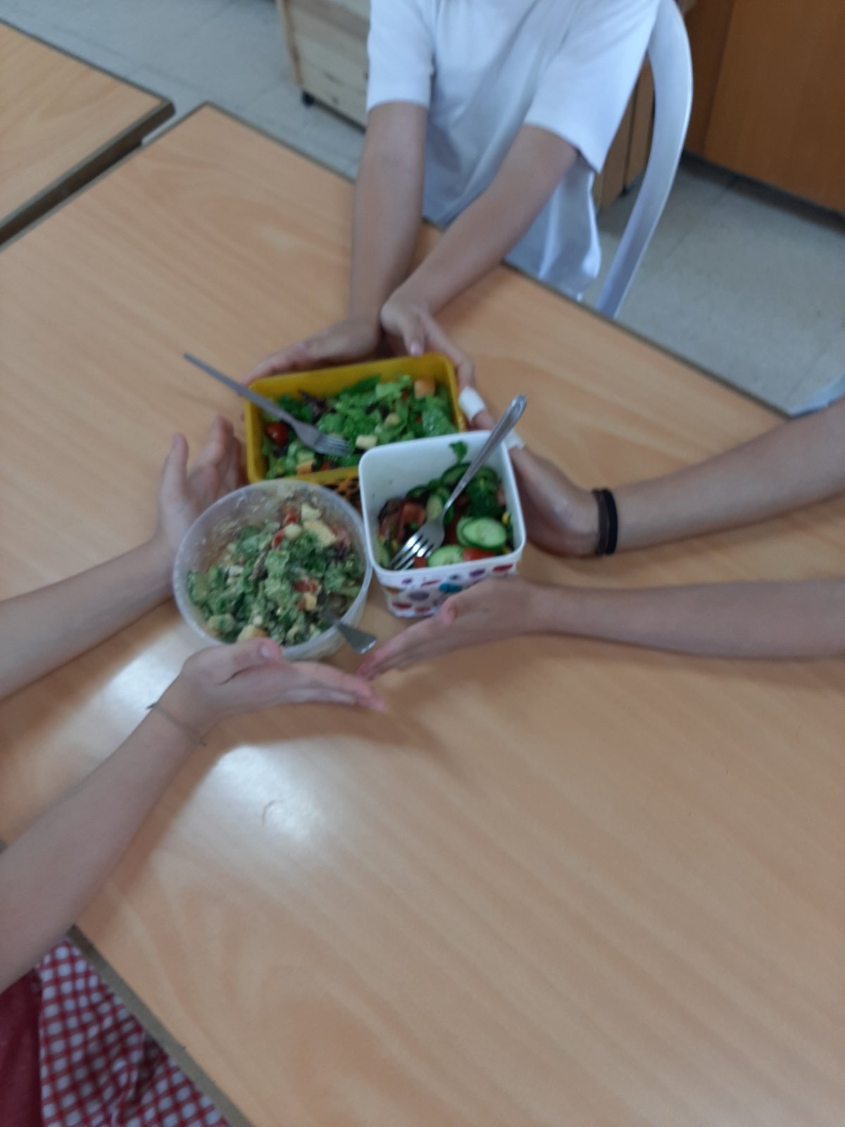 Μετά από δυο περίπου μήνες τα πρώτα μας λαχανικά είναι έτοιμα. Τα παιδιά της Στ' τάξης έφτιαξαν και απόλαυσαν σαλάτες, προσθέτοντας τα μαρούλια από τον λαχανόκηπό μας και ό,τι άλλα υλικά έφεραν από το σπίτι. Τα μικρότερα παιδιά τα απόλαυσαν μέσα στο σάντουιτς τους το πρώτο διάλειμμα στο σχολείο. Ήταν μεγάλη η χαρά των παιδιών, αλλά και όλου το προσωπικού του σχολείου, που κατάφεραν να απολαύσουν τους καρπούς των κόπων τους!