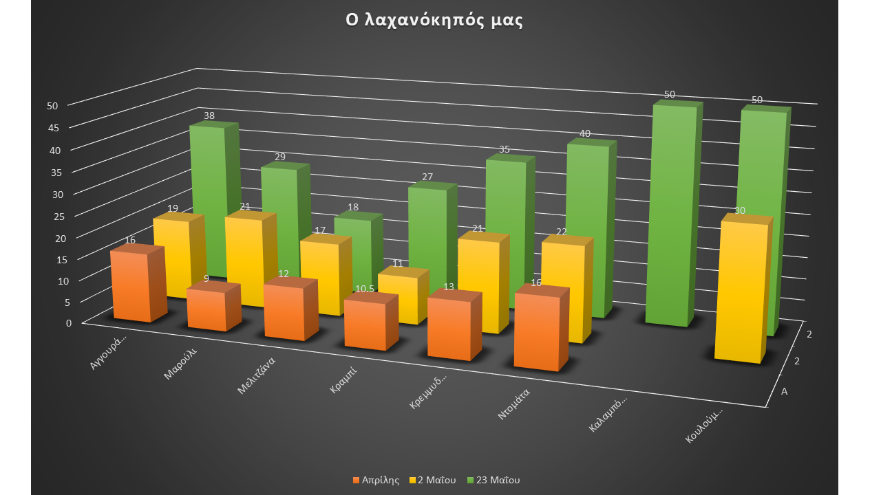 - Μέτρηση του ύψους των λαχανικών και δημιουργία τρίπτυχου
