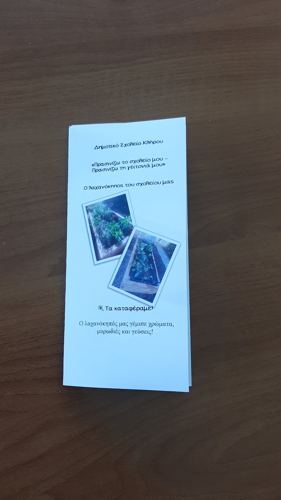 Τα παιδιά της Γ' τάξης με την καθοδήγηση της δασκάλας τους, έκαναν παρατηρήσεις για την ανάπτυξη των φυτών στο παρτέρι τους. Μέτρησαν σε 3 φάσεις το ύψος των φυτών στο παρτέρι τους και κατέγραψαν τις μετρήσεις σε πίνακα. Σε κάθε επίσκεψή τους στον κήπο, όμως, τα παιδιά φρόντιζαν για την καθαριότητα του χώρου, μαζεύοντας σκουπιδάκια και άχρηστα υλικά (κλαδάκια και πέτρες) από τον χώρο. Ακολούθως με τη βοήθεια της τεχνολογίας κατασκεύασαν μια γραφική παράσταση και συζήτησαν τα αποτελέσματα των μετρήσεών τους. Τέλος έφτιαξαν ένα τρίπτυχο, όπου ανάρτησαν φωτογραφίες από διάφορες φάσεις της ανάπτυξης των φυτών στο παρτέρι τους και κατέγραψαν τα οφέλη από την κατανάλωση των συγκεκριμένων λαχανικών. Το τρίπτυχο θα διατεθεί στις οικογένειες των παιδιών!