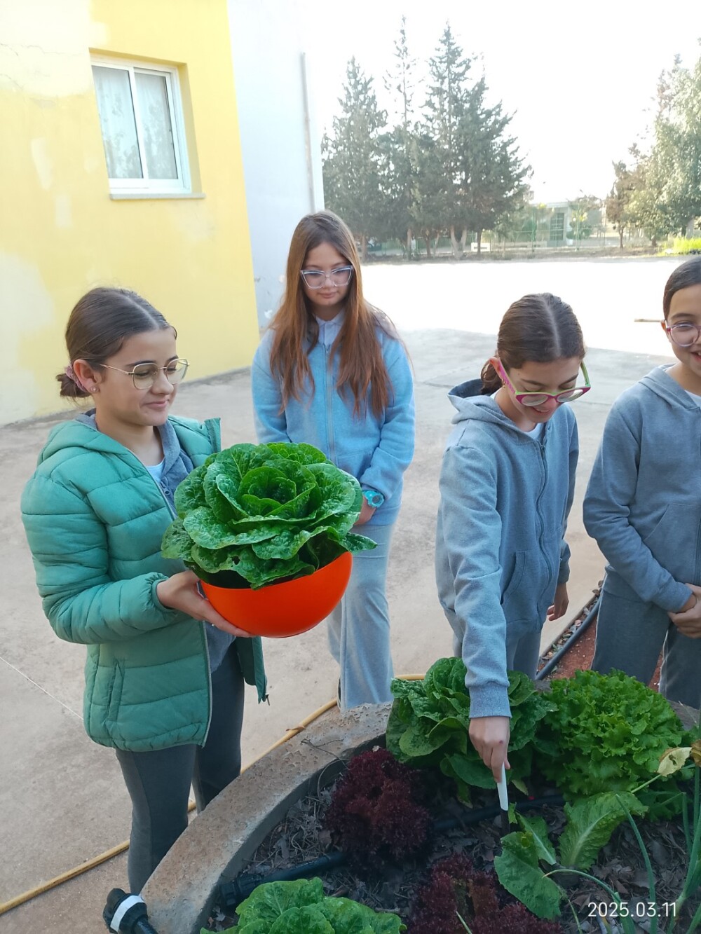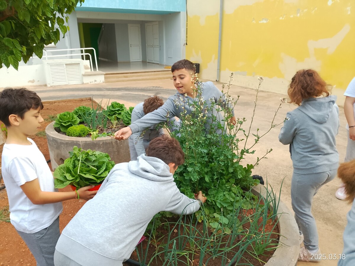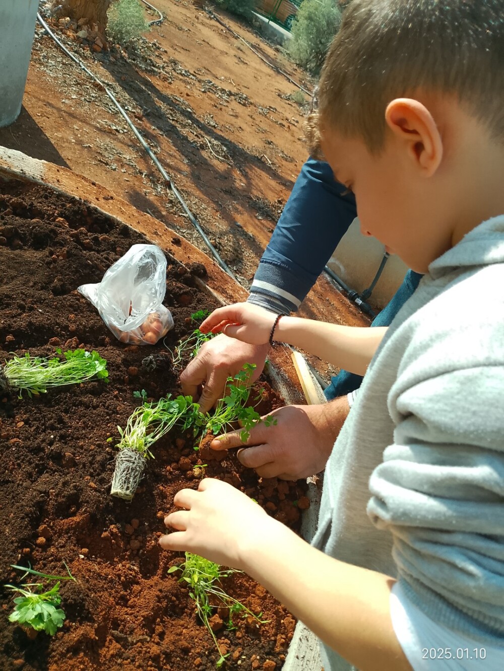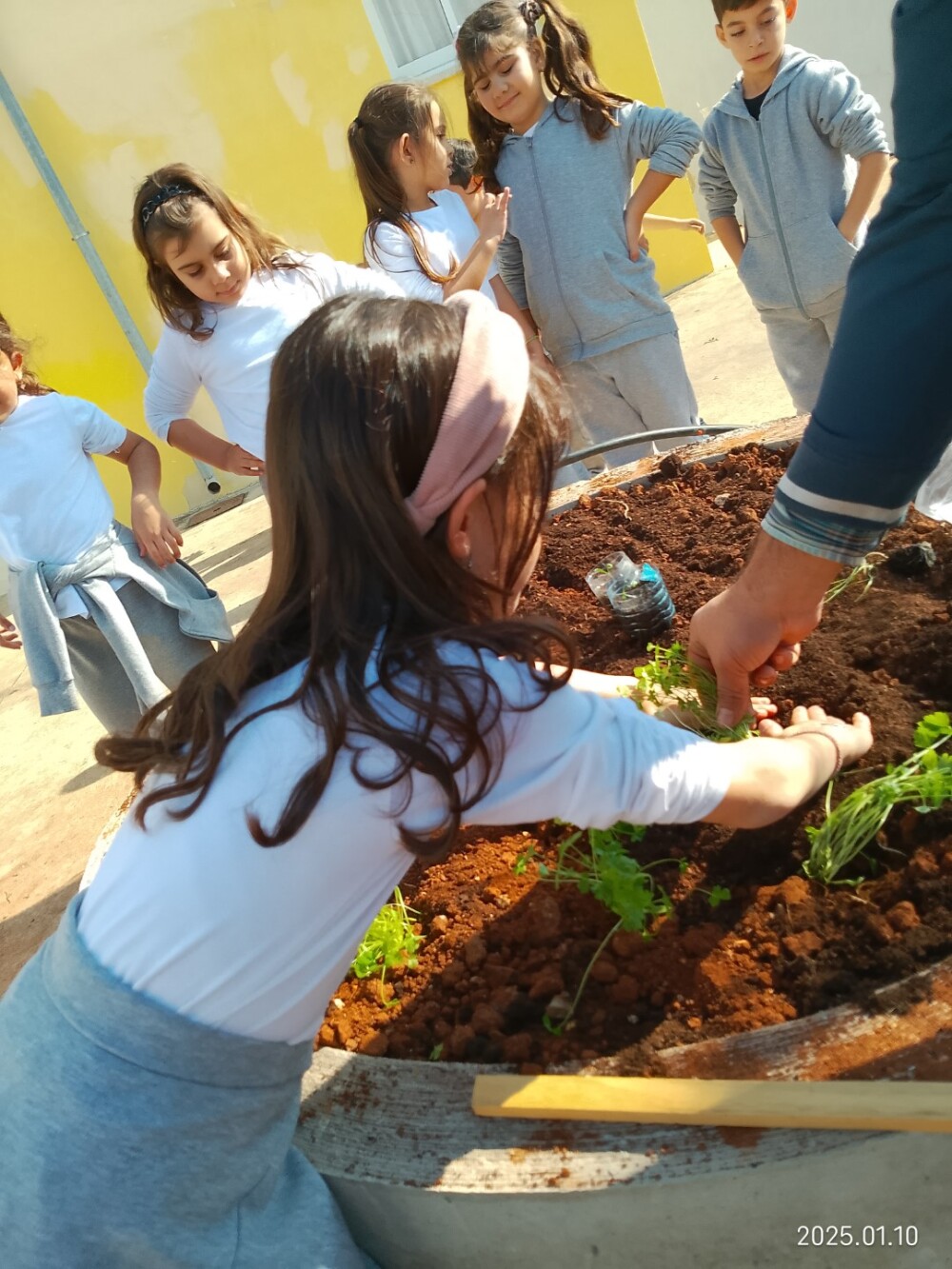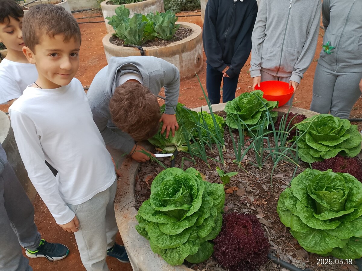 Κάθε τάξη υιοθέτησε ένα παρτέρι και ανέλαβε να φυτέψει σε αυτό λαχανικά. Με αυτό τον τρόπο φυτεύτηκαν για την χειμερινή περίοδο: 6 κραμπιά, 6 μπρόκολα, 6 κουνουπίδια, 6 κουλούμπρες, 6 λάχανα, 6 σέλινα, 12 μαρούλια, περίπου 100 κρεμμυδάκια κοκκάρι, μαϊντανός, κόλιανδρος, σπανάκι. Η φύτευση έγινε από τα παιδιά της τάξης και συνοδεύτηκε με εδαφοκάλυψη και πότισμα.