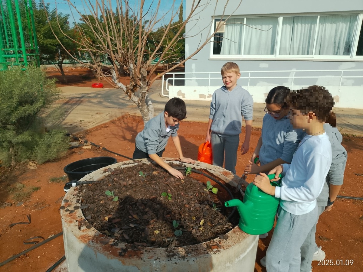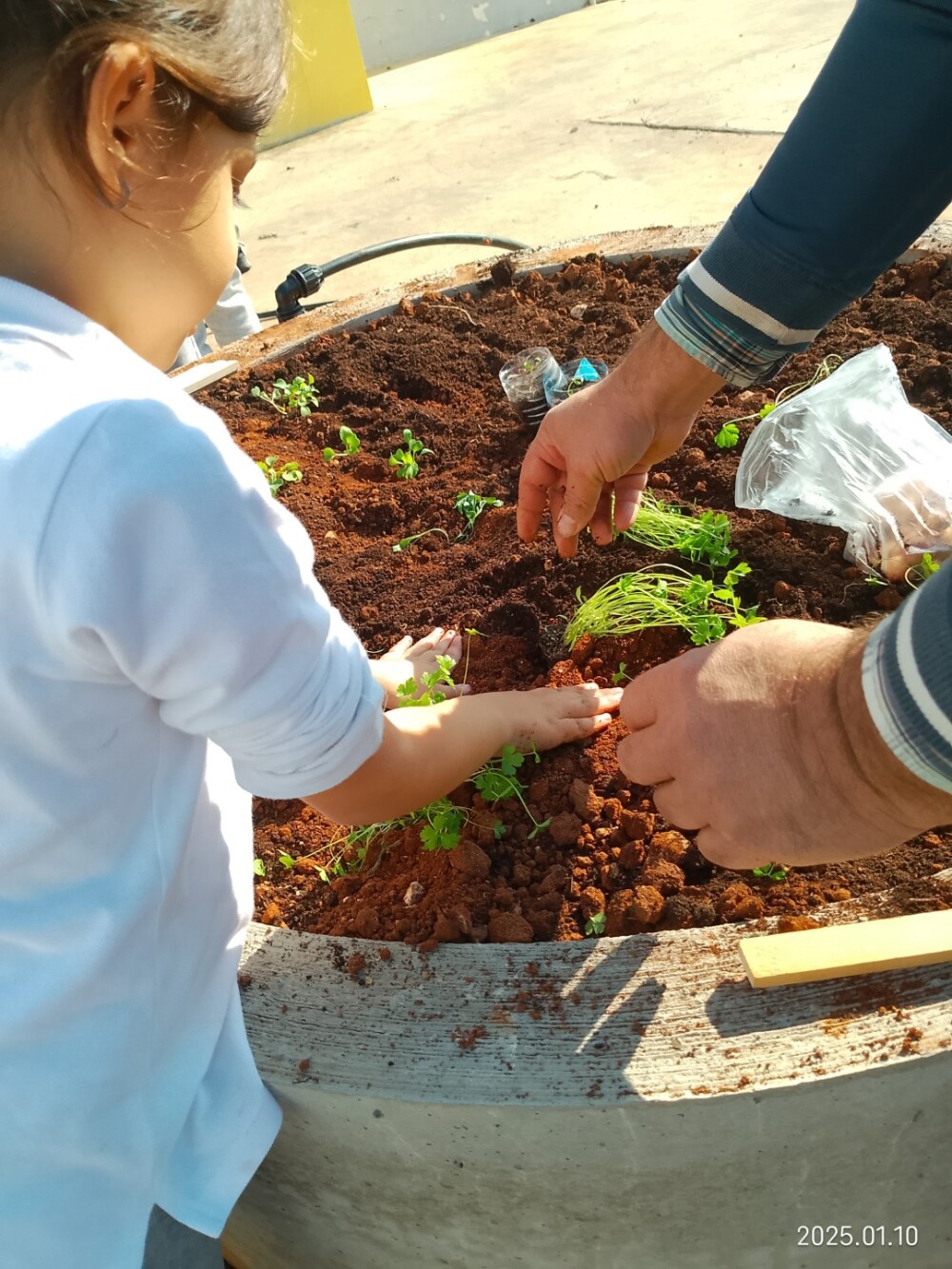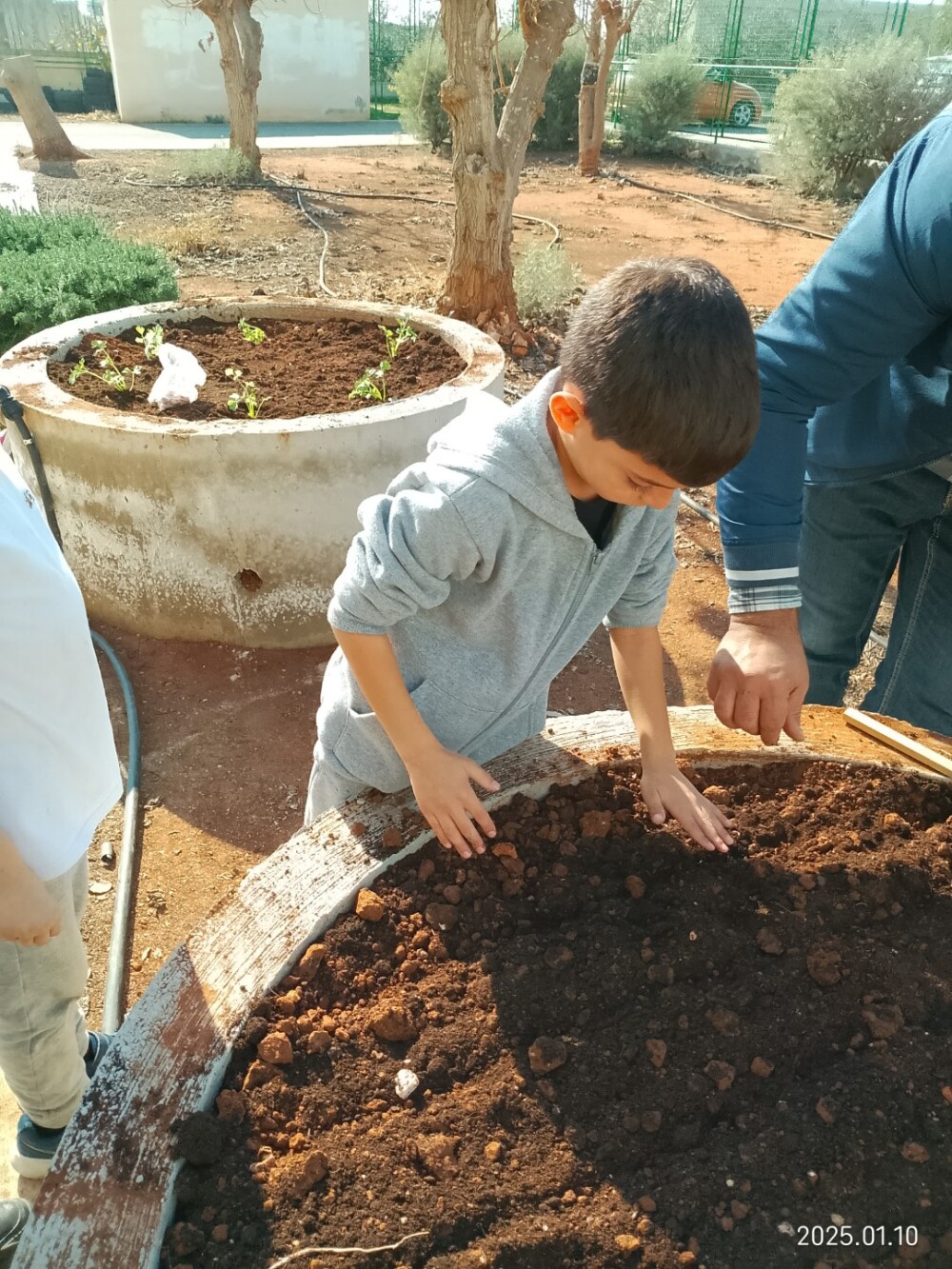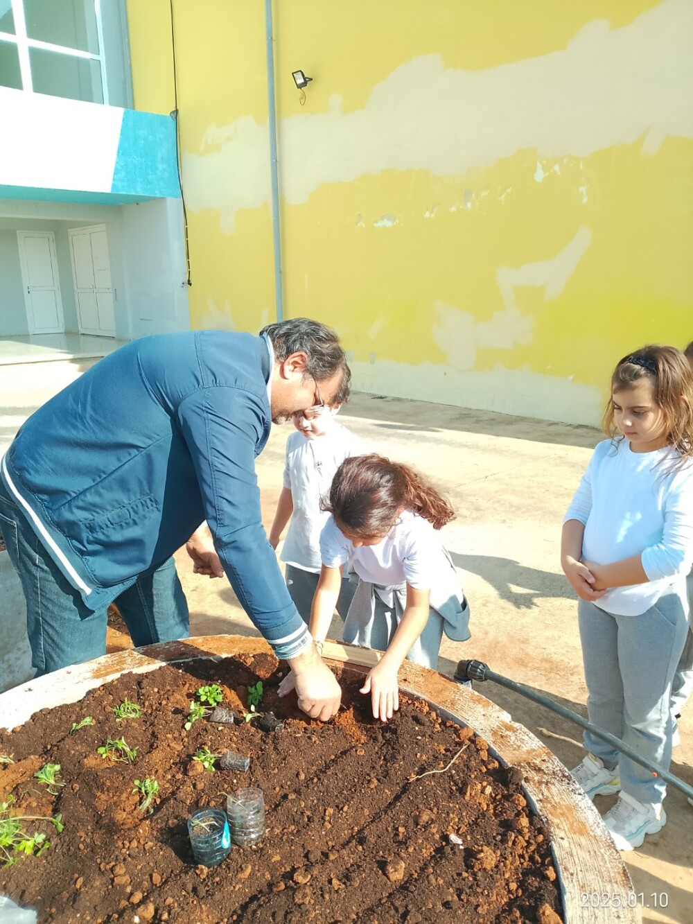 Κάθε τάξη υιοθέτησε ένα παρτέρι και ανέλαβε να φυτέψει σε αυτό λαχανικά. Με αυτό τον τρόπο φυτεύτηκαν για την χειμερινή περίοδο: 6 κραμπιά, 6 μπρόκολα, 6 κουνουπίδια, 6 κουλούμπρες, 6 λάχανα, 6 σέλινα, 12 μαρούλια, περίπου 100 κρεμμυδάκια κοκκάρι, μαϊντανός, κόλιανδρος, σπανάκι. Η φύτευση έγινε από τα παιδιά της τάξης και συνοδεύτηκε με εδαφοκάλυψη και πότισμα.