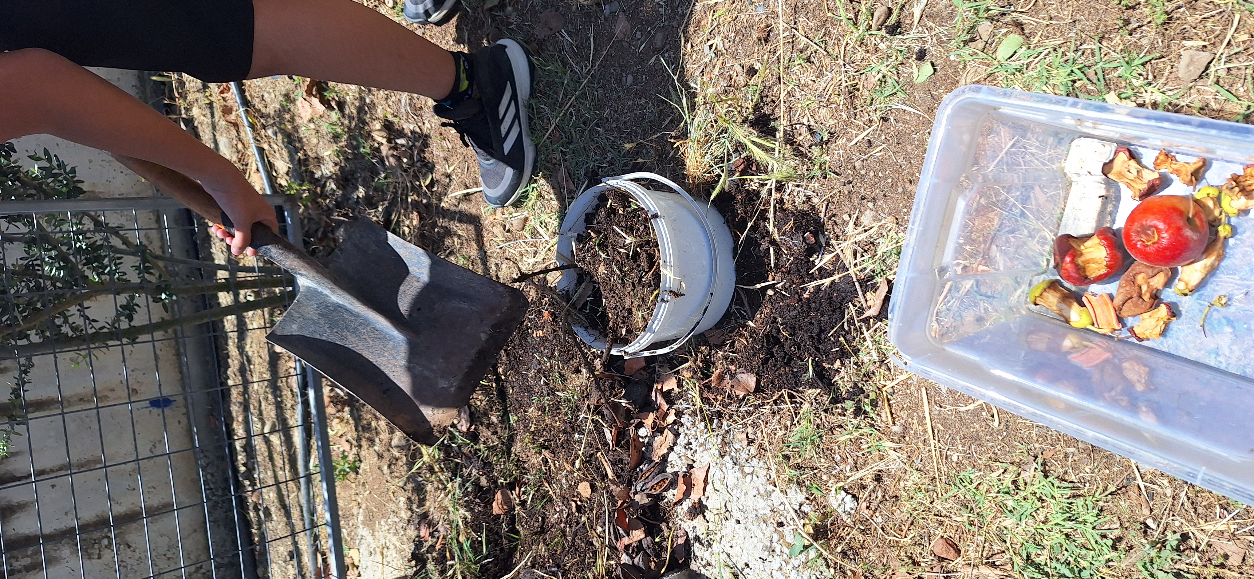 Τα παιδιά της Στ' τάξης, στα πλαίσια του μαθήματος της Περιβαλλοντικής Εκπαίδευσης, αφού μελέτησαν τη διαδικασία της κομποστοποίησης, ανέλαβαν την διαχείριση του κάδου κομποστοποίησης στον κήπο του σχολείου. Με την καθοδήγηση της δασκάλας της Περιβαλλοντικής Εκπαίδευσης ξεκίνησαν τη διαδικασία από τον Ιανουάριο. Τοποθέτησαν κάδους για τα βιοαποδομήσιμα απόβλητα στους χώρους του διαλείμματος, όπου τα παίδια πετούσαν τις φλούδες και τα απομεινάρια των φρούτων τους, καθώς και κάποια υλικά που έφερναν από το σπίτι (π.χ. τσόφλια αυγών, σακουλάκια τσαγιού κλπ). Κάθε εβδομάδα, τα παιδιά της Στ' τάξης πρόσθεταν στον κάδο κομποστοποίησης τα απαραίτητα υλικά (χλωρά και ξερά) και τα ανάδευαν με την τσουγκράνα.