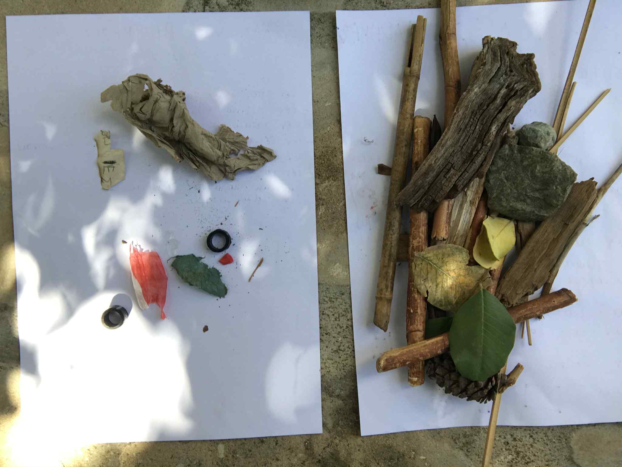Στη συνέχεια τα παιδιά καταγράφουν σε χαρτί ατομικά φυσικά και ανθρωπογενή αντικείμενα.
