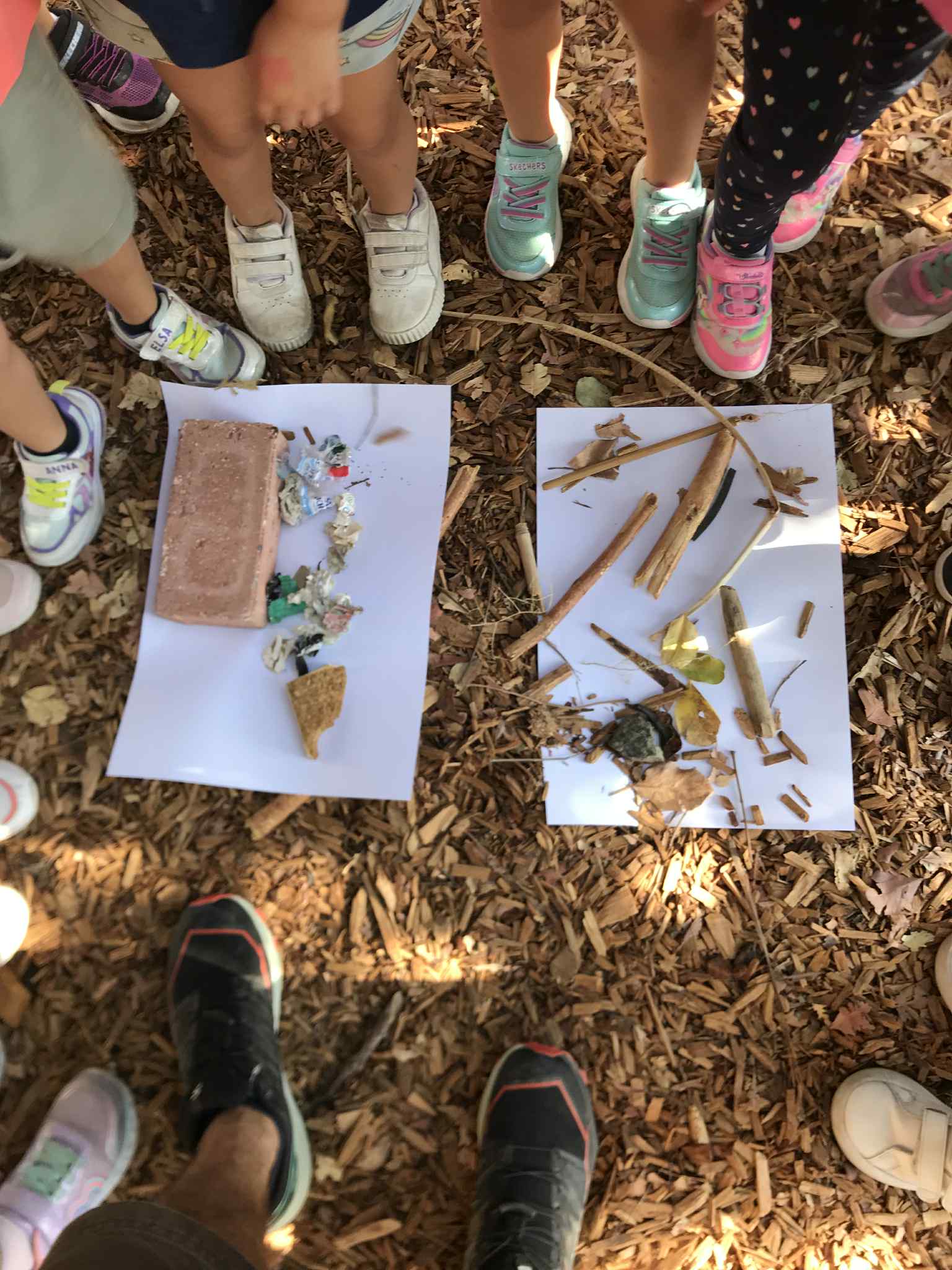 Τα παιδιά περπατούν στην τάξη φύσης. Το κάθε παιδί φέρνει ένα αντικείμενο στην ολομέλεια. Στη συνέχεια το ταξινομούμε σε φυσικό ή ανθρωπογενές.