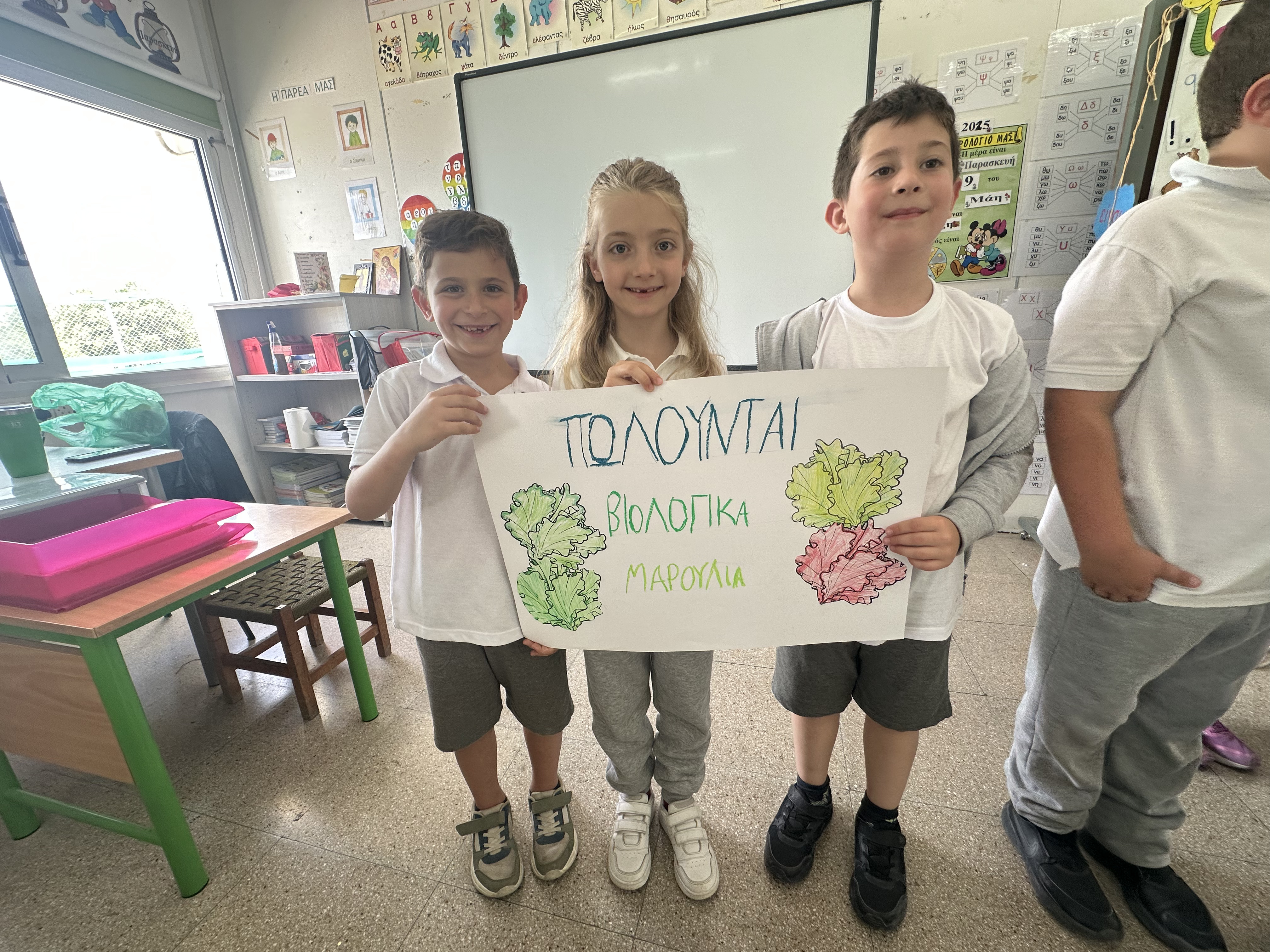 Τα παιδιά της Α΄2 τάξης, αφού μίλησαν για τα πλεονεκτήματα των βιολογικών προΪόντων, δημιούργησαν αφίσες για το σχολικό παζαράκι μαρουλιών!