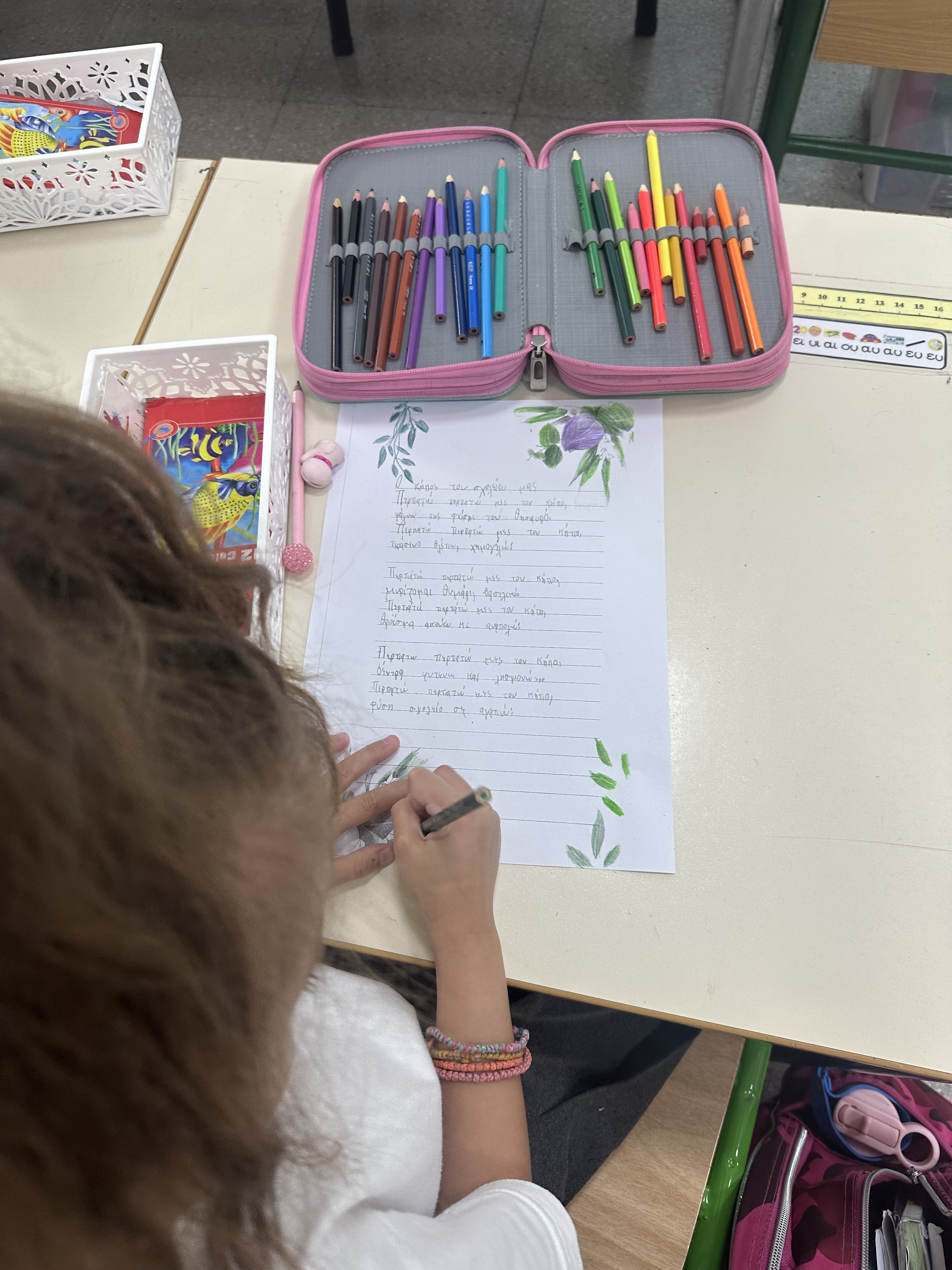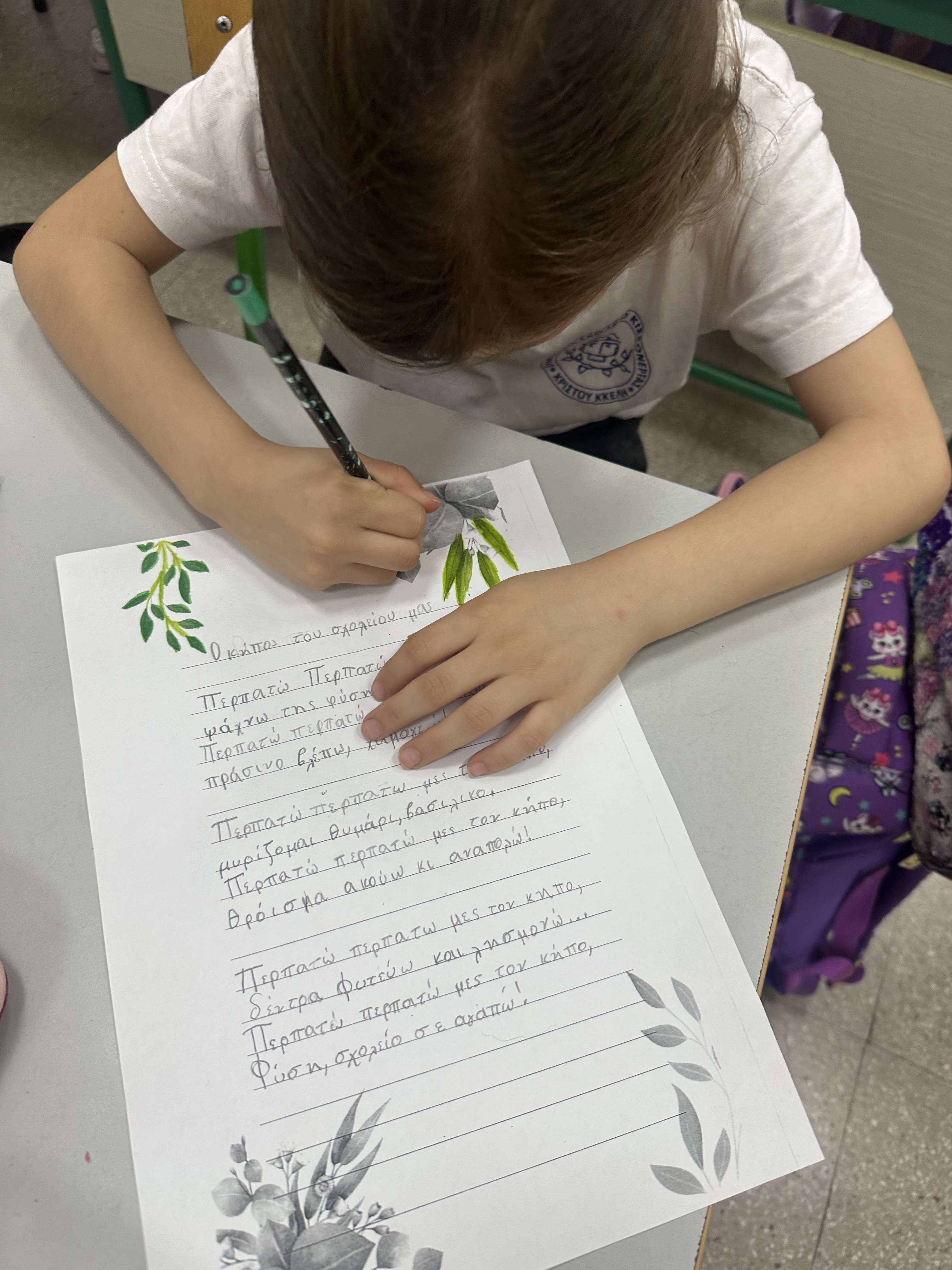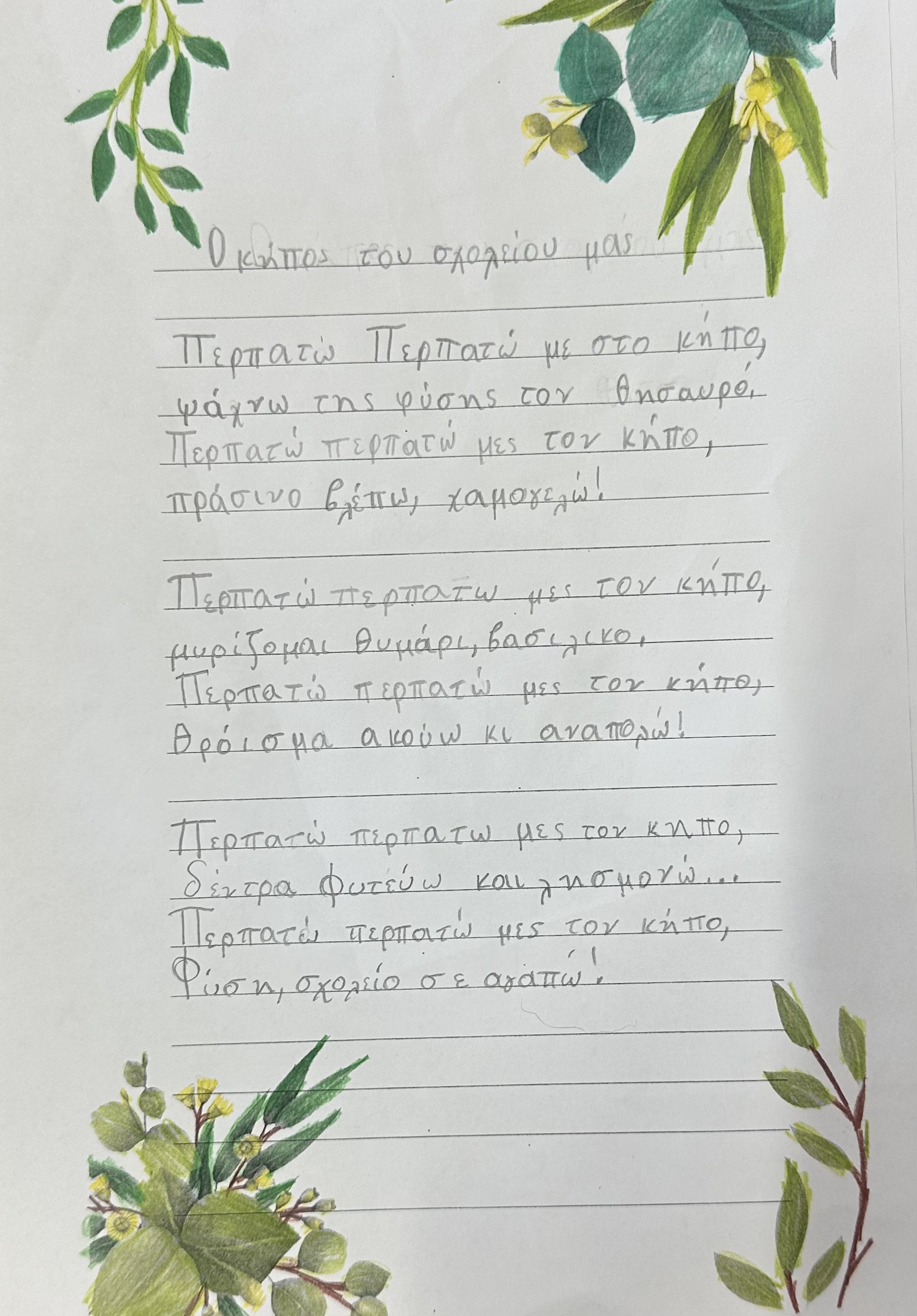 - Συγγραφή τραγουδιού για τον σχολικό κήπο