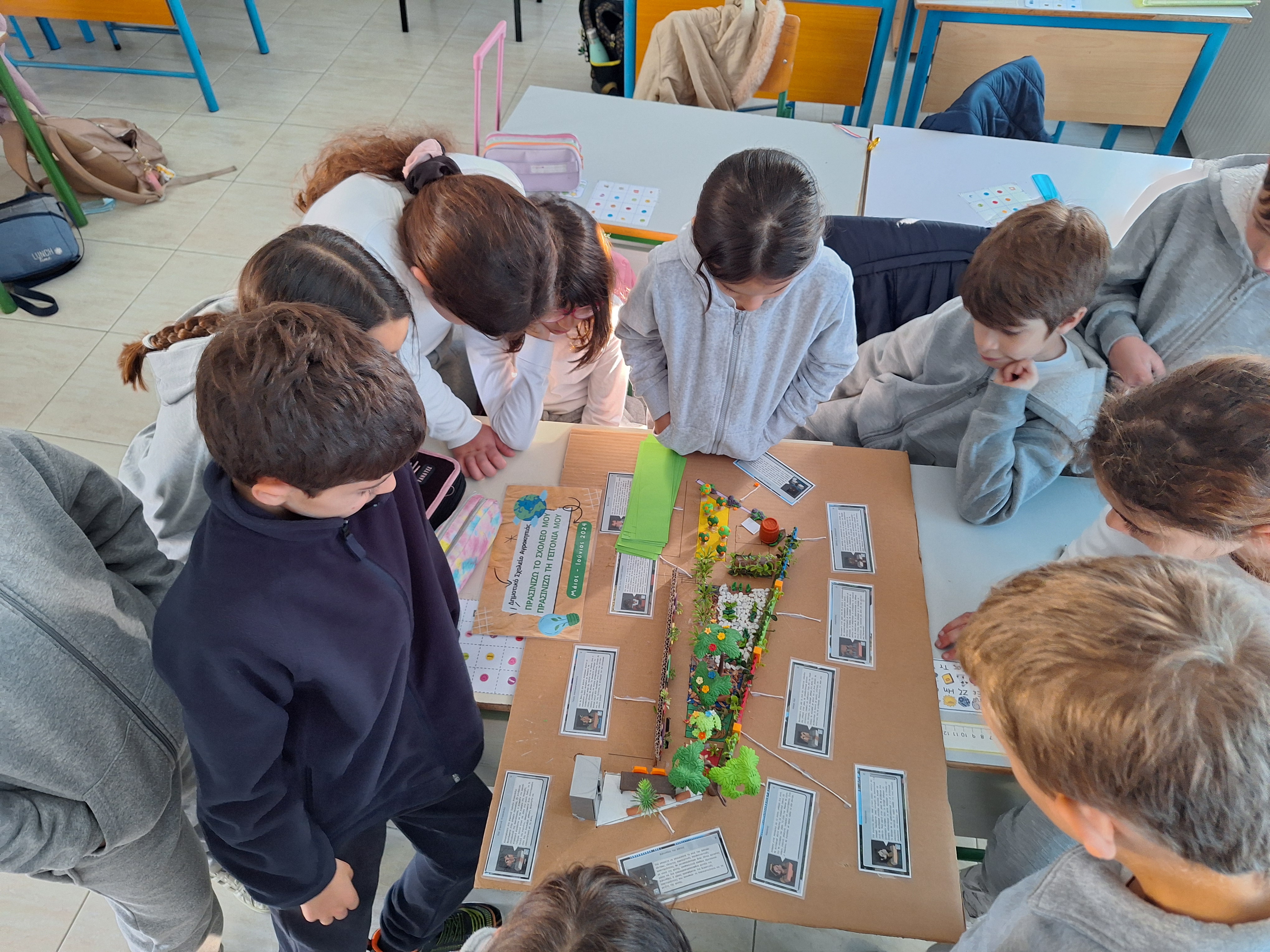 Η δράση ξεκίνησε με τη μελέτη της μακέτας του νέου πράσινου χώρου. Μέσα από τη μακέτα, τα παιδιά είχαν την ευκαιρία να κατανοήσουν καλύτερα τη διάταξη και τη λειτουργία των θεματικών χώρων που πρόκειται να δημιουργηθούν.