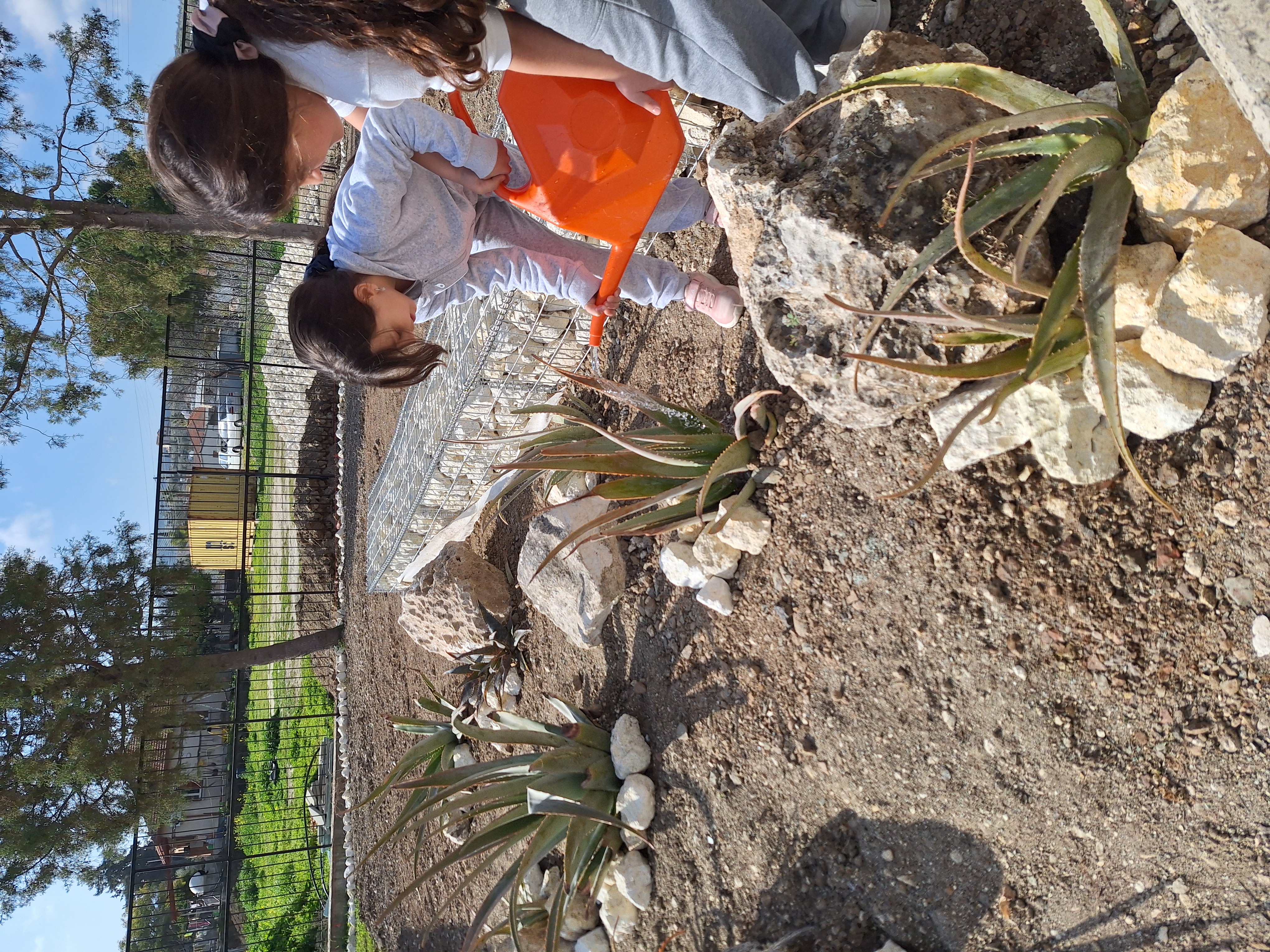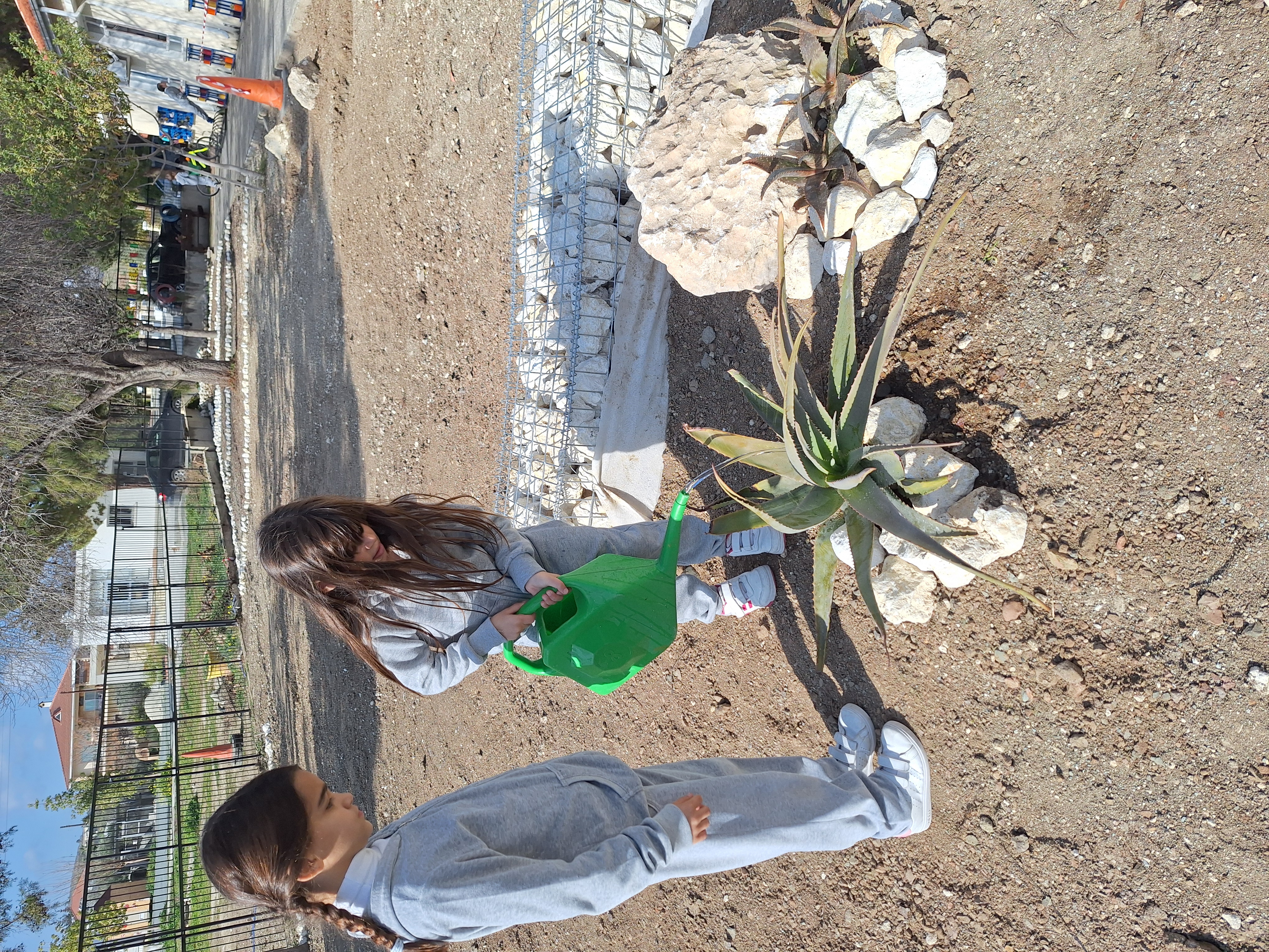Τα παιδιά φρόντισαν τα παχύφυτα που είχαν φυτευτεί πριν από μερικές εβδομάδες, ποτίζοντάς τα με προσοχή και αγάπη.
