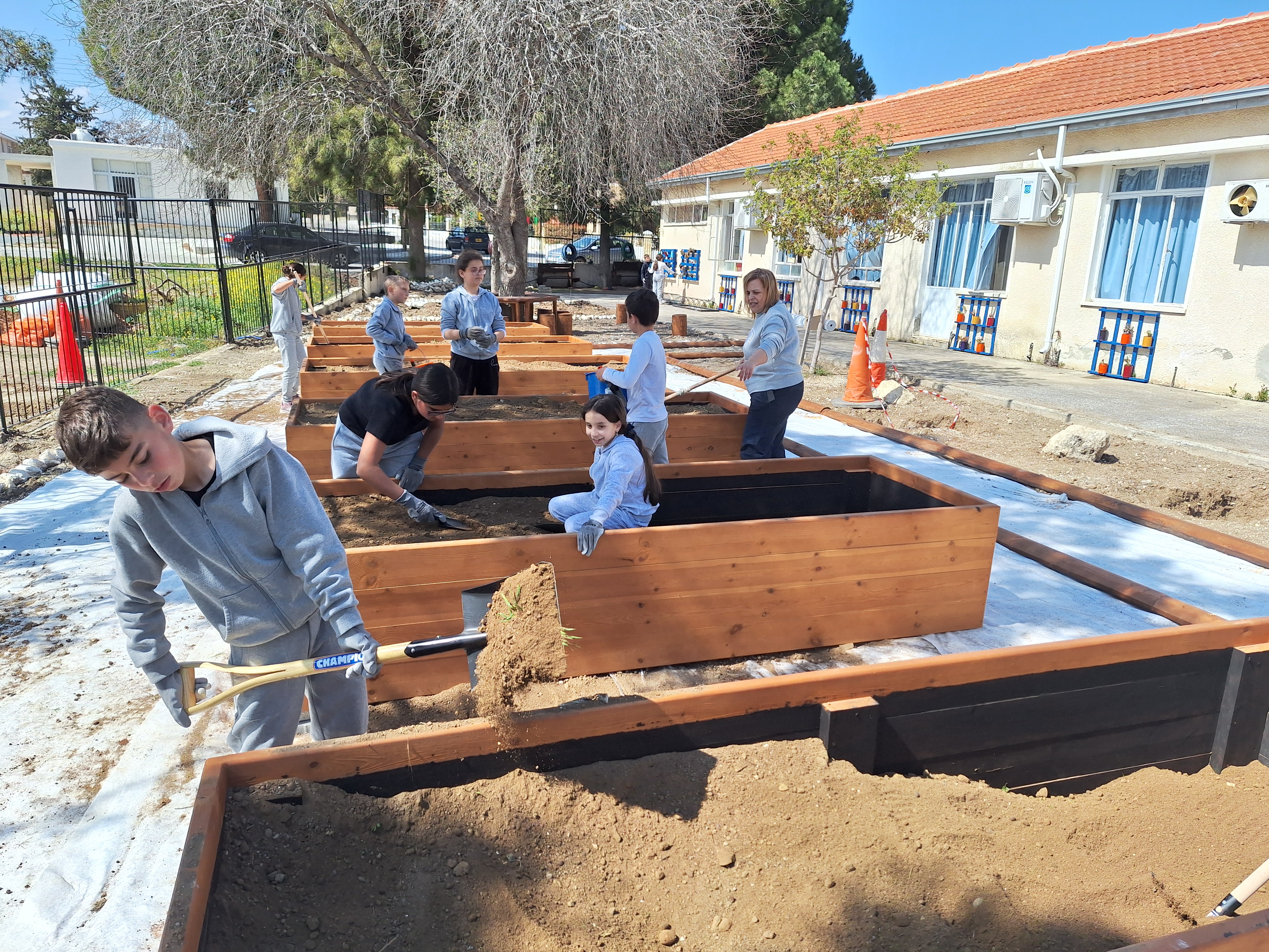 Με ενθουσιασμό και ομαδικό πνεύμα, οι μαθητές όλων των τάξεων συμμετείχαν ενεργά στις εργασίες προετοιμασίας του σχολικού μας κήπου.