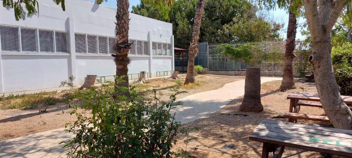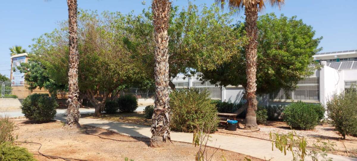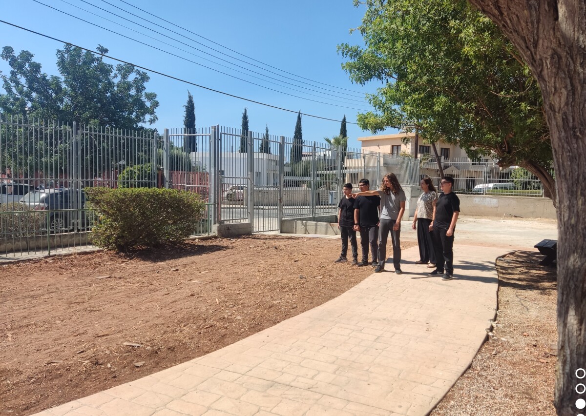 To Γυμνάσιο Πολεμιδιών βρίσκεται στα Πολεμίδια στο δυτικό μέρος της πόλης της Λεμεσού. Η ανάγκη για χώρους σκίασης και πρασίνου προέκυψε όταν για λόγους ασφάλειας αφαιρέθηκαν παλιά δέντρα που προκαλούσαν ζημιές με τις ρίζες τους και υπήρχε θέμα ασφάλειας των μαθητών. H αφαίρεση των δέντρων στέρησε από τα παιδιά σημαντικό κομμάτι του σκιασμένου χώρου και έτσι προέκυψε η ανάγκη για επαναδημιουργία ενός ωραίου χώρου πρασίνου.