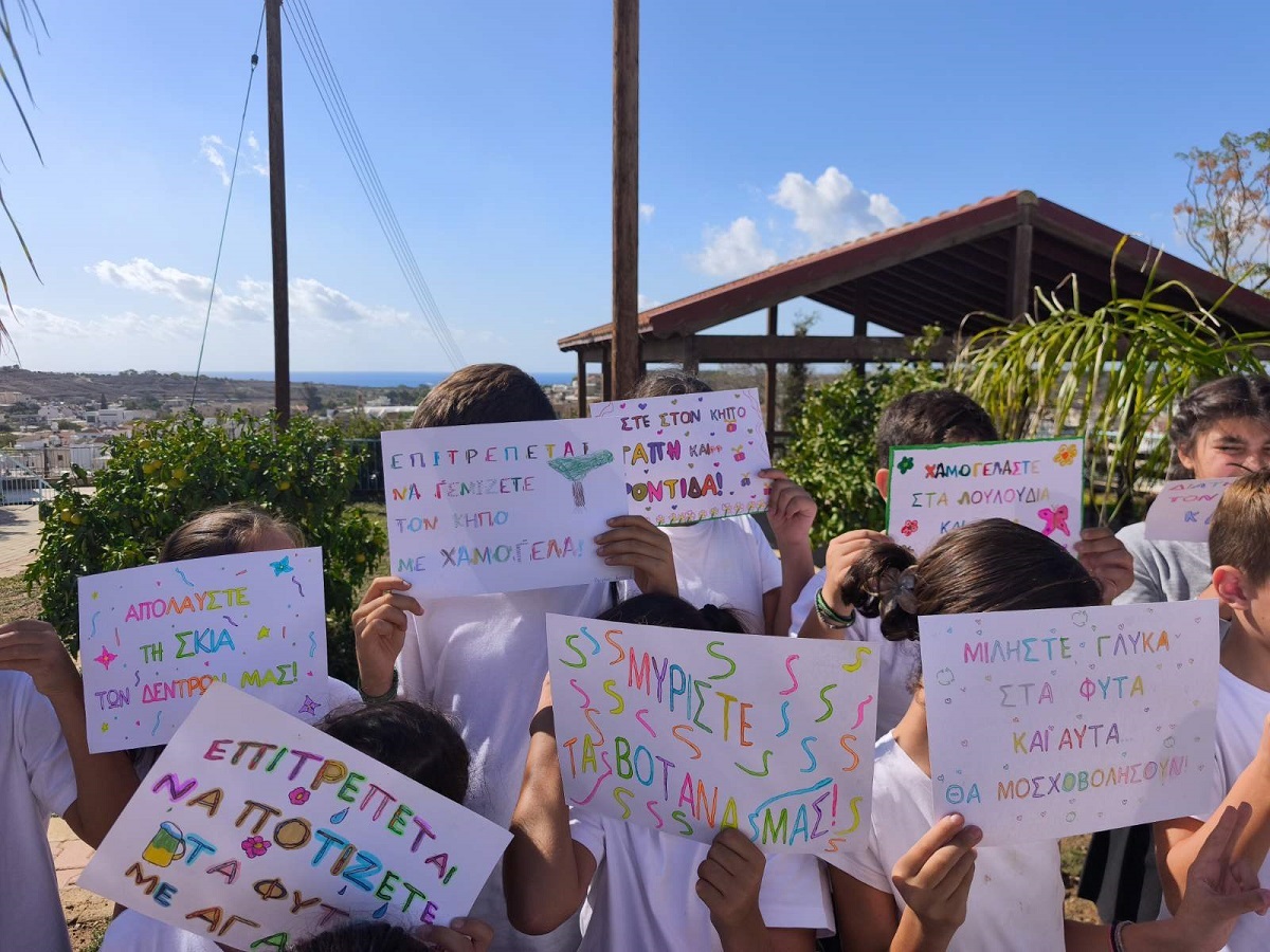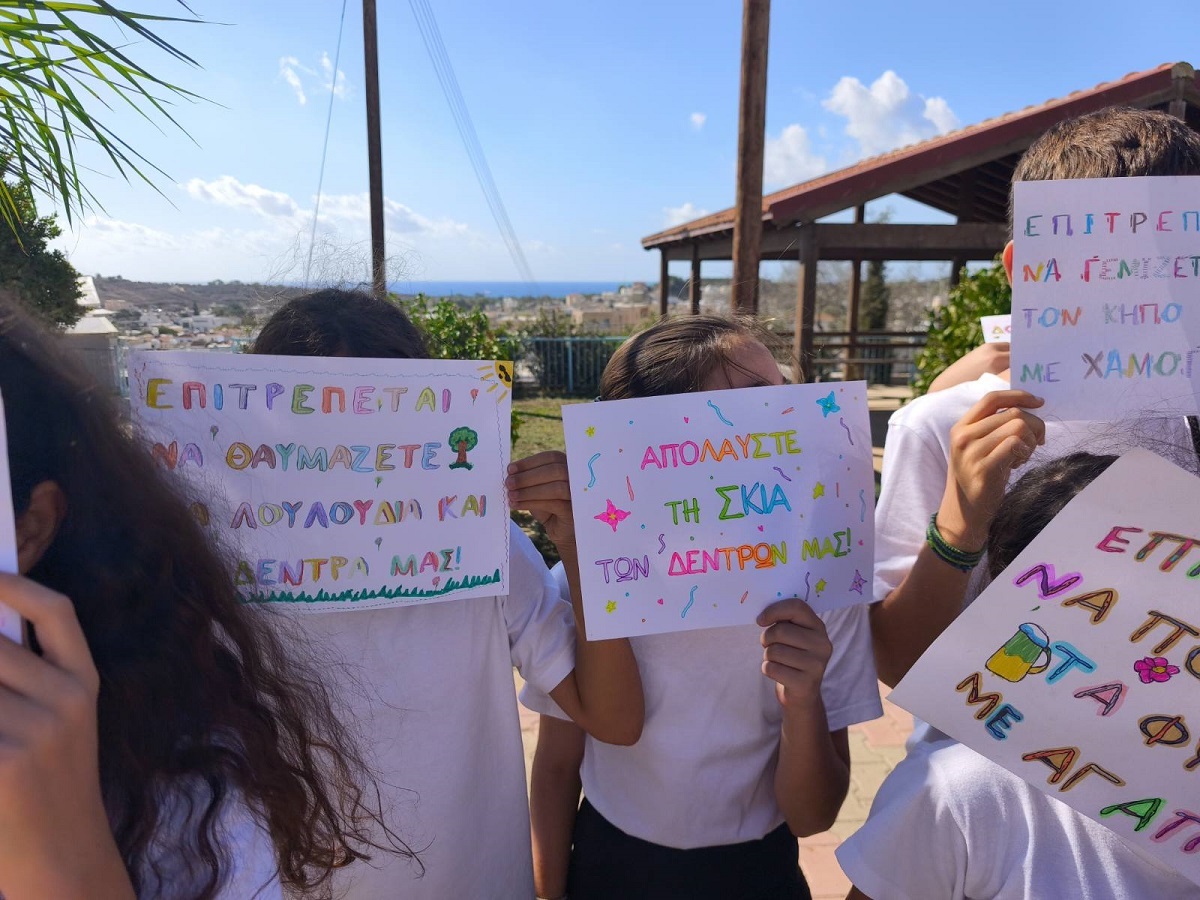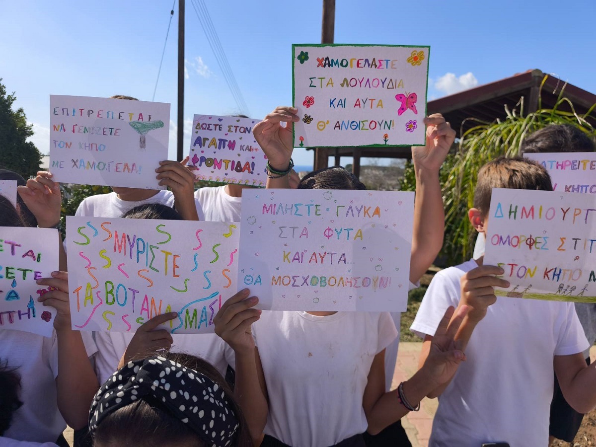 Οι μαθητές/μαθήτριες της Ε΄ τάξης, στο πλαίσιο της ενότητας των Ελληνικών "Ο φίλος μας το περιβάλλον", αξιοποίησαν τη διδασκαλία των καταλήξεων -ται και -τε, για να δημιουργήσουν δικά τους συνθήματα για τον σχολικό μας κήπο. Μέσα από τη δραστηριότητα αυτή, τα παιδιά καλλιέργησαν τη γλωσσική τους έκφραση, συνεργάστηκαν δημιουργικά και έστειλαν μηνύματα αγάπης και φροντίδας για το περιβάλλον, προτρέποντας όλους/όλες να συμμετάσχουν στη βελτίωση του κήπου μας.