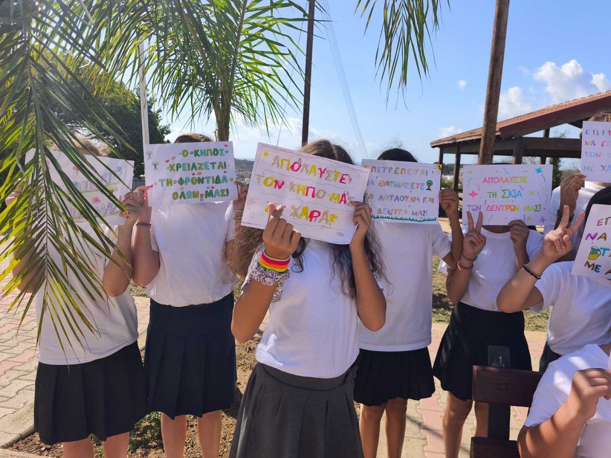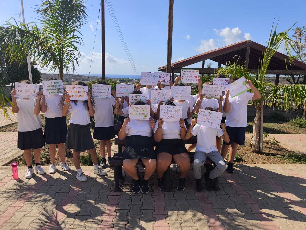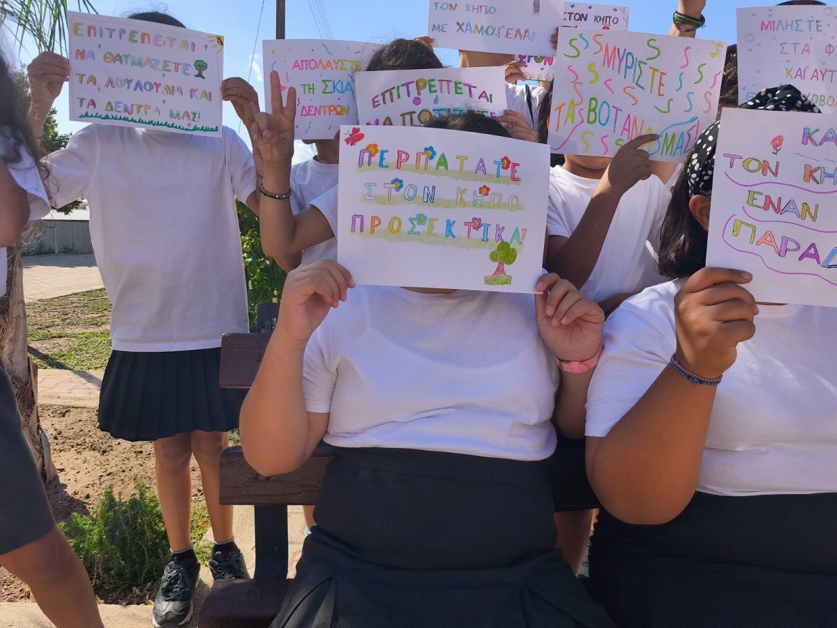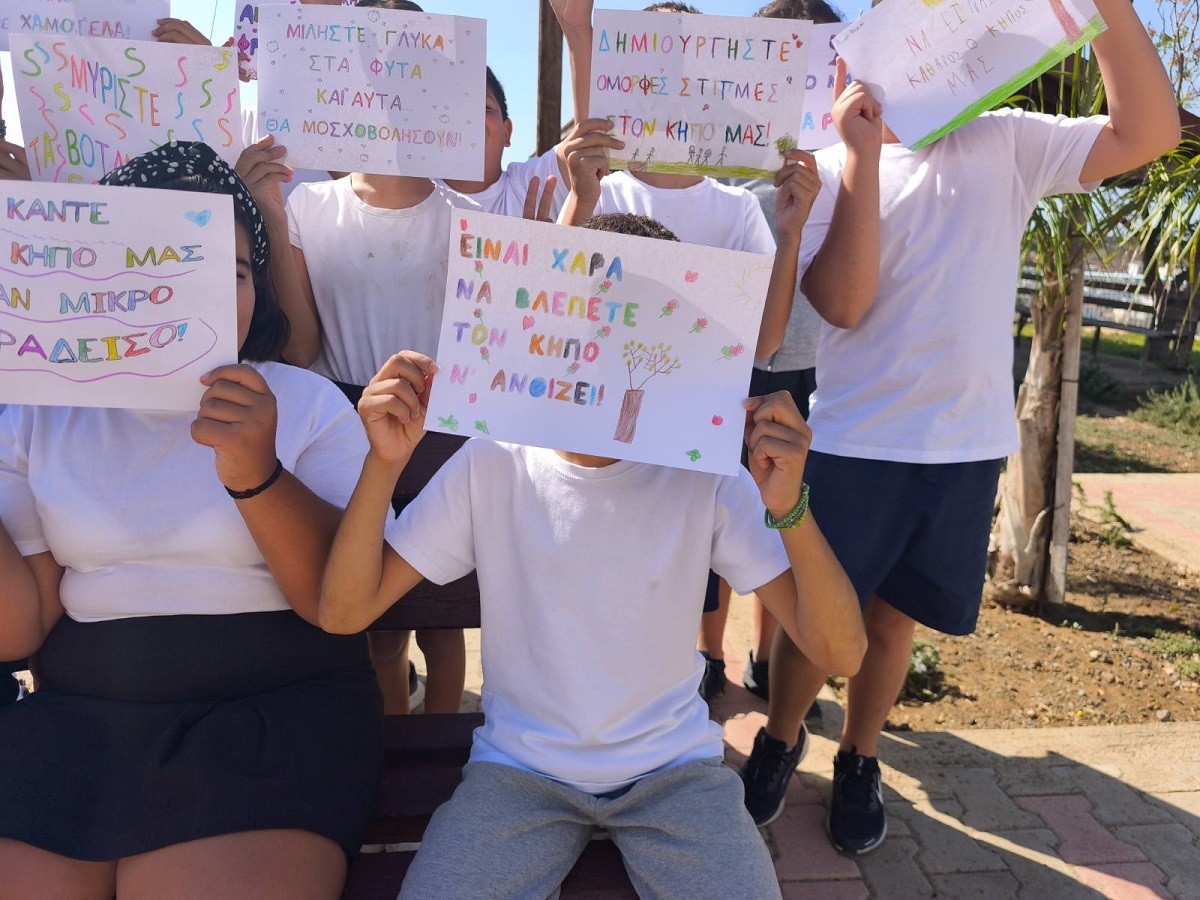 Οι μαθητές/μαθήτριες της Ε΄ τάξης, στο πλαίσιο της ενότητας των Ελληνικών "Ο φίλος μας το περιβάλλον", αξιοποίησαν τη διδασκαλία των καταλήξεων -ται και -τε, για να δημιουργήσουν δικά τους συνθήματα για τον σχολικό μας κήπο. Μέσα από τη δραστηριότητα αυτή, τα παιδιά καλλιέργησαν τη γλωσσική τους έκφραση, συνεργάστηκαν δημιουργικά και έστειλαν μηνύματα αγάπης και φροντίδας για το περιβάλλον, προτρέποντας όλους/όλες να συμμετάσχουν στη βελτίωση του κήπου μας.