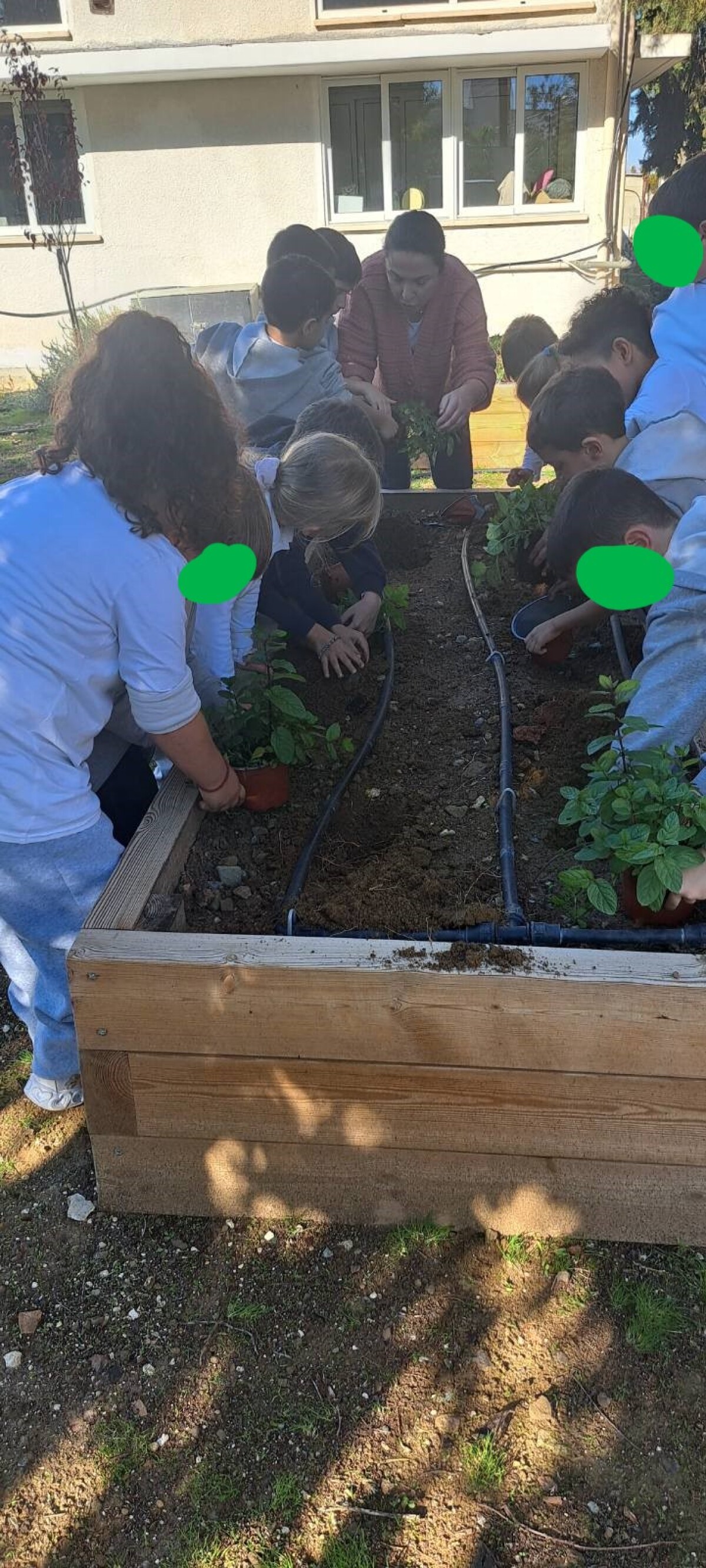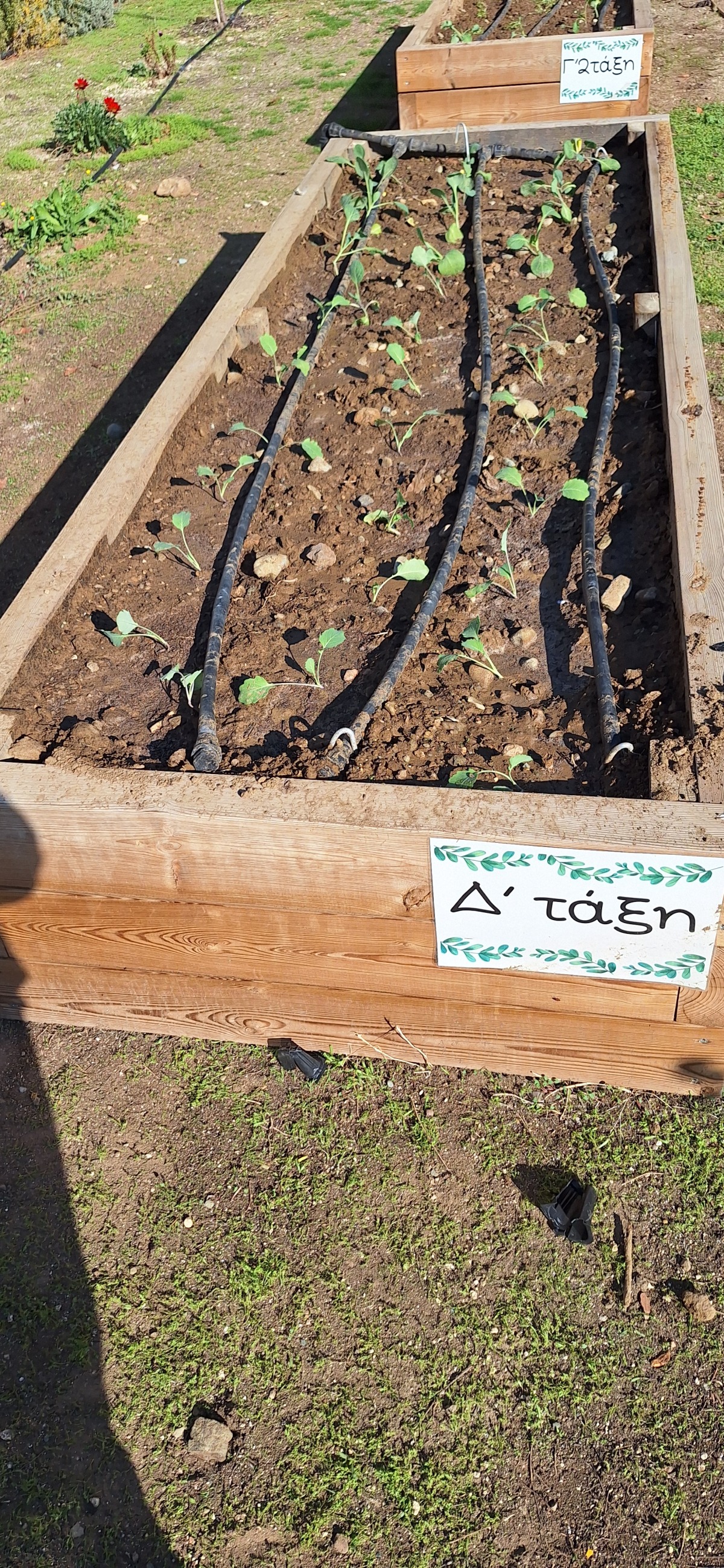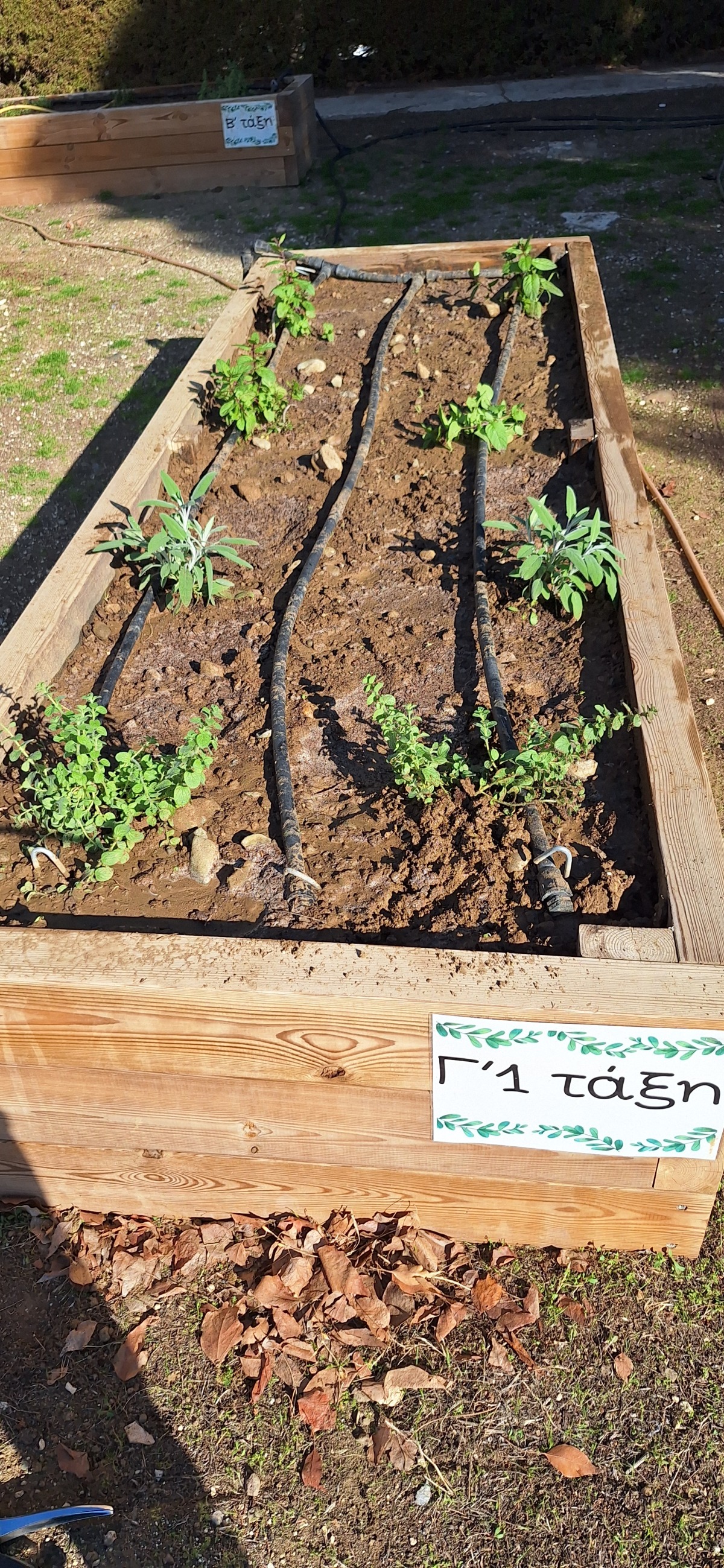 Τα παιδιά, κάθε τάξης του σχολείου, φύτεψαν στο παρτέρι τους διάφορα λαχανικά ή βότανα. Κάθε τάξη ανέλαβε τη φύτευση σε ένα παρτέρι. Συνολικά φυτεύτηκαν 7 παρτέρια. Η δράση έγινε υπό την καθοδήγηση του/της υπεύθυνου/υπεύθυνης εκπαιδευτικού της κάθε τάξης και της συντονίστριας του προγράμματος. Σε κάθε παρτέρι φυτεύτηκαν ένα ή δυο είδη λαχανικών ή βοτάνων. Πριν την παραγγελία των φυτών που θα φυτεύονταν στα παρτέρια, έγινε λίστα με τα λαχανικά ή βότανα που επιθυμούσε η κάθε τάξη. Στο παρτέρι της Α' και Β' τάξης φυτεύτηκαν μόνο βότανα, λόγω του ότι δεν υπάρχει αρκετή ηλιοφάνεια σε εκείνο το σημείο και πέρσι παρατηρήθηκε ότι στα συγκεκριμένα παρτέρια δεν αναπτύχθηκαν ικανοποιητικά τα λαχανικά. Κάθε τάξη θα φροντίζει το παρτέρι της καθ' όλη τη διάρκεια του χρόνου.