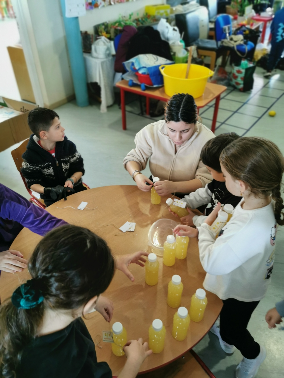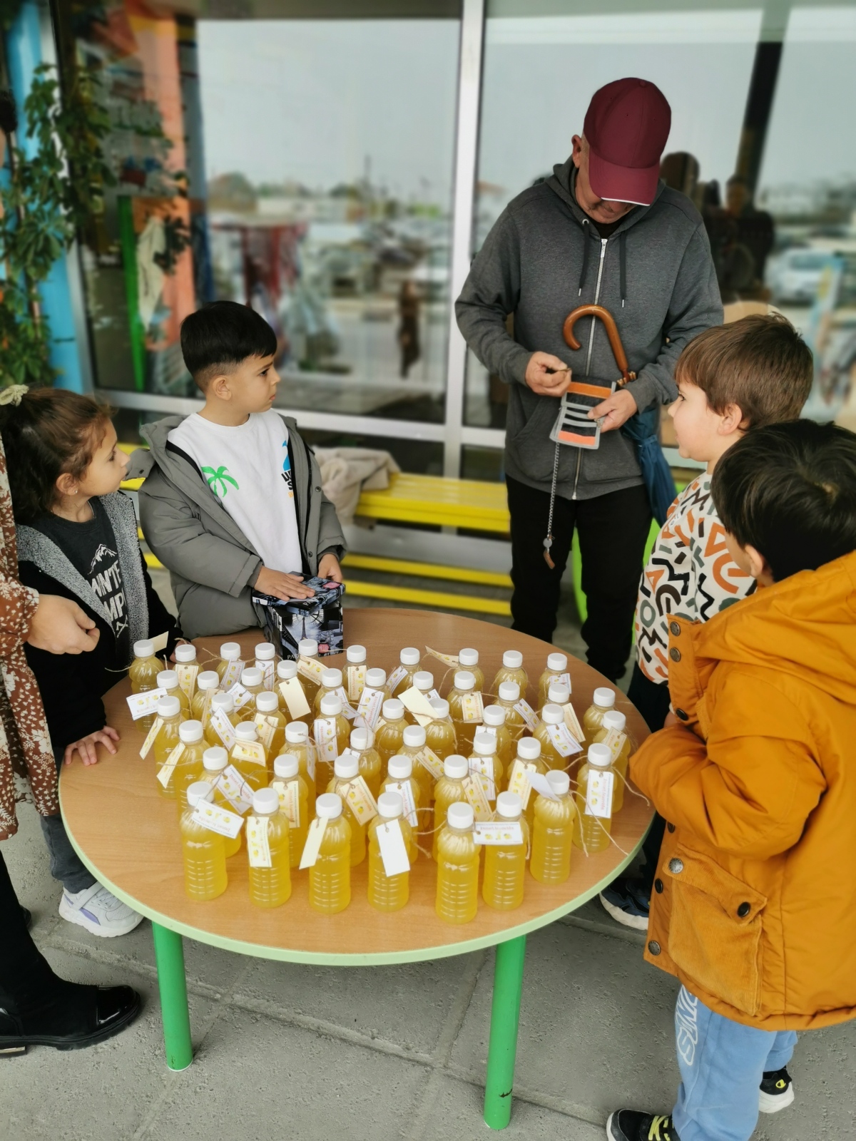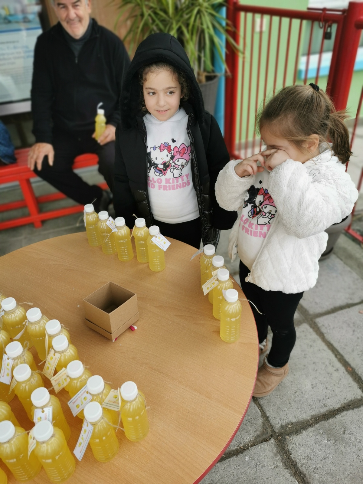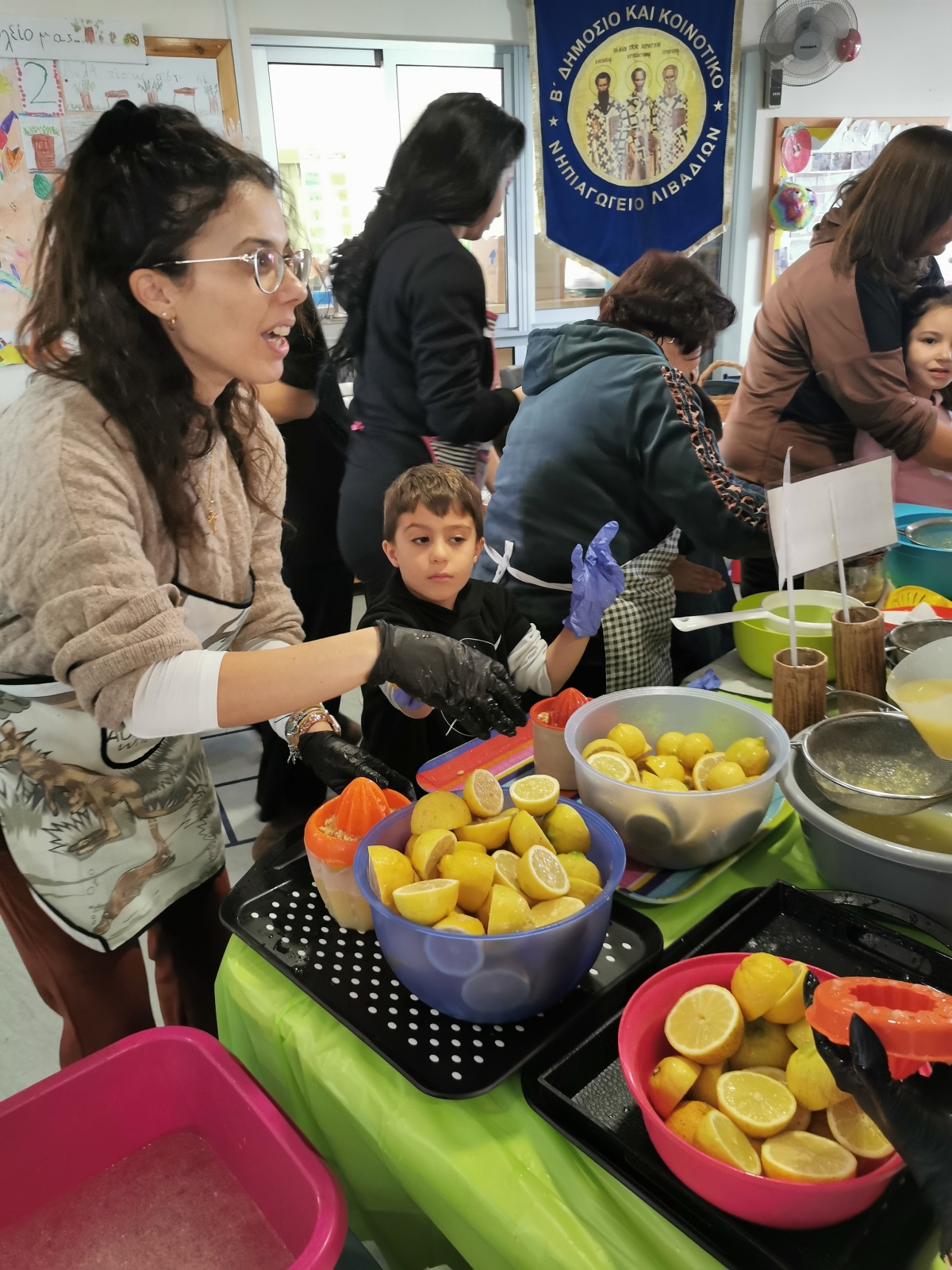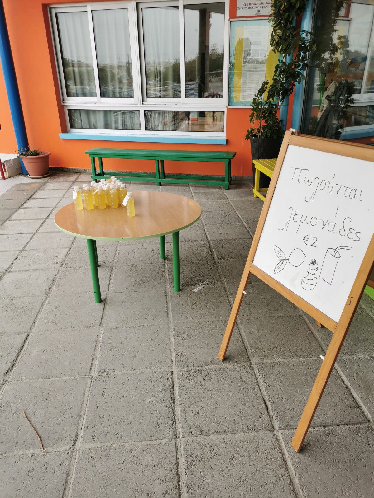 Οι μαθητές/μαθήτριες της περσινής χρονιάς, στα πλαίσια του προγράμματος "περιβαλλοντική και αειφόρος εκπαίδευση" και συγκεκριμένα στη μελέτη εις βάθος με τίτλο "Ένας κήπος καταφύγιο πουλιών", ως καταληκτική δραστηριότητα είχαν φυτέψει 6 καρποφόρα δέντρα δημιουργώντας το περιβόλι του σχολείου. Οι μαθητές/μαθήτριες της φετινής σχολικής χρονιάς παρατηρώντας τους καρπούς της λεμονιάς, θέλησαν να φτιάξουν σπιτική λεμονάδα. Λόγω του μικρού αριθμού λεμονιών που είχαν συλλέξει από το δέντρο, εισηγήθηκαν να φέρουν επιπλέον λεμόνια από το λεμονόδεντρο του σπιτιού τους, έτσι ώστε η ποσότητα της λεμονάδας να είναι μεγαλύτερη. Μέσω της συζήτησης και έχοντας πάντα ως στόχο να πρασινίσουμε την πίσω αυλή του σχολείου μας, τα παιδιά εισηγήθηκαν οι σπιτικές λεμονάδες να πωληθούν για να αγοραστούν παγκάκια πικ νικ για να μπορούν να απολαμβάνουν το πρόγευμά τους στην πίσω αυλή. Η ιδέα των παιδιών, έγινε δράση και με τη βοήθεια γιαγιάδων, παππούδων, μητέρων και μπαμπάδων, σημείωσε μεγάλη επιτυχία.