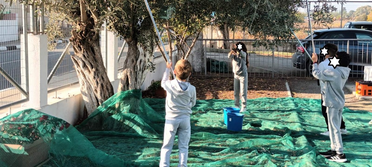Τα παιδιά την Παρασκευή, 28 Νοεμβρίου 2025, μάζεψαν τις ελιές από τα δέντρα που υπάρχουν στην αυλή του σχολείου. Χρησιμοποιήσαν πανιά και χτενιές και μάζεψαν τις ελιές. Ο Σύνδεσμος Γονέων θα τις πάρει στο ελαιοτριβείο για να γίνει λάδι και τις πράσινες θα τις κάνει τσακιστές. Θα δώσει δώρο στα παιδιά λάδι ή ελιές τσακιστές ως ανταμοιβή για την εργασία τους.