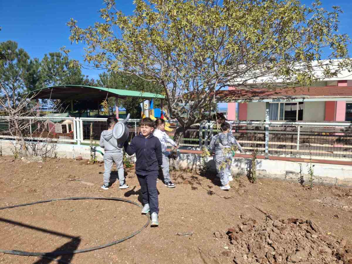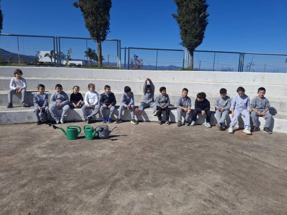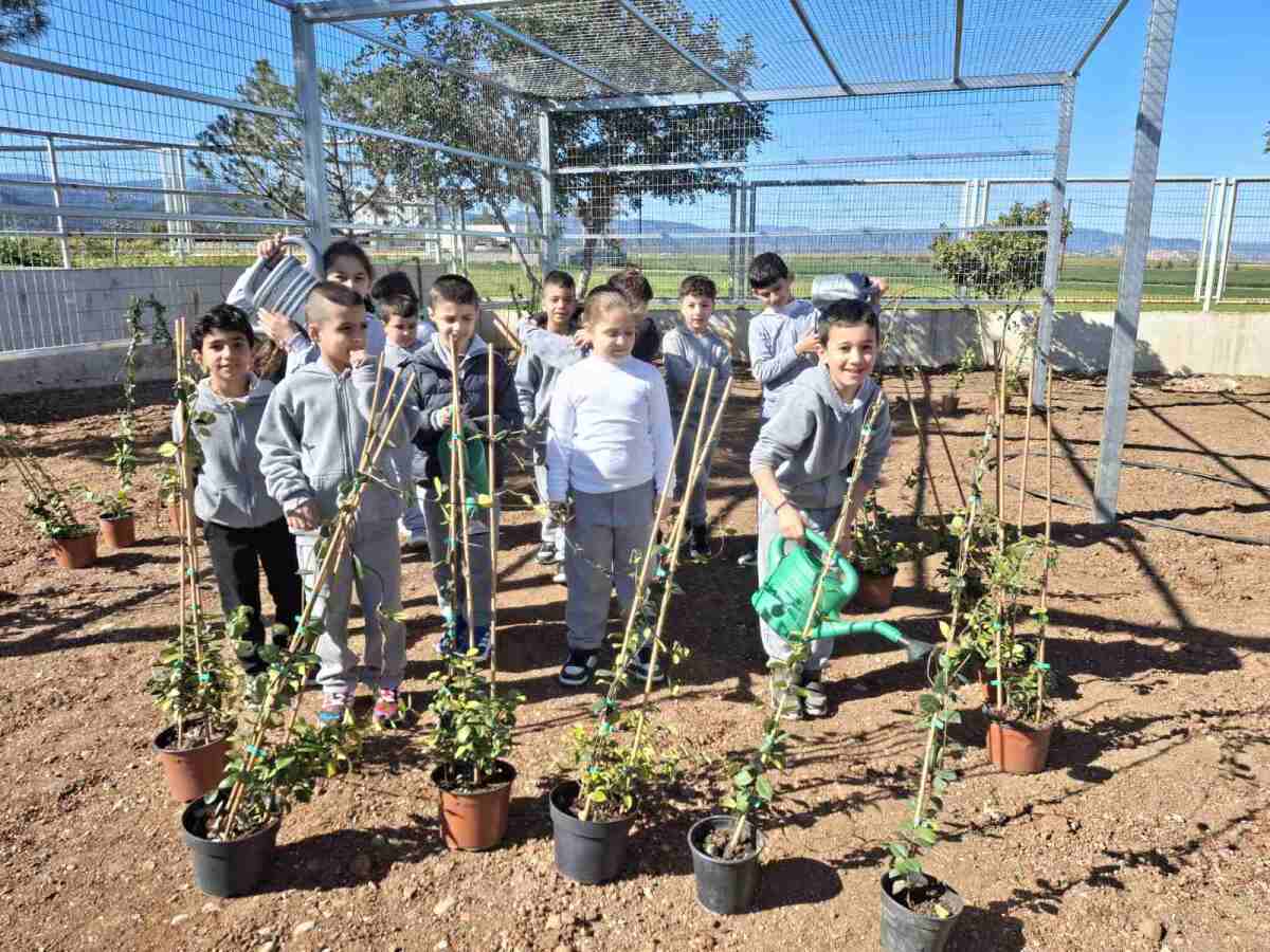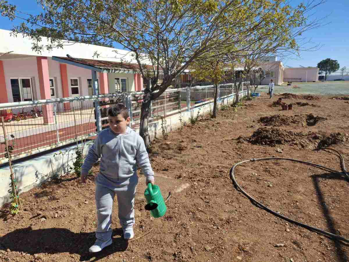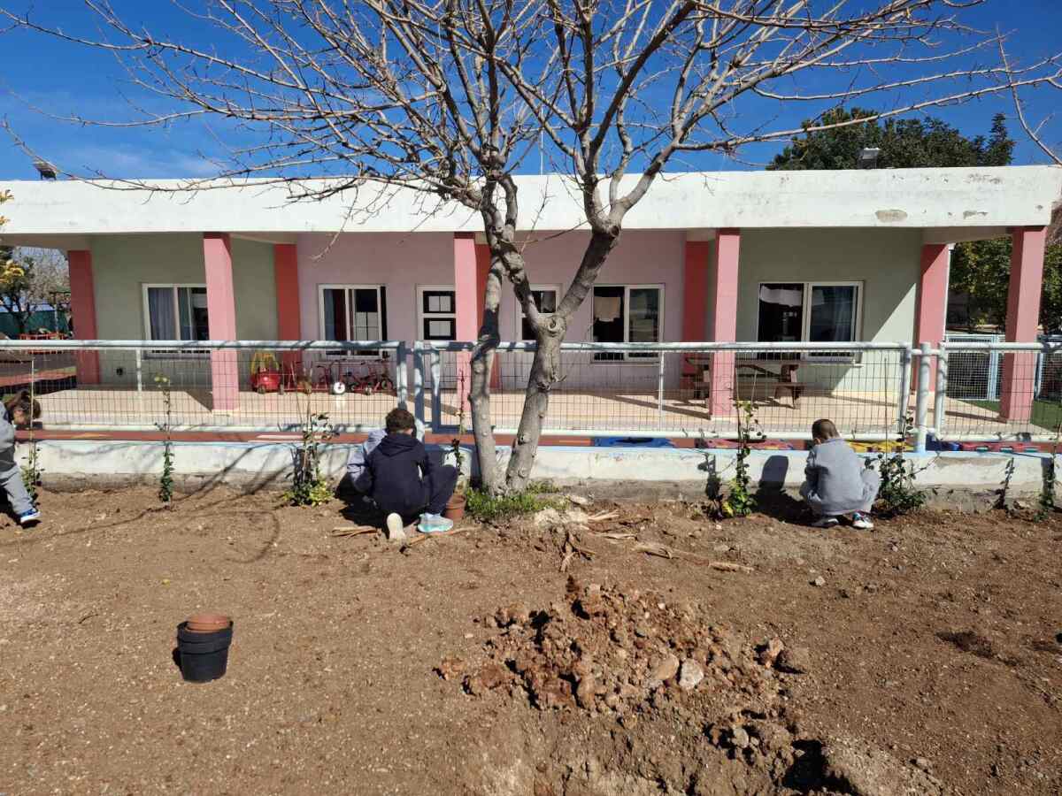 Ακολούθως, χρησιμοποιώντας παιδικά φτυαράκια, γέμισαν τους λάκκους με χώμα και ολοκλήρωσαν τη διαδικασία φύτευσης με νέο πότισμα των φυτών. Η δραστηριότητα αυτή αποτέλεσε μια βιωματική εμπειρία για τα παιδιά, ενισχύοντας τη συμμετοχή τους στη δημιουργία και φροντίδα του νέου χώρου πρασίνου του σχολείου.