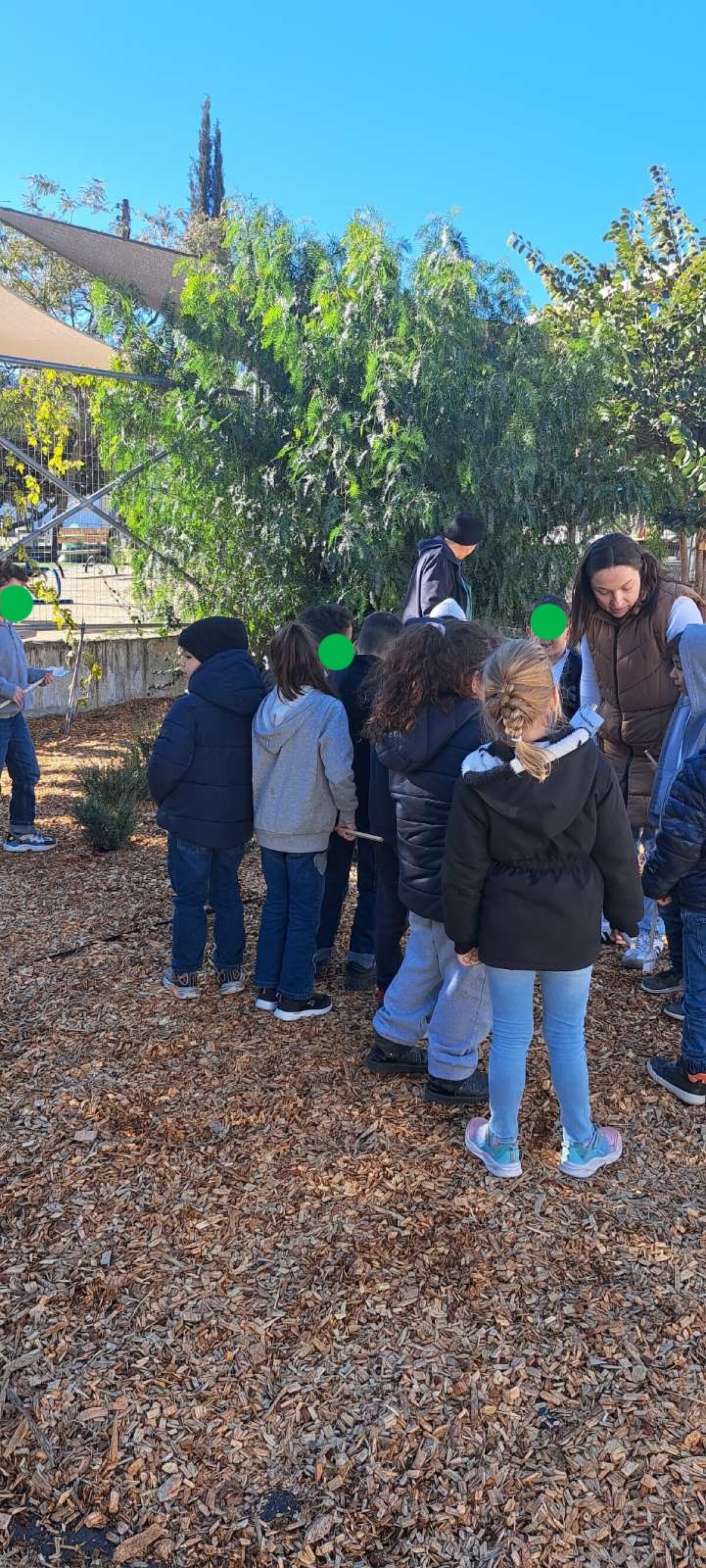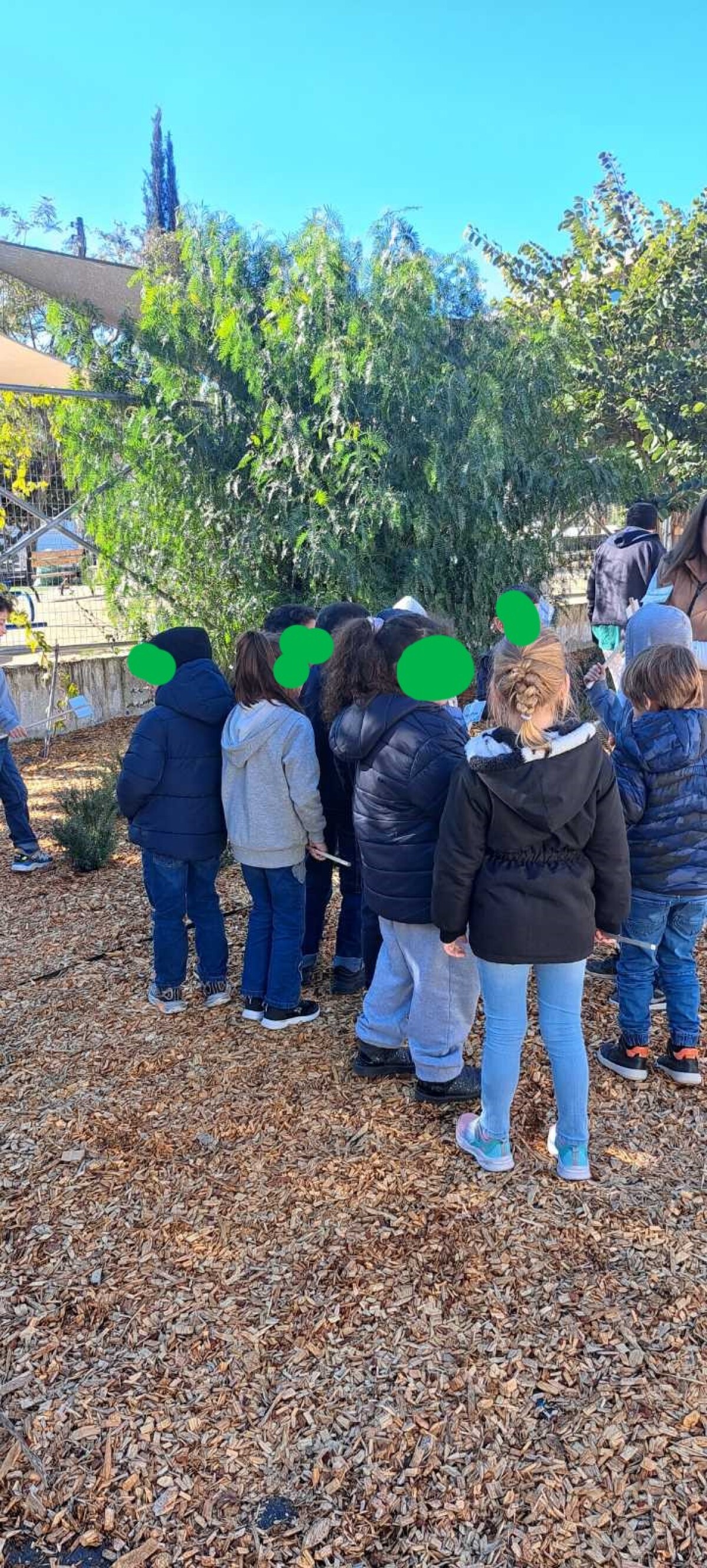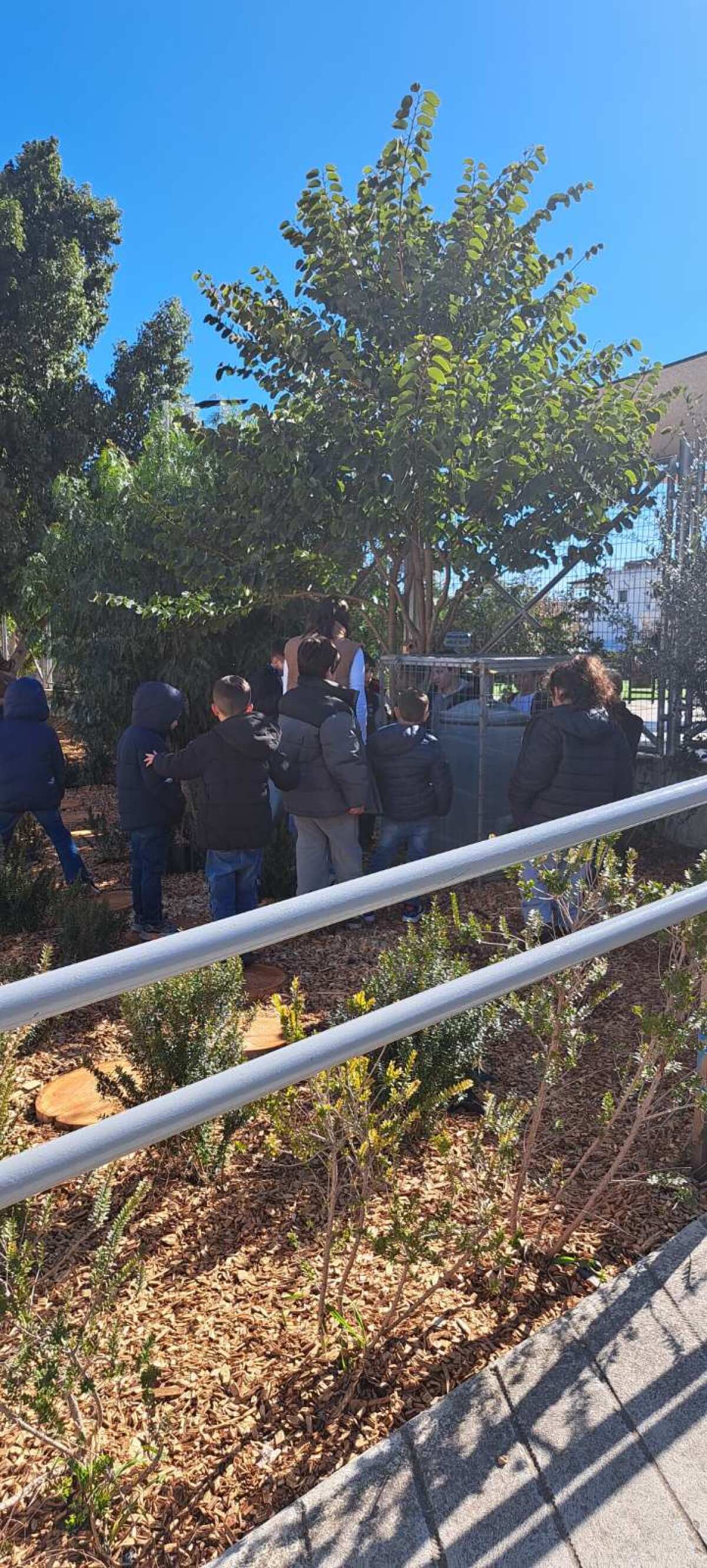 Κάθε παιδί πήρε μια πινακίδα με το όνομα ενός φυτού του κήπου. Ανάλογα με τις περιγραφές για τις ιδιότητες του κάθε φυτού, που έδινε η δασκάλα, τα παιδιά εντόπιζαν την αντίστοιχη πινακίδα που θα τοποθετούσαν σε κάθε φυτό.