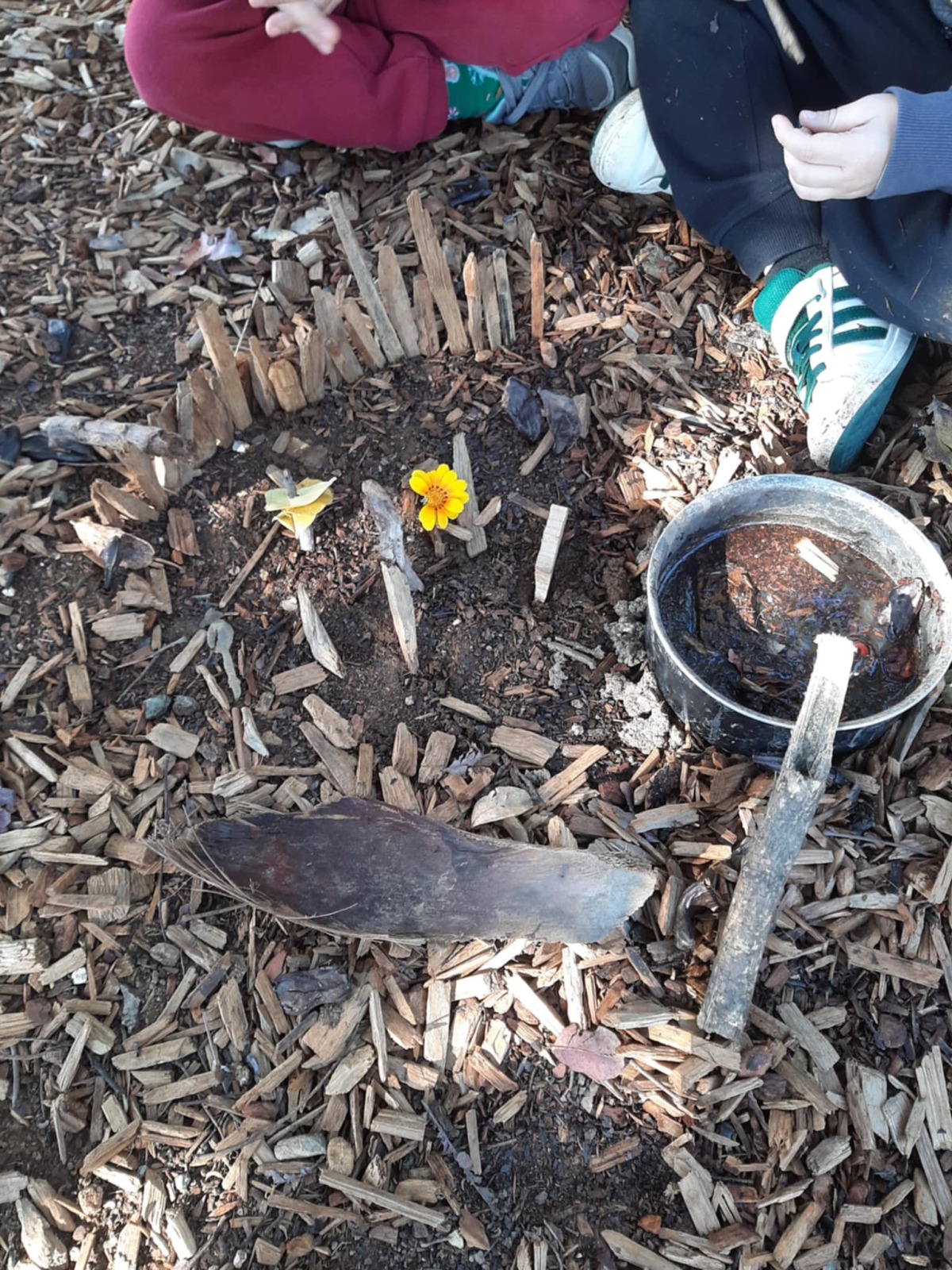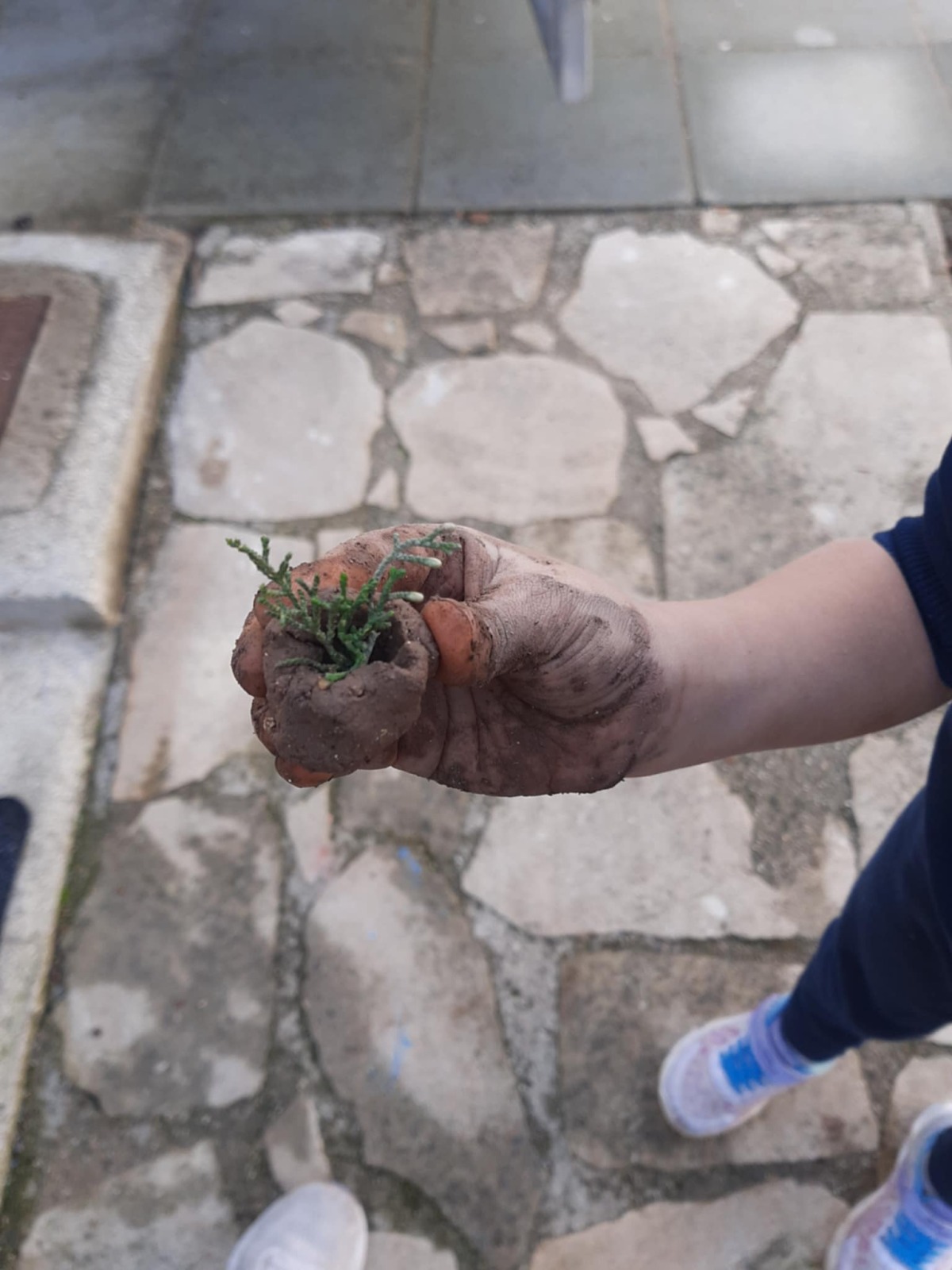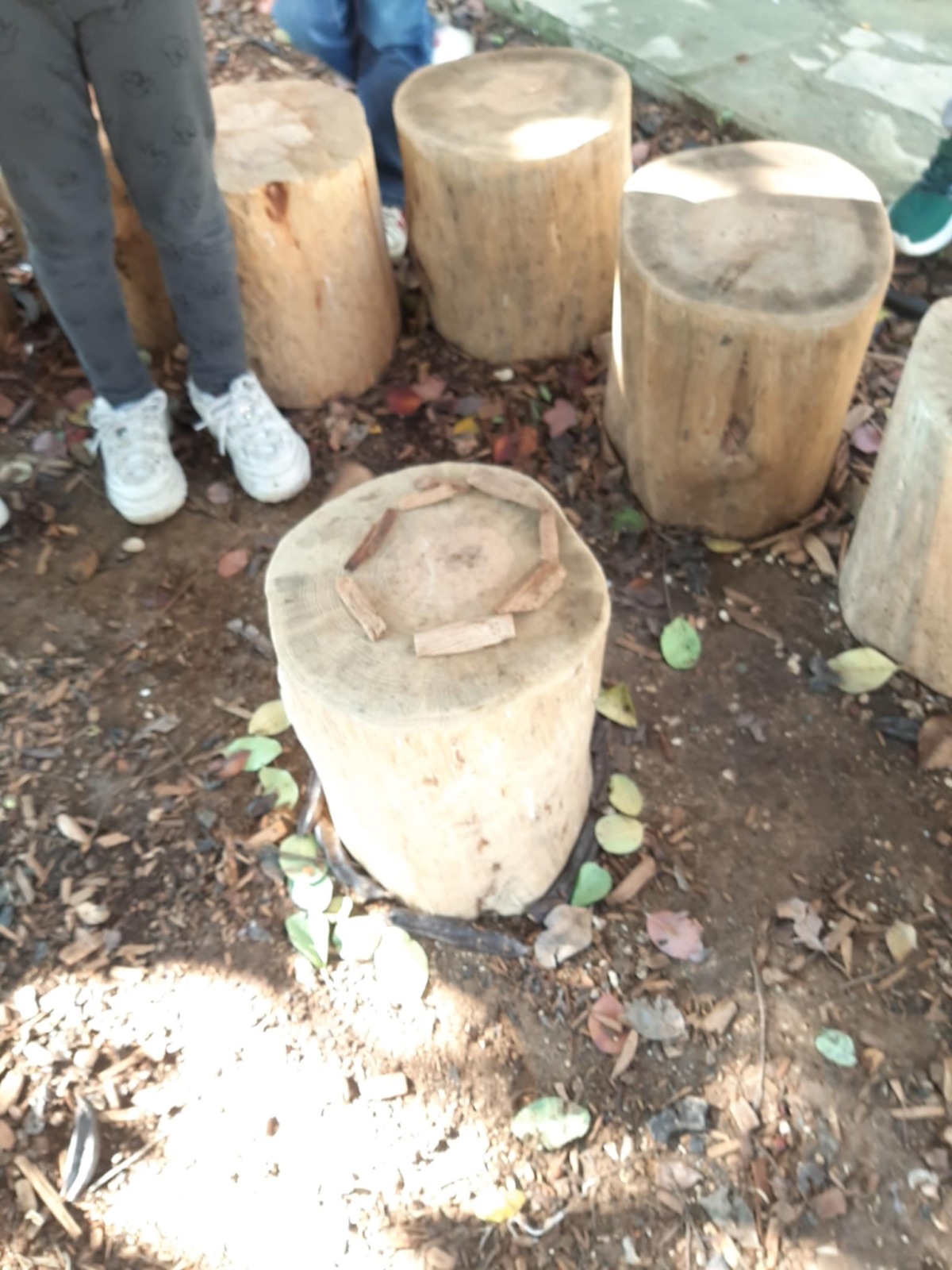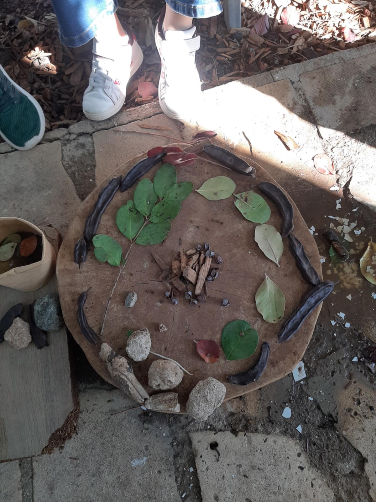 Εικαστικές δημιουργίες με φύλλα, πηλό, σποράκια, κλαδάκια και πέτρες από τον χώρο πρασίνου. Έφτιαξαν μαγικά δέντρα, ανθρωπάκια, εξωγήινους, βάρκα, κάστρα με γέφυρες, θάλασσα και βάρκες, καλαθάκια.