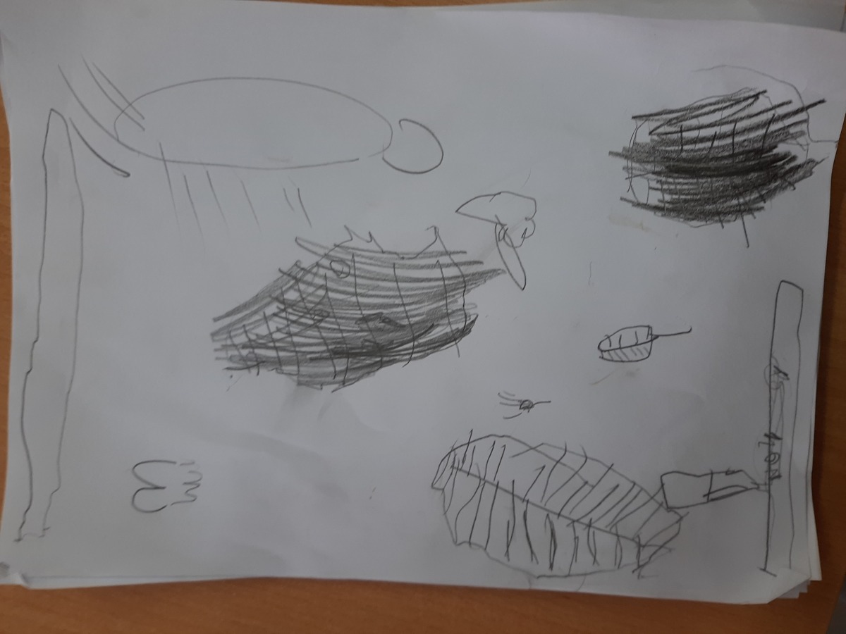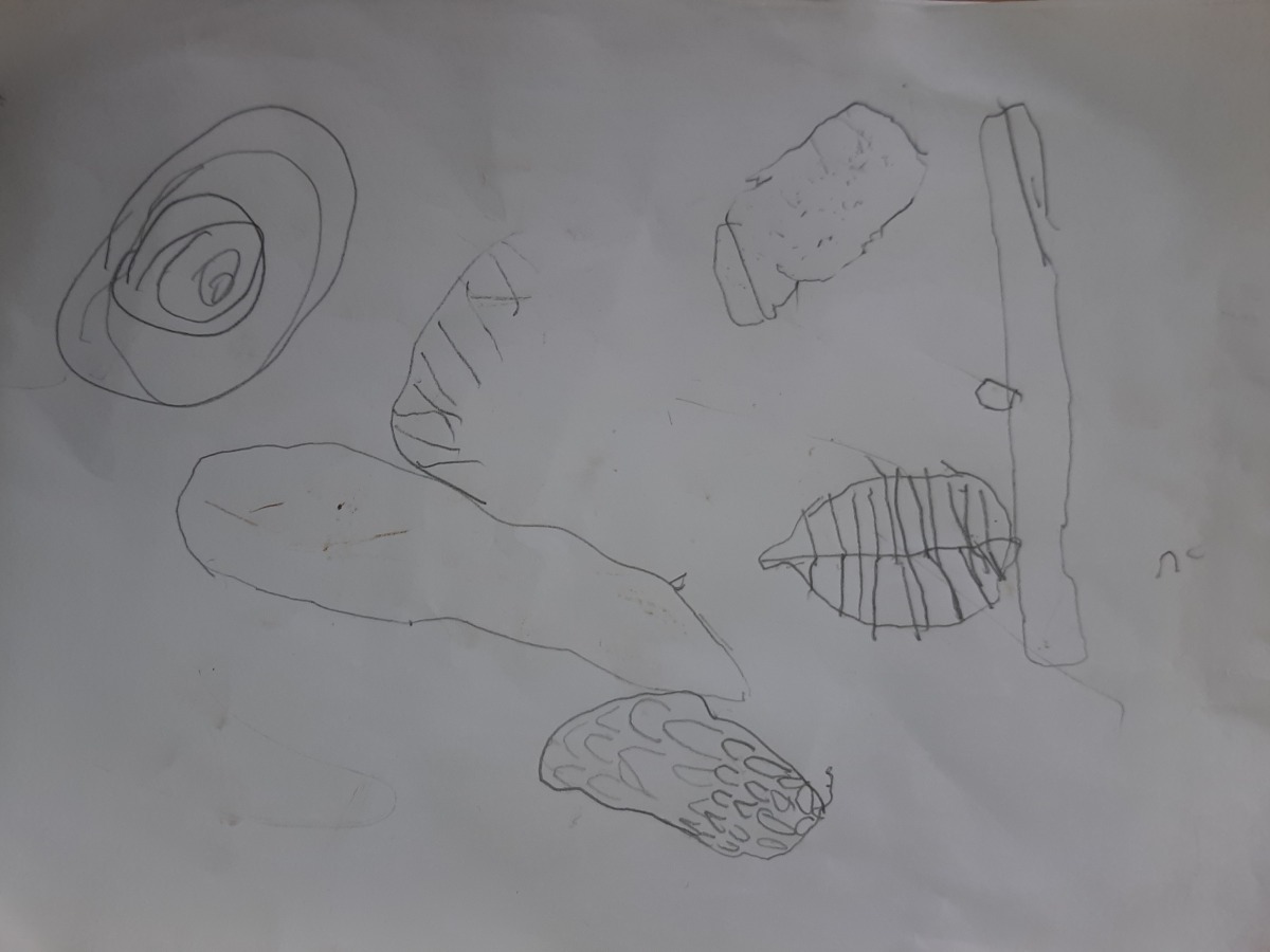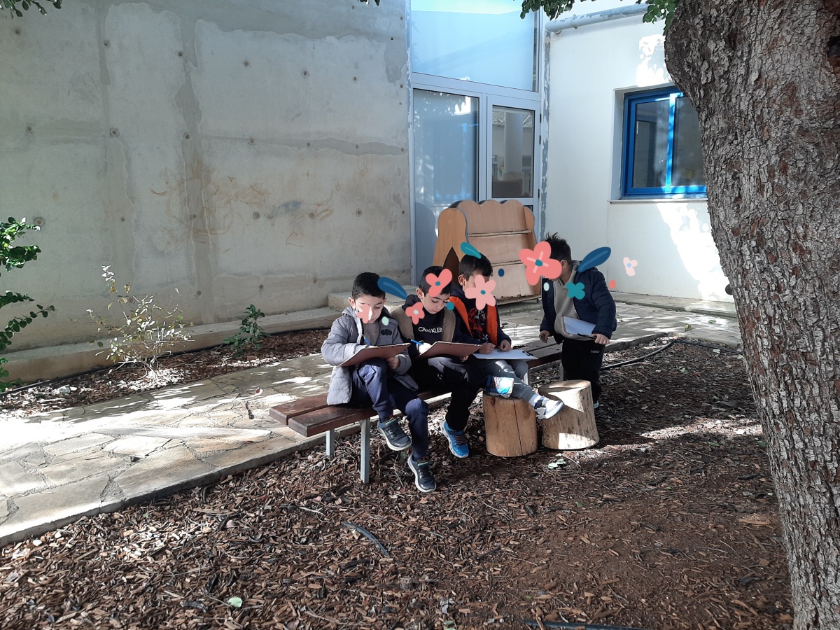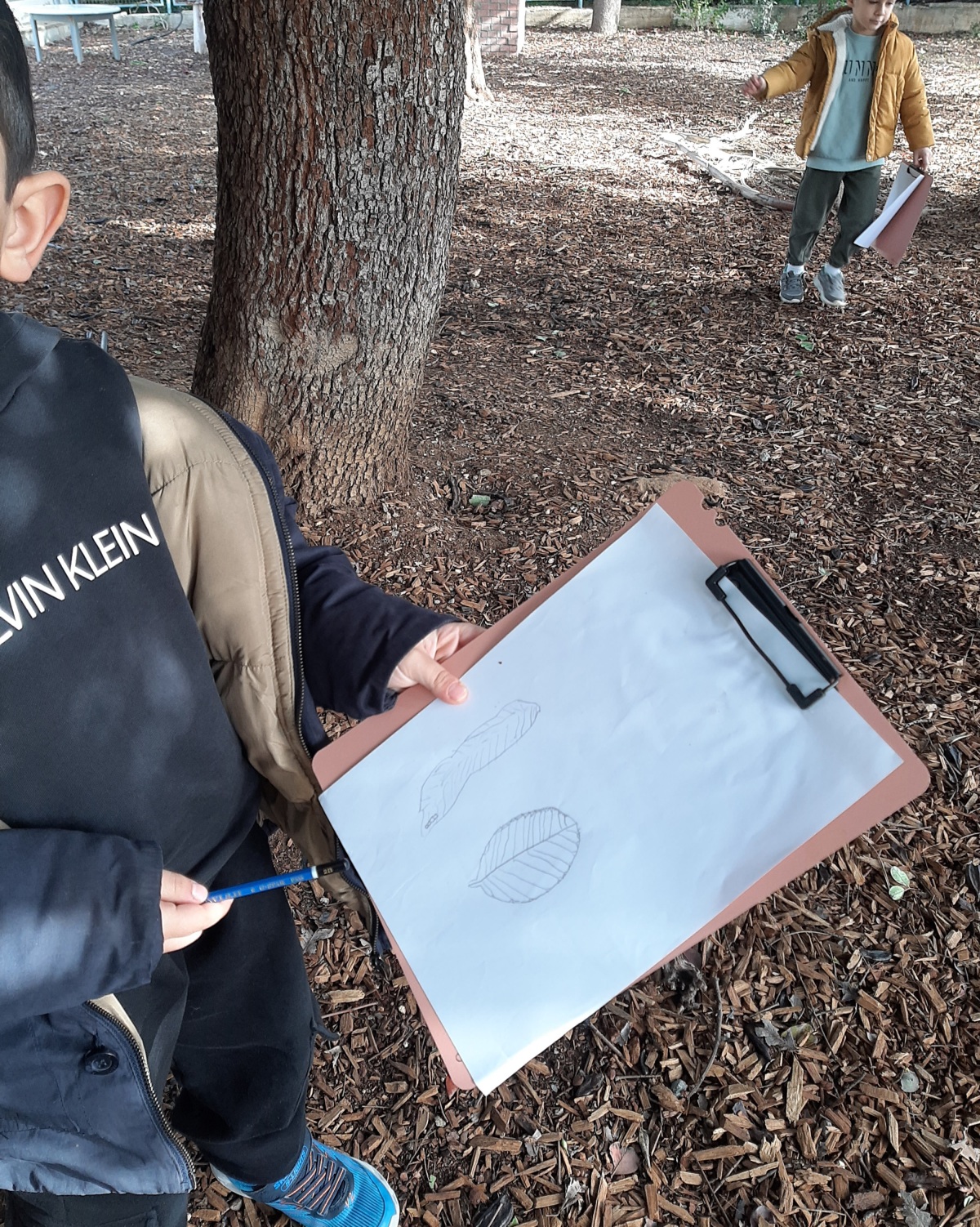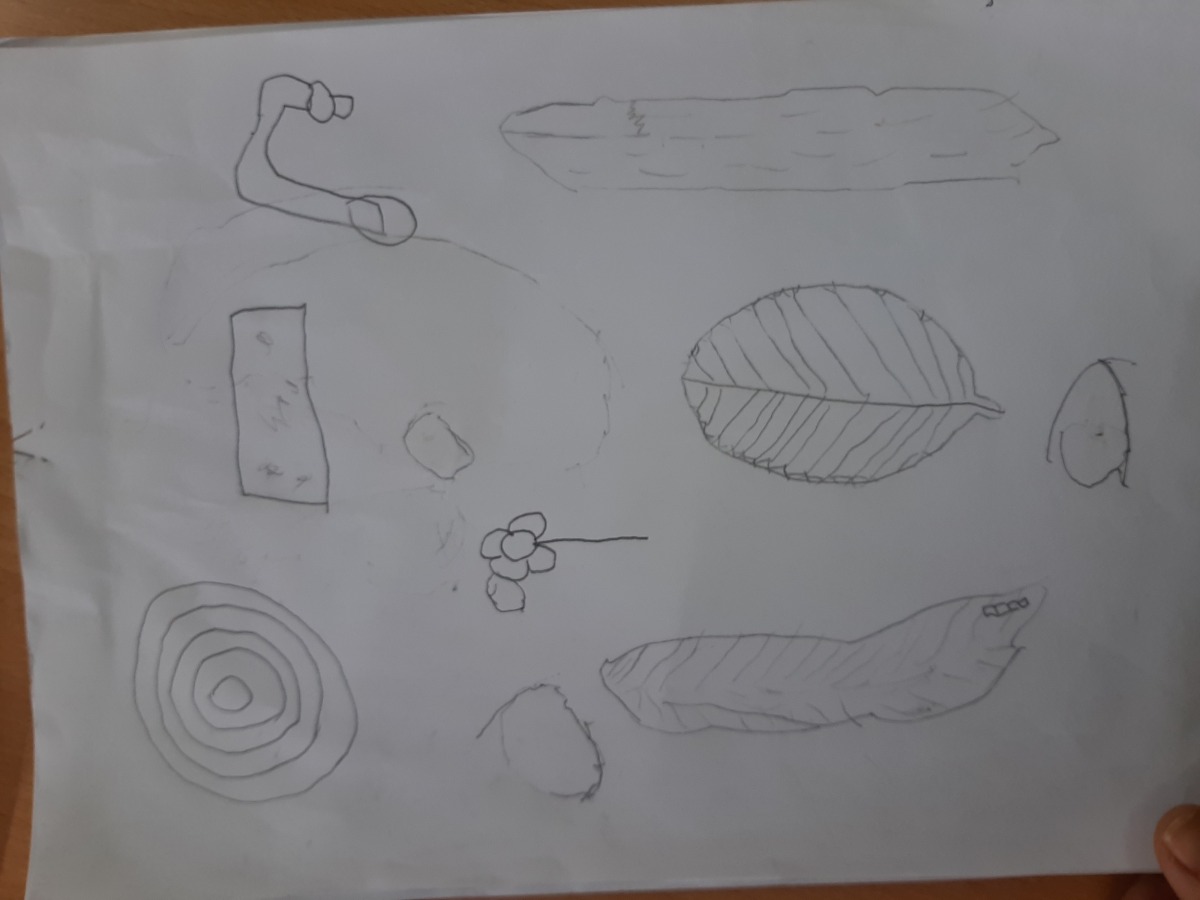 Στα πλαίσια του project μας με θέμα ζωγραφική, συζητήσαμε για το τι ζωγράφιζαν οι αρχαίοι και καταλήξαμε ότι ζωγράφιζαν ότι έβλεπαν στη φύση. Έτσι και τα παιδιά μεταμορφώθηκαν σε αρχαίους άνθρωπους όπου και ζωγράφισαν στοιχεία της φύσης. Στα σχέδιά αποτύπωσαν πολλές λεπτομέρειες όπως οι γραμμές στα φύλλα, το σχήμα των κλαδιών, οι γραμμές σε ένα κορμό.