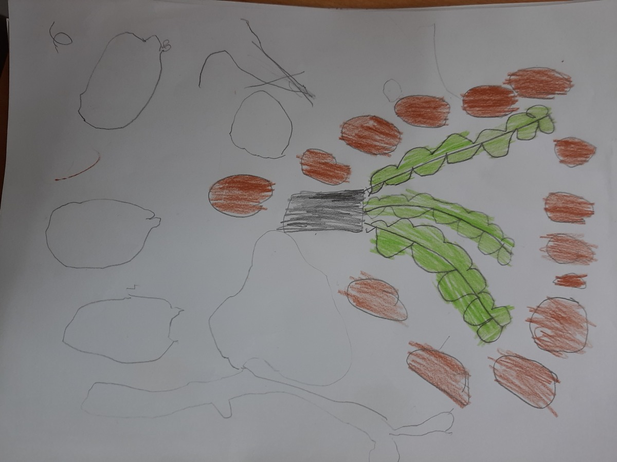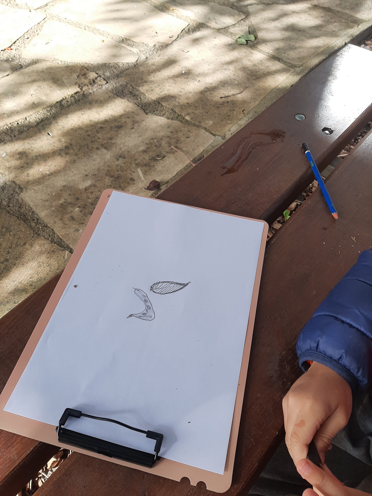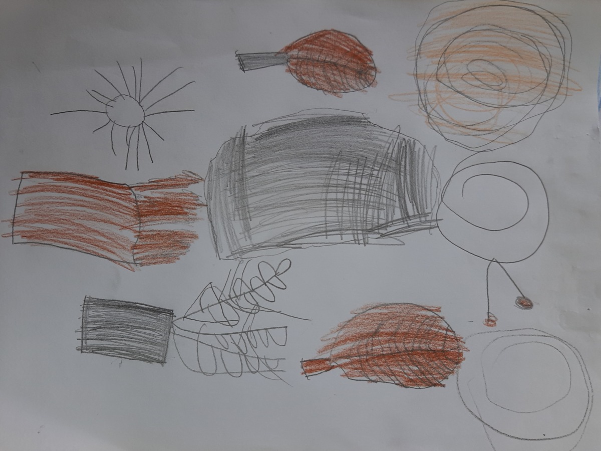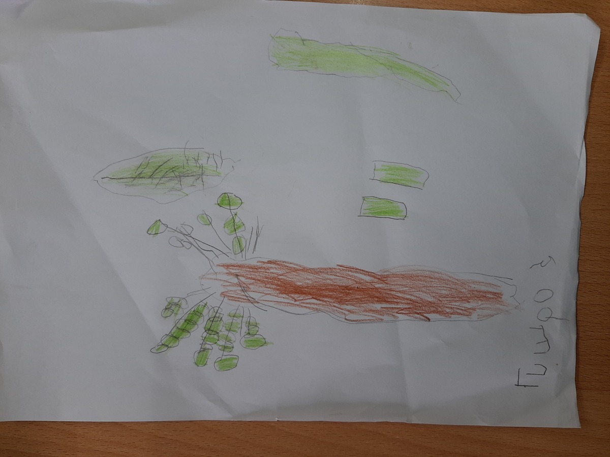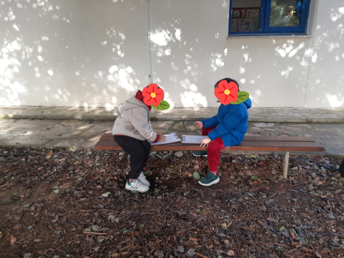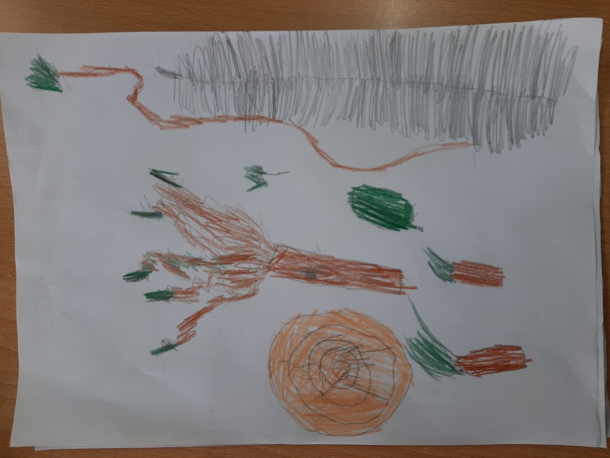 Στα πλαίσια του project μας με θέμα ζωγραφική, συζητήσαμε για το τι ζωγράφιζαν οι αρχαίοι και καταλήξαμε ότι ζωγράφιζαν ότι έβλεπαν στη φύση. Έτσι και τα παιδιά μεταμορφώθηκαν σε αρχαίους άνθρωπους όπου και ζωγράφισαν στοιχεία της φύσης. Στα σχέδιά αποτύπωσαν πολλές λεπτομέρειες όπως οι γραμμές στα φύλλα, το σχήμα των κλαδιών, οι γραμμές σε ένα κορμό.