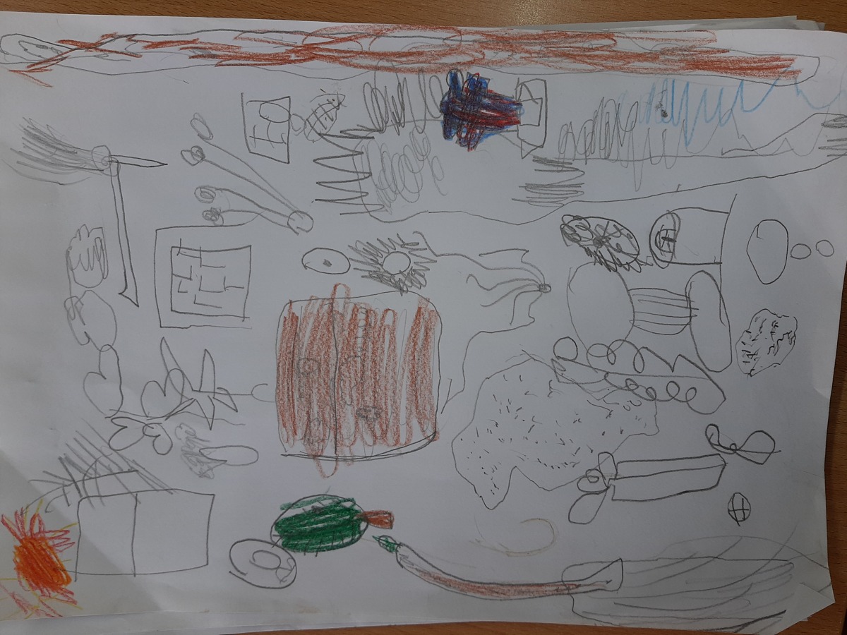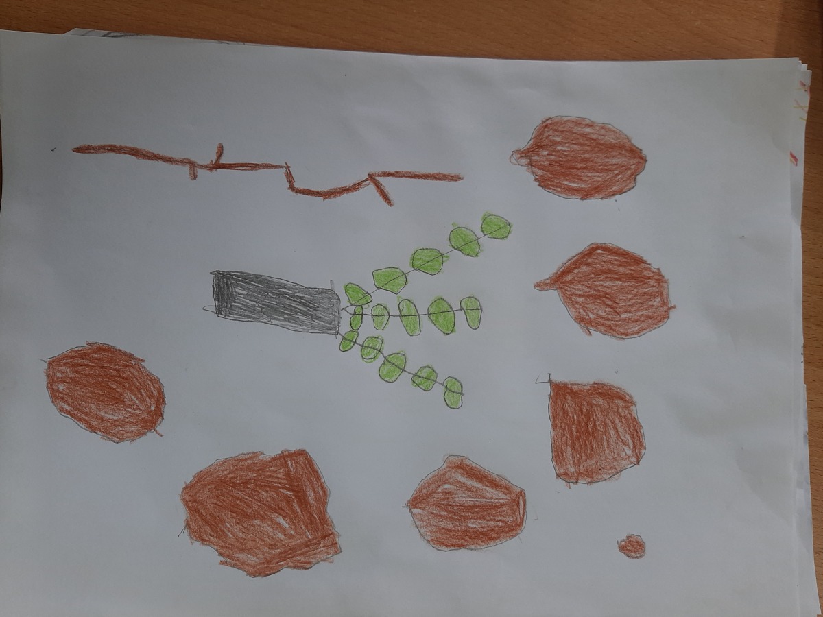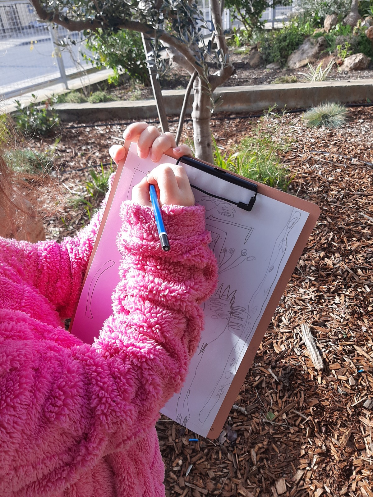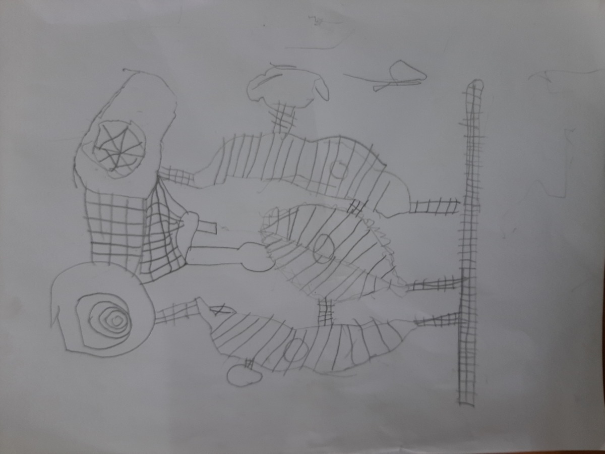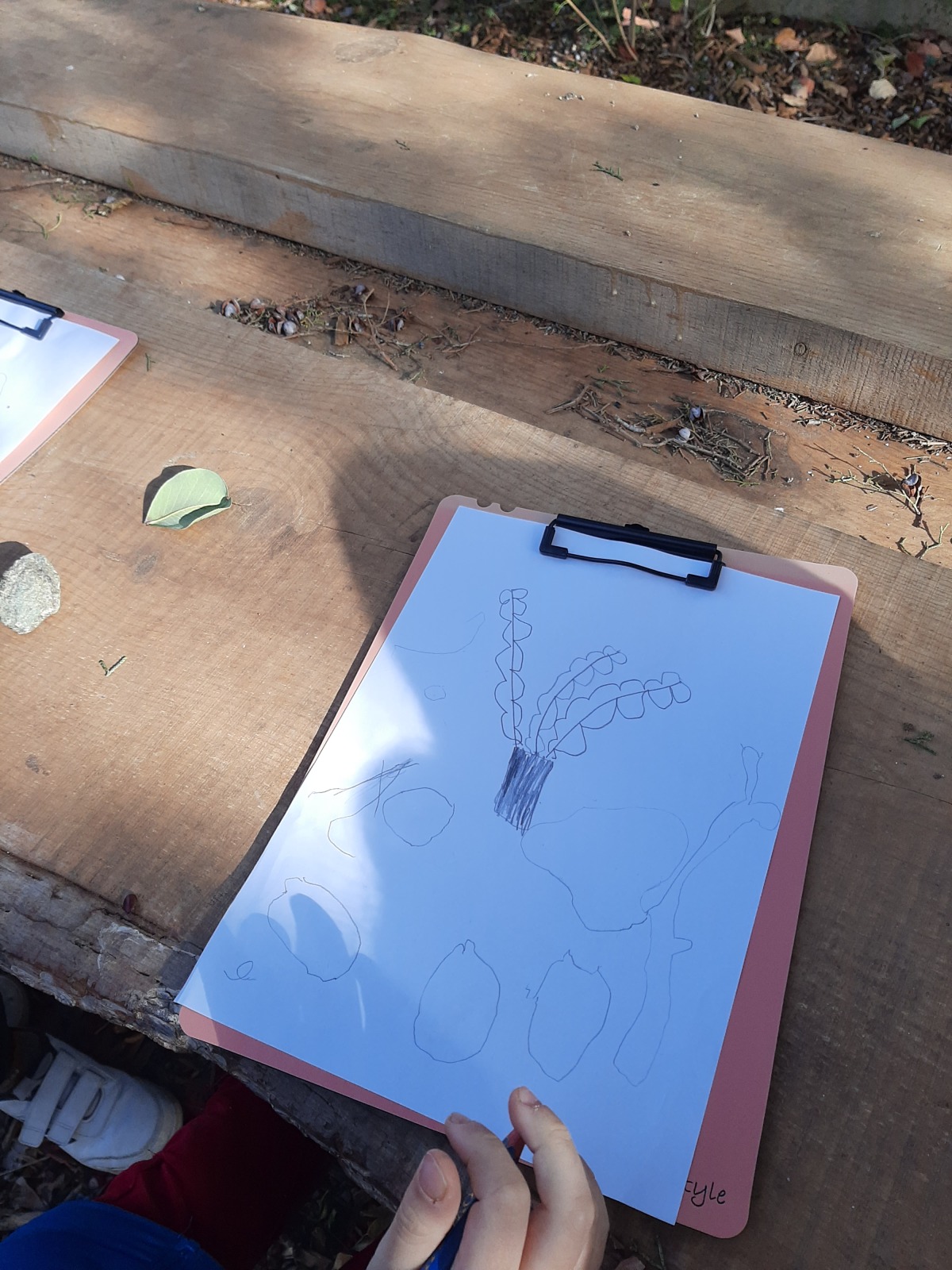 Στα πλαίσια του project μας με θέμα ζωγραφική, συζητήσαμε για το τι ζωγράφιζαν οι αρχαίοι και καταλήξαμε ότι ζωγράφιζαν ότι έβλεπαν στη φύση. Έτσι και τα παιδιά μεταμορφώθηκαν σε αρχαίους άνθρωπους όπου και ζωγράφισαν στοιχεία της φύσης. Στα σχέδιά αποτύπωσαν πολλές λεπτομέρειες όπως οι γραμμές στα φύλλα, το σχήμα των κλαδιών, οι γραμμές σε ένα κορμό.