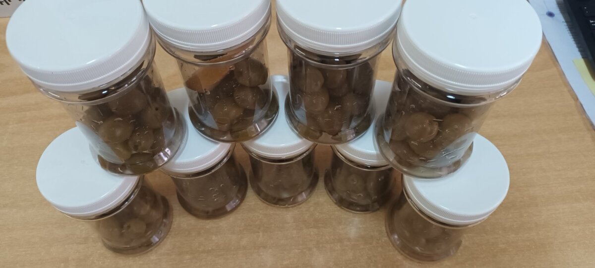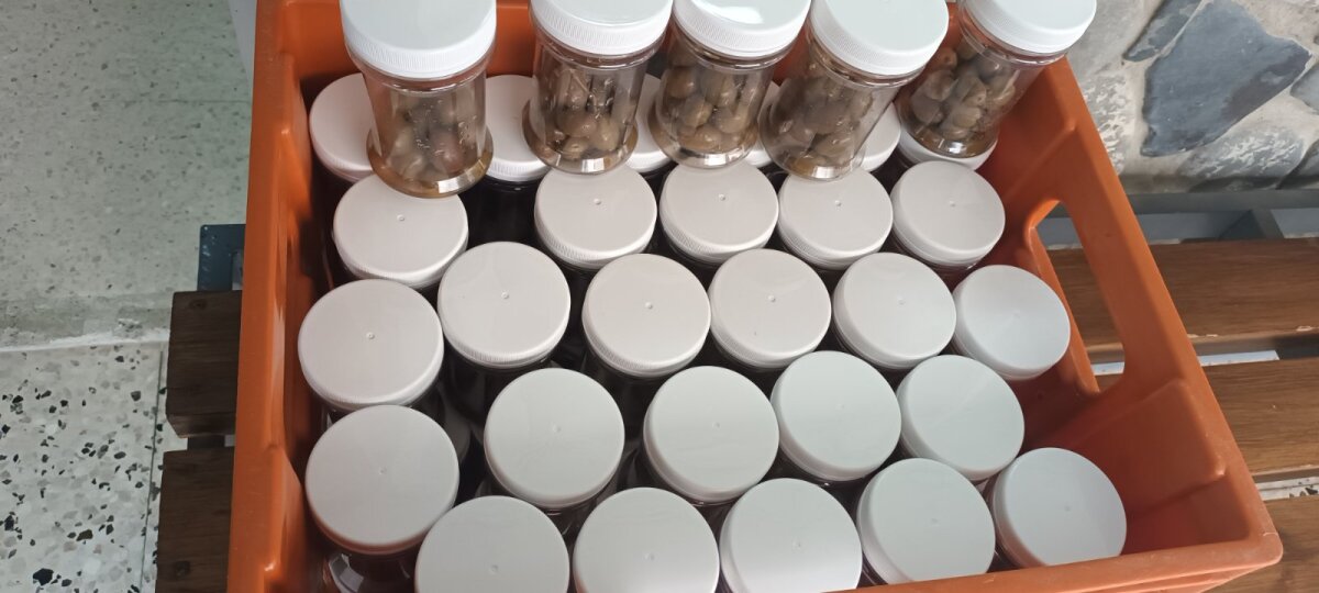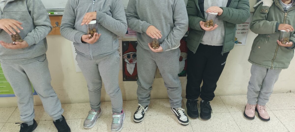 Μετά το μάζεμα των ελιών από τα δέντρα του σχολείου, ο Σύνδεσμος Γονέων δώρισε σε κάθε παιδί ένα μπουκαλάκι με ελιές τσακιστές.