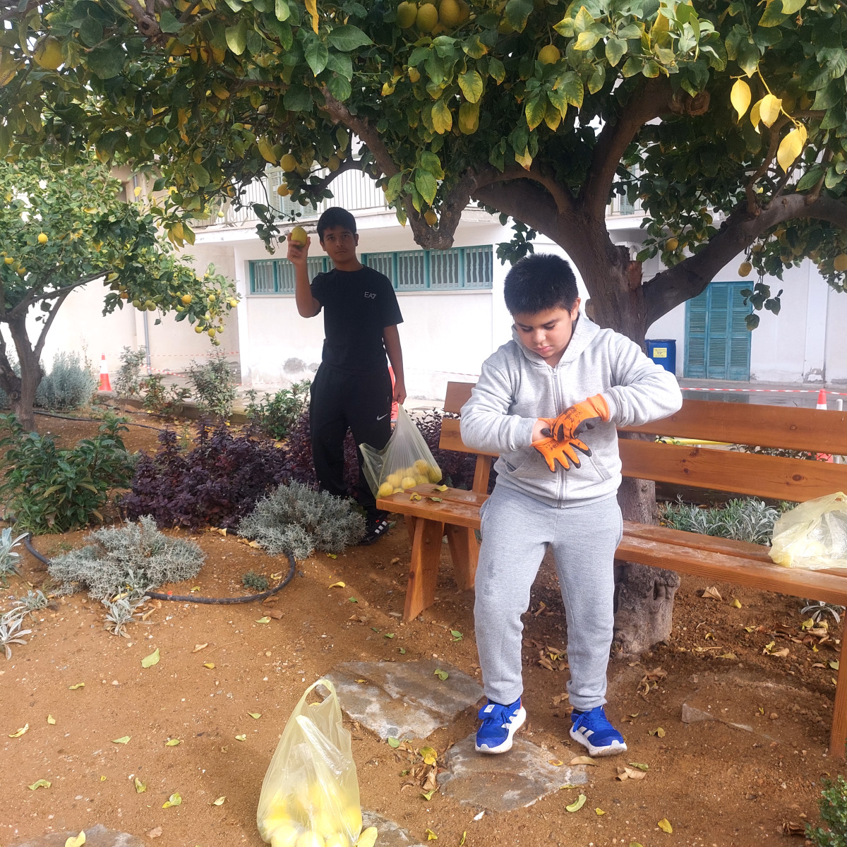 Οι μαθητές/μαθήτριες δημοτικού παρακολούθησαν μάθημα για τα εσπεριδοειδή της Κύπρου, το οποίο πραγματοποιήθηκε στο κηπάριο της σχολής μας. Αναλύθηκε το βλαστικό στάδιο του δέντρου και η περίοδος συγκομιδής των καρπών, προχώρησαν σε συγκομιδή των ώριμων καρπών των δέντρων (Λεμονιάς και Νερατζιάς). Στη συνέχεια θα φτιάξουν την δική τους λεμονάδα.
