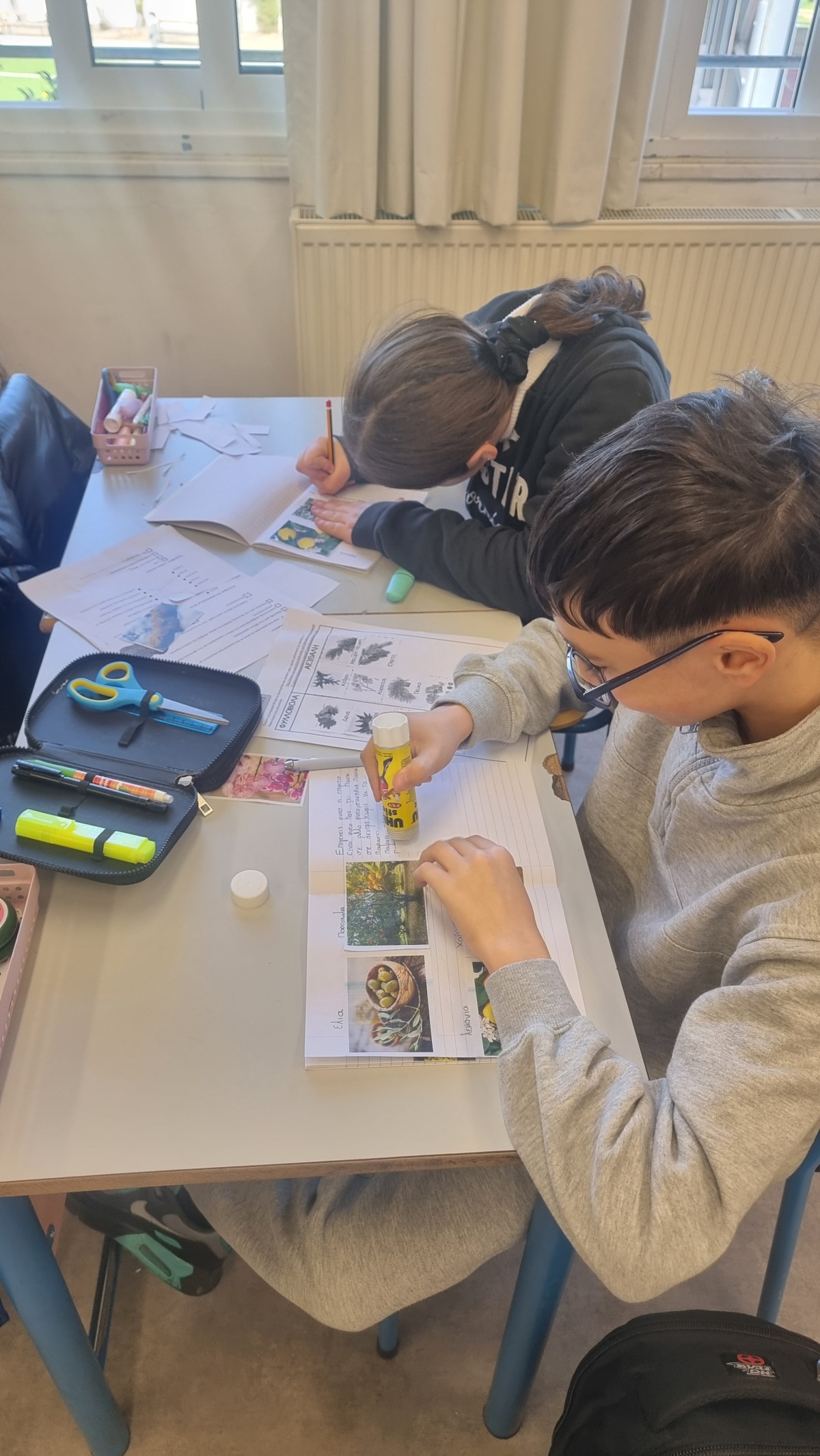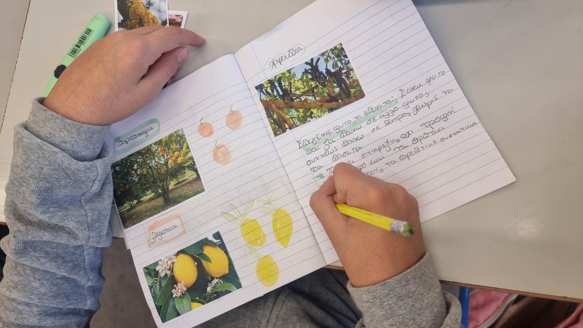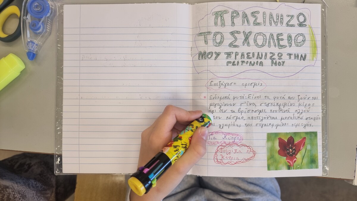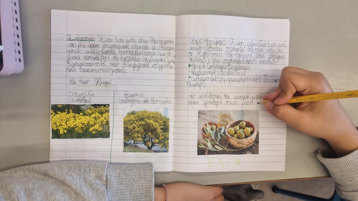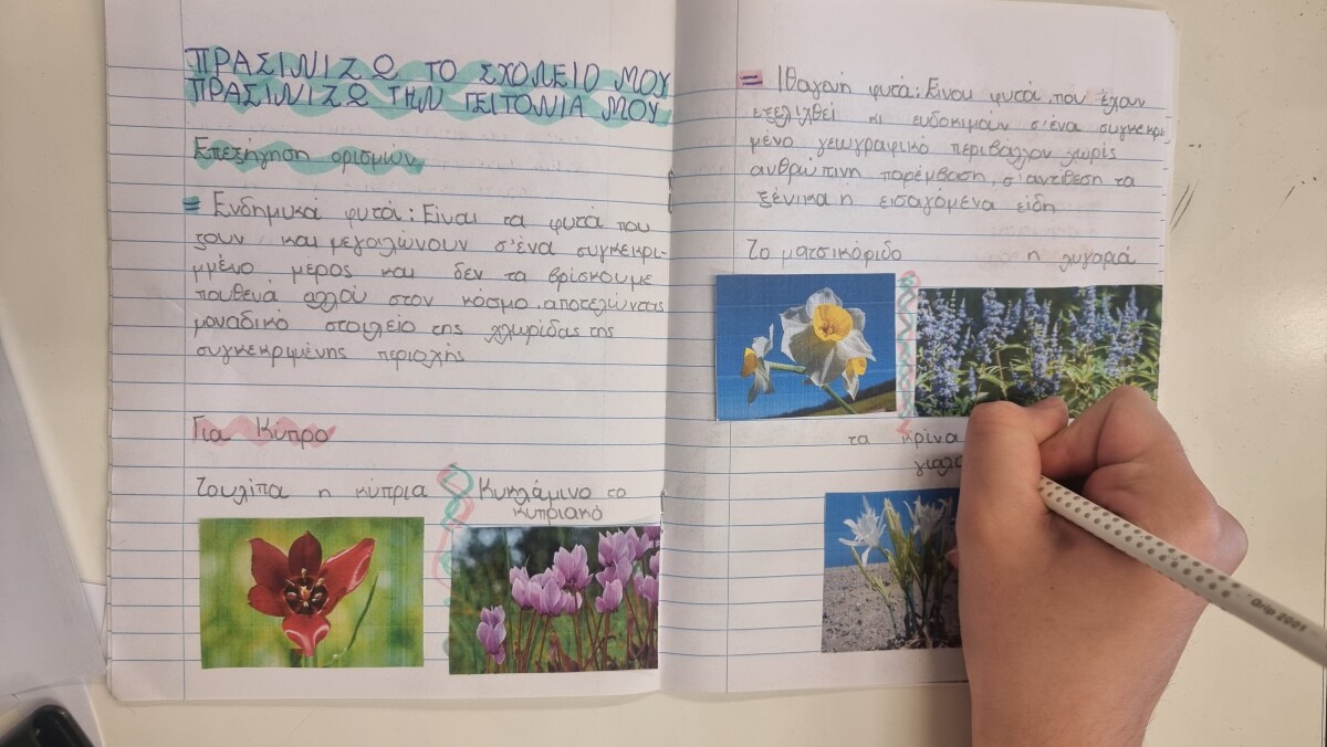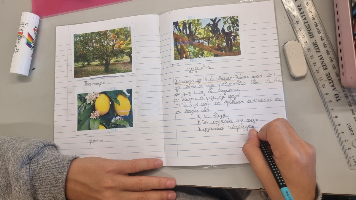 Εντόπισαν φυτά από κάθε ομάδα στον κήπο του σχολείου. Βρήκαν, επίσης, ενδεικτικά φυτά με εικόνες ανά κατηγορία και τις κόλλησαν στο τετράδιό τους.