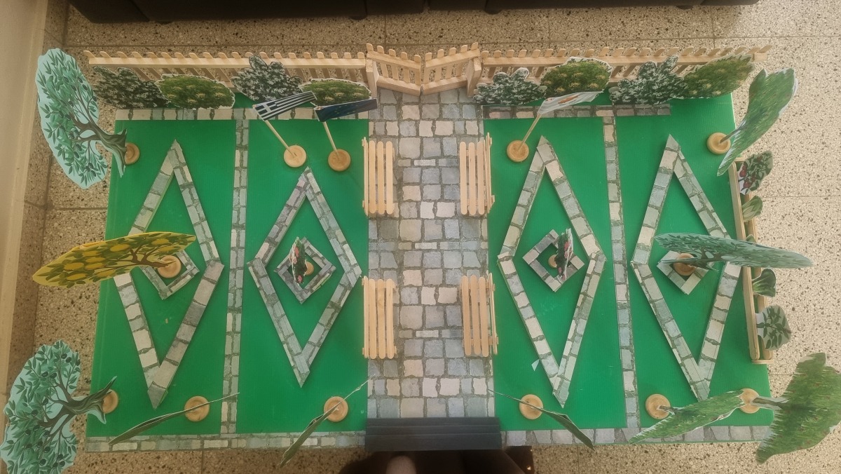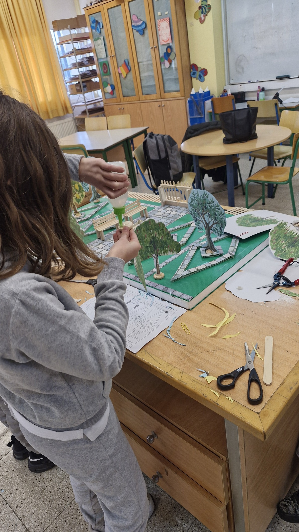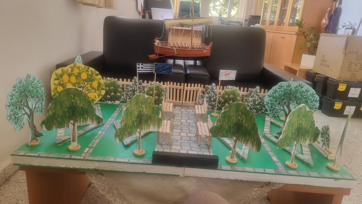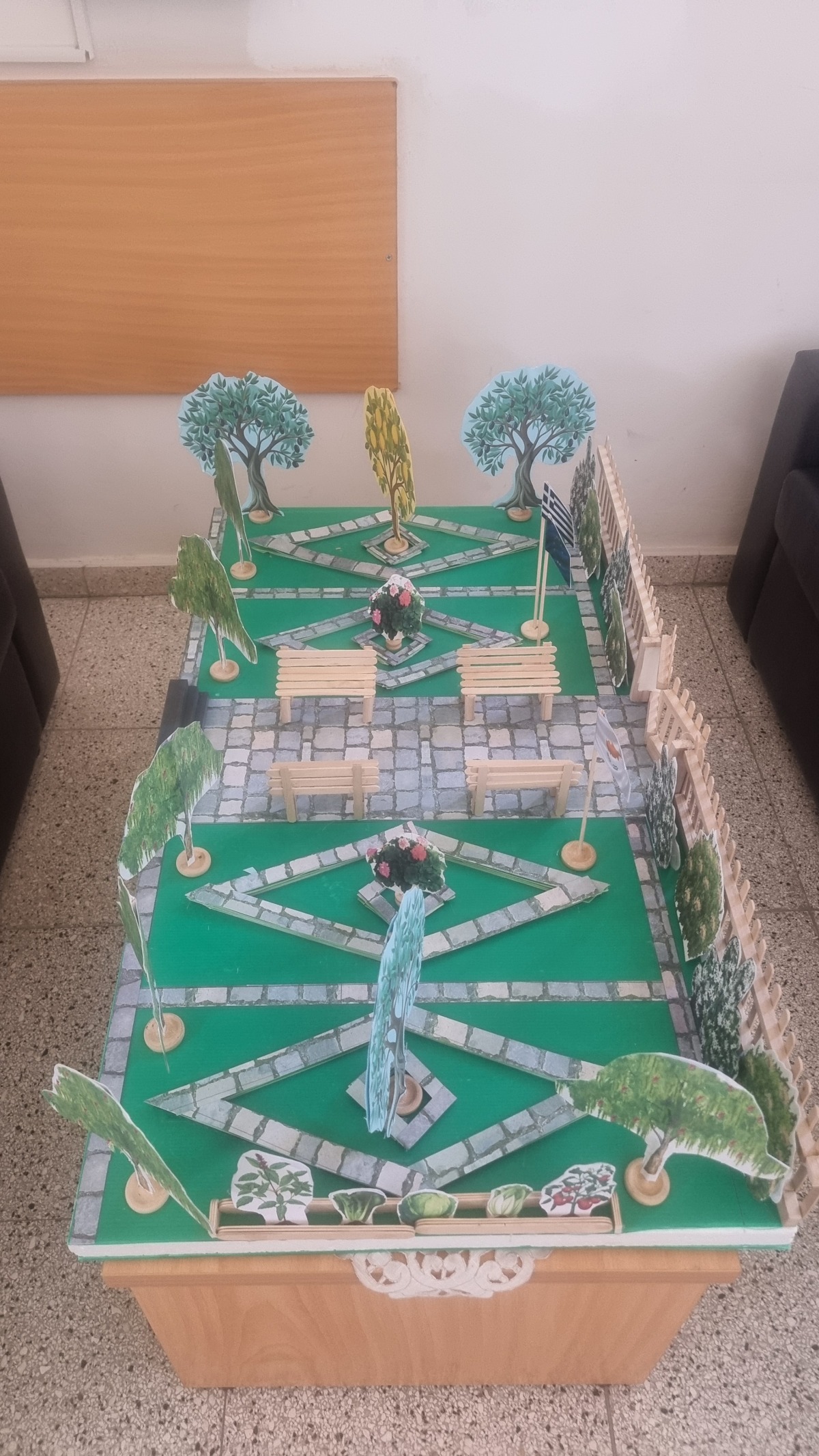 Στα πλαίσια του μαθήματος του Σχεδιασμού και Τεχνολογίας, οι μαθητές/μαθήτριες της Στ΄ τάξης σε συνεργασία με τον δάσκαλό τους κύριο Νίκο Παναγίδη, κατασκεύασαν μακέτα του σχολικού κήπου με βάση την κάτοψη του σχεδίου τοπιοτέχνησης του κήπου.