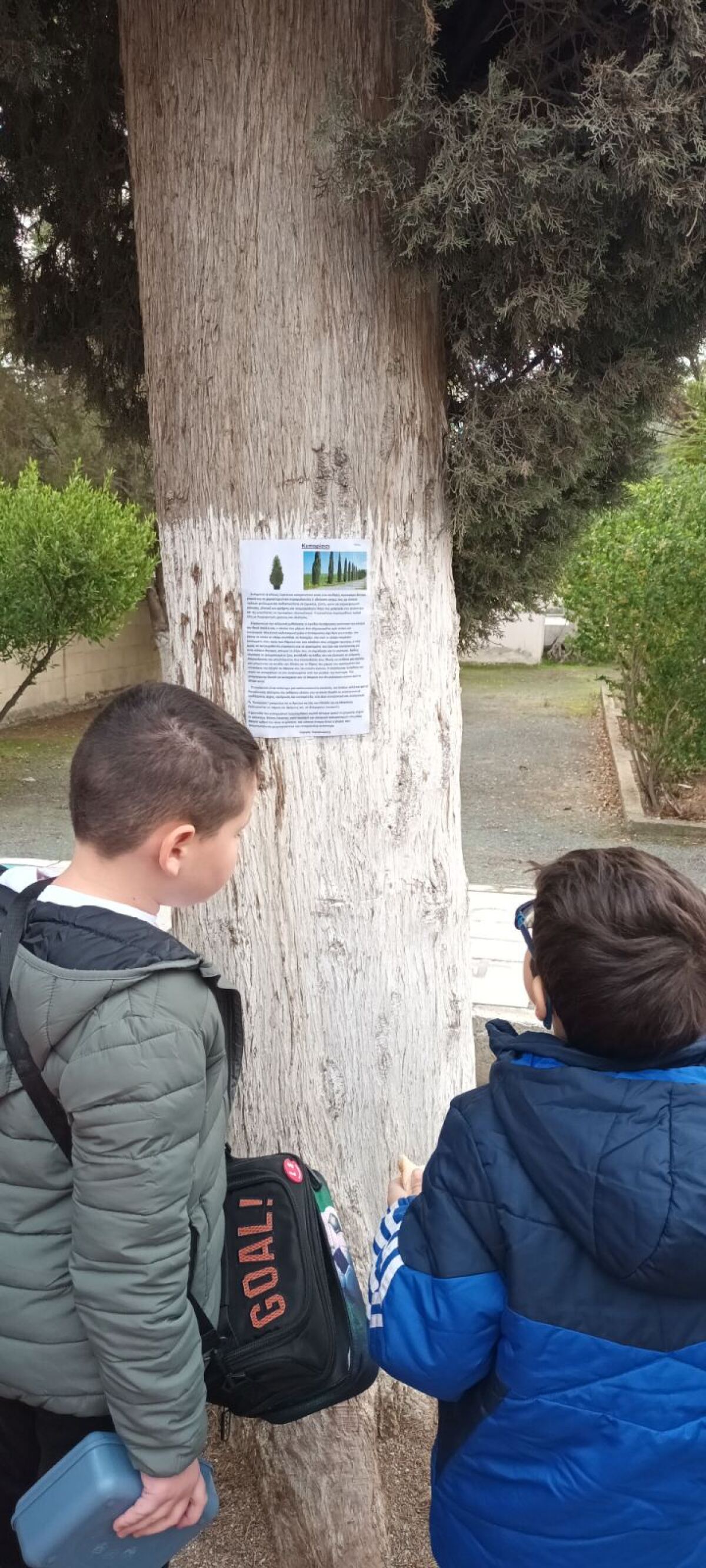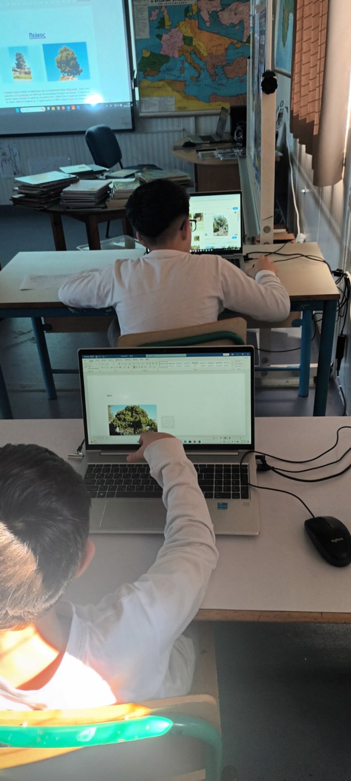 Τα παιδιά με τη βοήθεια των εκπαιδευτικών και εφαρμογών στις ταμπλέτες κατέγραψαν τα είδη φυτών (δέντρων, θάμνων και λουλουδιών) που υπάρχουν στον χώρο του σχολείου. Ακολούθησε η εξεύρεση πληροφοριών για το κάθε φυτό στο διαδίκτυο (περιγραφή, ιστορικά στοιχεία, χρησιμότητα, φροντίδα, κ.ά.) και ετοίμασαν πληροφοριακά σημειώματα για το κάθε φυτό. Τα πληροφοριακά σημειώματα τοποθετήθηκαν στους κορμούς των δέντρων ώστε να ενημερώνονται όσοι/όσες επισκέπτονται τον σχολικό χώρο.
