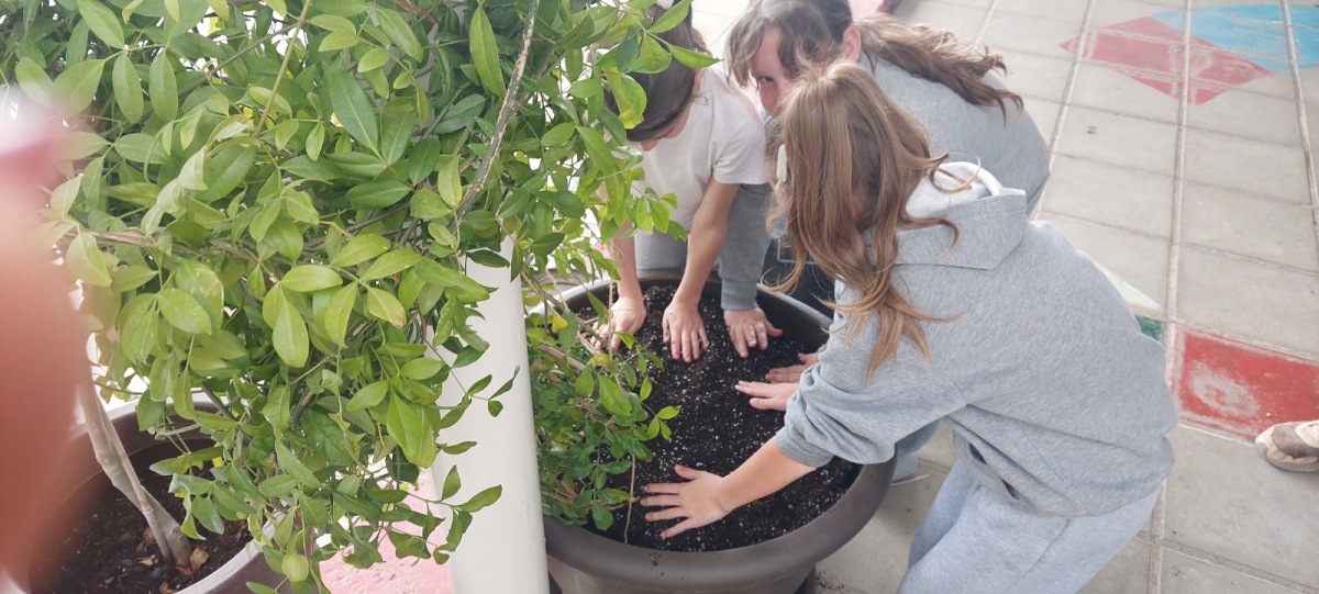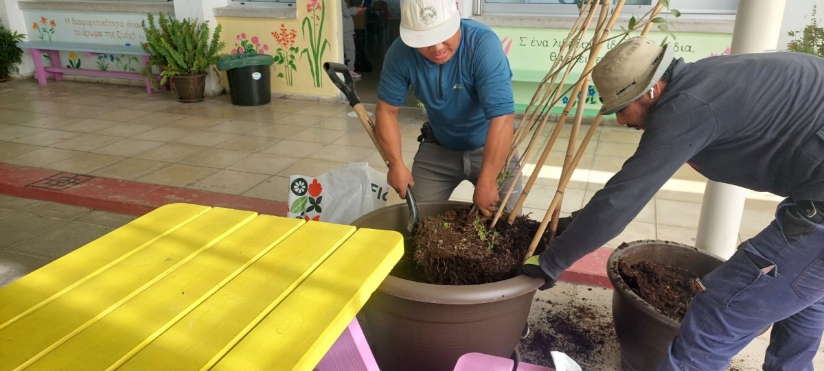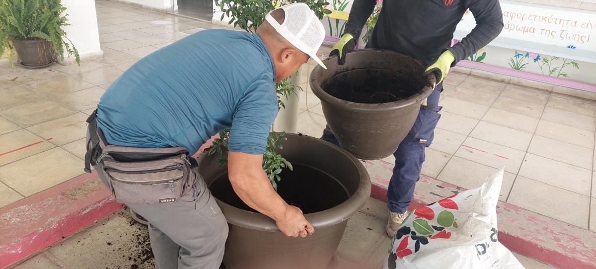 Οι μαθητές/μαθήτριές μας συμμετείχαν σε μια οργανωμένη δράση φροντίδας των φυτών της πράσινης οροφής του σχολείου. Με υπευθυνότητα και συνεργασία, μετέφεραν τα φυτά σε μεγαλύτερες γλάστρες, ώστε να έχουν περισσότερο χώρο για σωστή ανάπτυξη. Κατά τη διαδικασία της μεταφύτευσης πρόσθεσαν φρέσκο χώμα και λίπασμα, μαθαίνοντας τη σημασία των θρεπτικών στοιχείων για την υγεία των φυτών. Μέσα από τη βιωματική αυτή δραστηριότητα, οι μαθητές/μαθήτριες ήρθαν σε επαφή με πρακτικές καλλιέργειας, ανέπτυξαν οικολογική συνείδηση και κατανόησαν πόσο σημαντική είναι η φροντίδα του πρασίνου για ένα βιώσιμο και όμορφο σχολικό περιβάλλον!