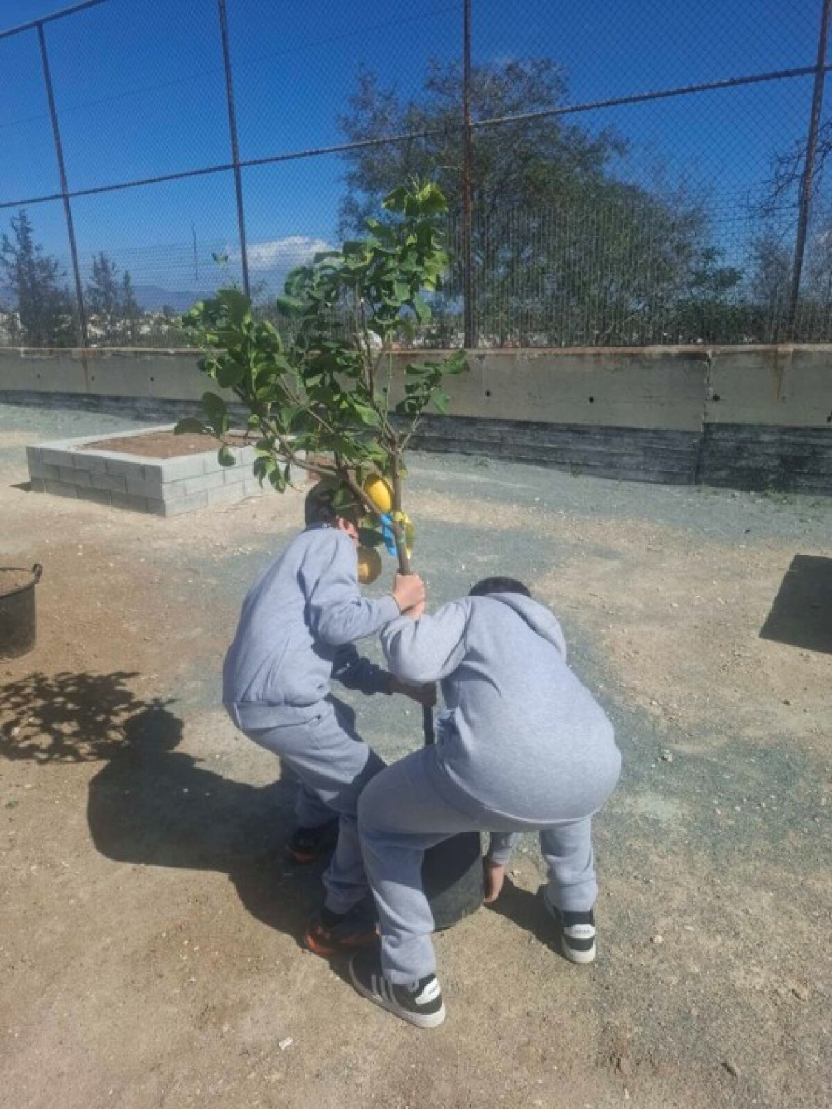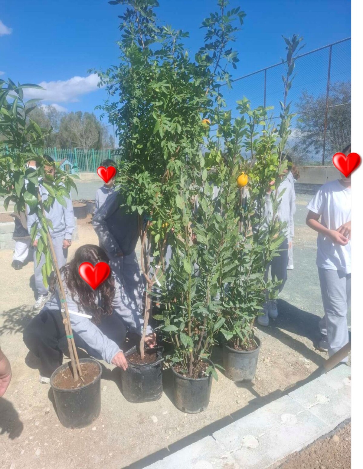 Στη συνέχεια, με τη βοήθεια των ειδικών συνεργατών μας, προσθέσαμε και άλλες προτάσεις, για να δημιουργηθεί ένα ζωντανό και βιώσιμο αποτέλεσμα. Τελικά, φυτεύτηκαν: 2 δάφνες, 2 μαστιχόδεντρα, 2 ελιές, 2 αμυγδαλιές, 1 ροδιά, 1 μουριά, 2 λεμονιές Λαπήθου, 1 μανταρινιά και 1 πορτοκαλιά.