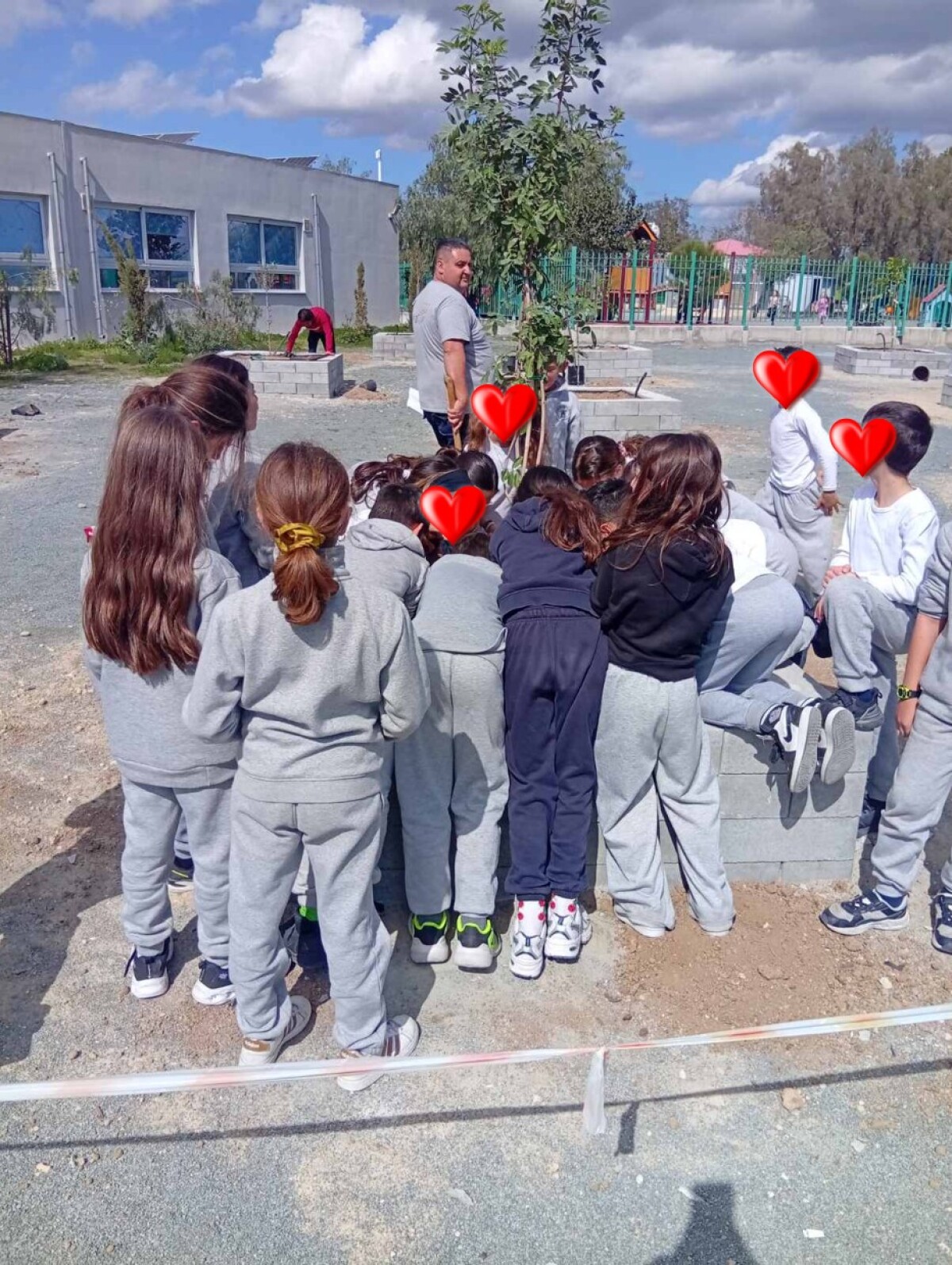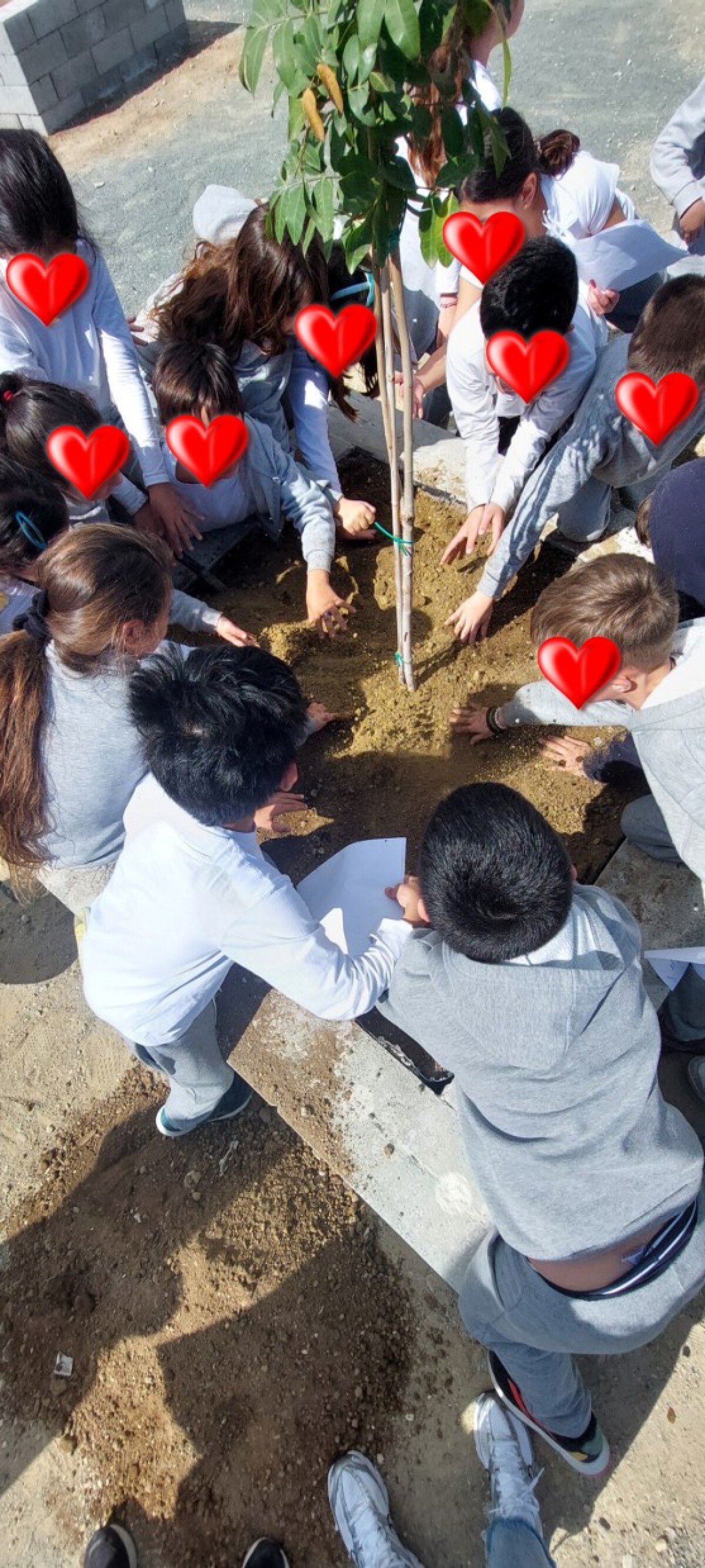 Με χαρά και ενθουσιασμό, τα παιδιά βοήθησαν στη φύτευση και παρατήρησαν κάθε δέντρο να βρίσκει τη θέση του.