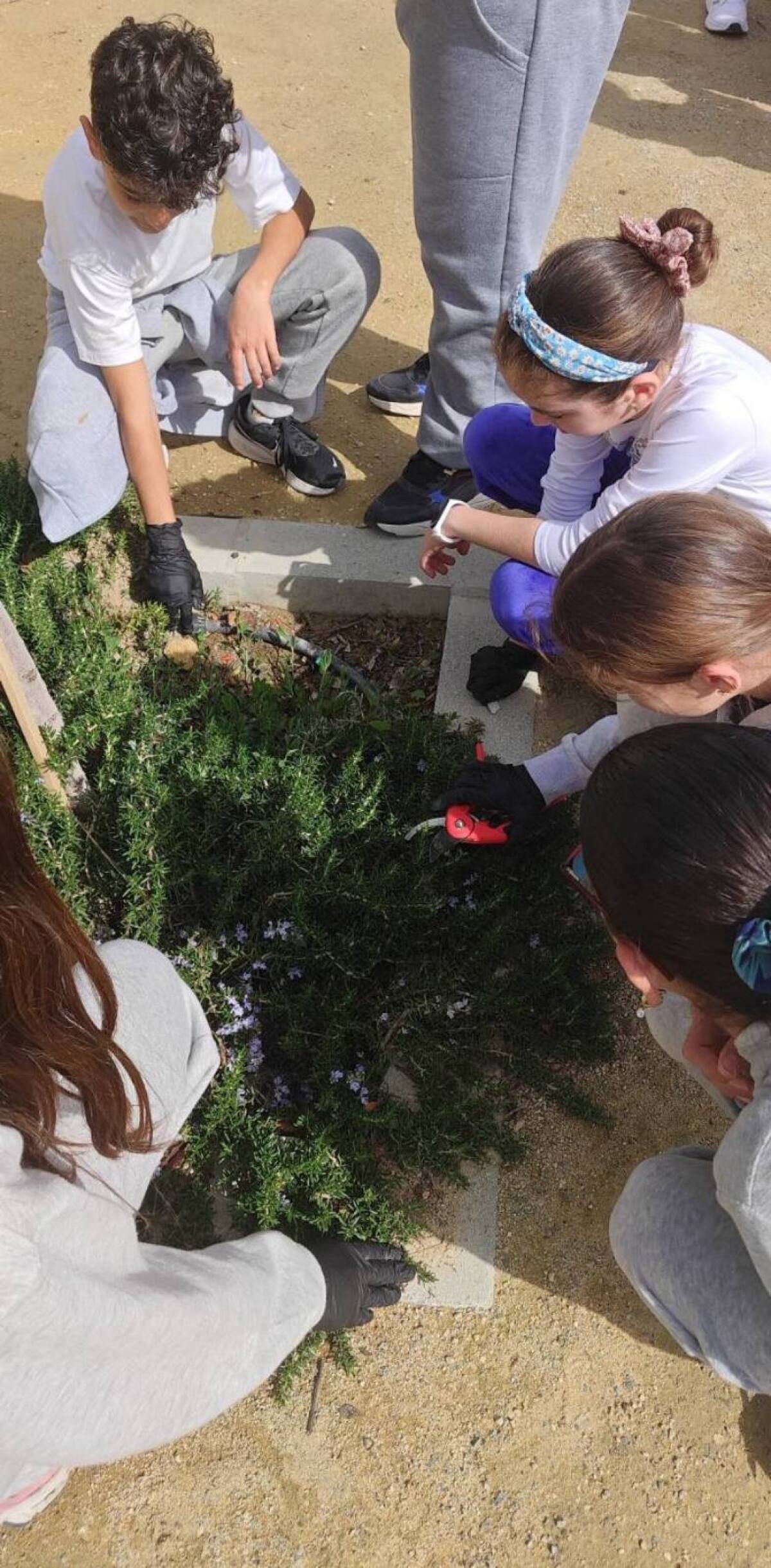 Τα παιδιά της Ε και Δ τάξης έπιασαν δουλειά στον χώρο πρασίνου. Γιατί τα δέντρα, μπορεί να μας προσφέρουν πολλά, αλλά χρειάζονται κι αυτά φροντίδα. Έτσι κι εμείς τα κλαδέψαμε, γίναμε εξολοθρευτές ζιζανίων και περιποιηθήκαμε τα βότανά μας.