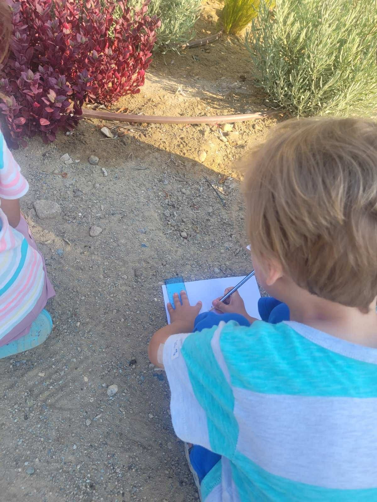 Στη συνέχεια, βγήκαμε στον κήπο, όπου τα παιδιά παρατήρησαν προσεκτικά τα φυτά, την ανάπτυξή τους και την πορεία τους. Με μεγάλο ενδιαφέρον εξερεύνησαν τον χώρο, εντόπισαν αλλαγές και χρησιμοποίησαν μεγεθυντικούς φακούς για παρατήρηση.