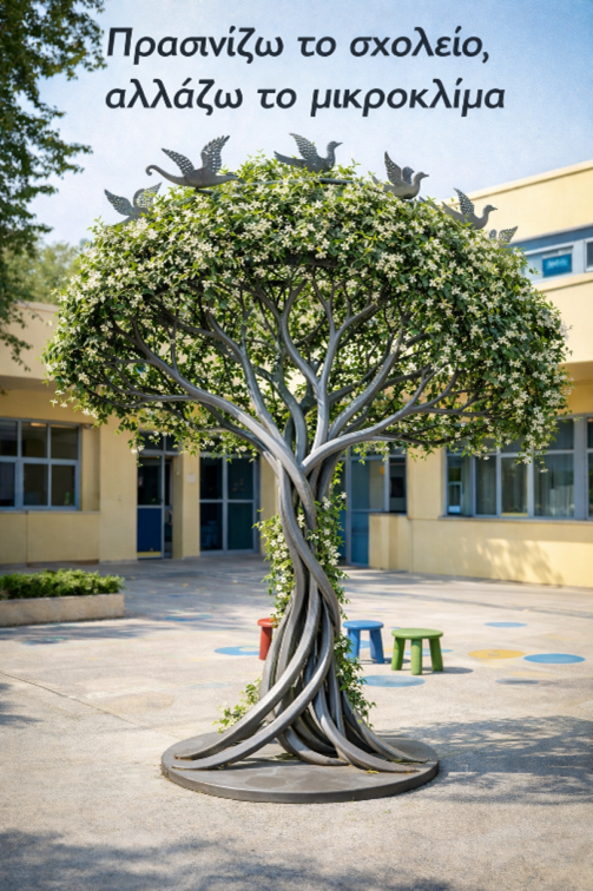 Μαθητές/Μαθήτριες και εκπαιδευτικοί δημιούργησαν προσχέδια της σιδερένιας κατασκευής. Οι μαθητές/μαθήτριες της Στ΄ και Δ΄ τάξης, καθώς και της περιβαλλοντικής ομάδας, ζωγράφισαν, έφτιαξαν κολάζ και αξιοποίησαν την τεχνολογία για να σχεδιάσουν το υβριδικό γλυπτό.