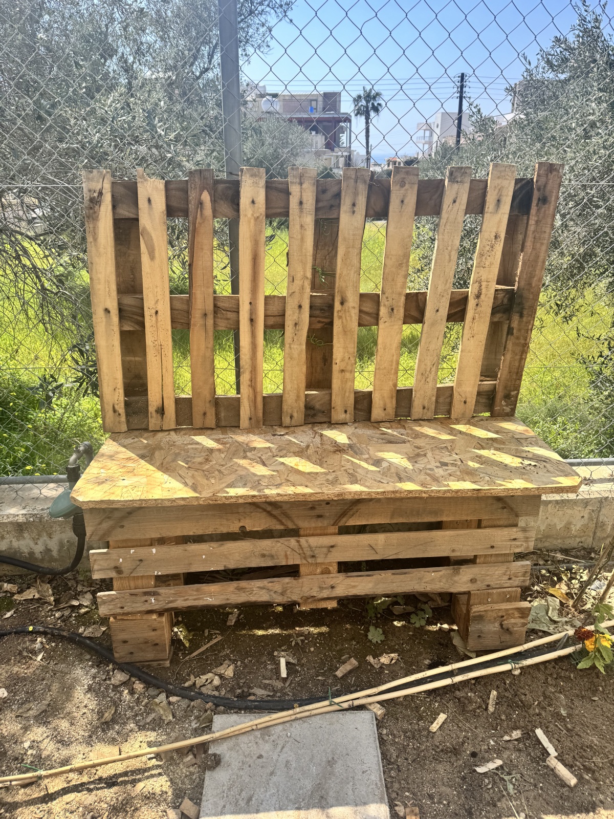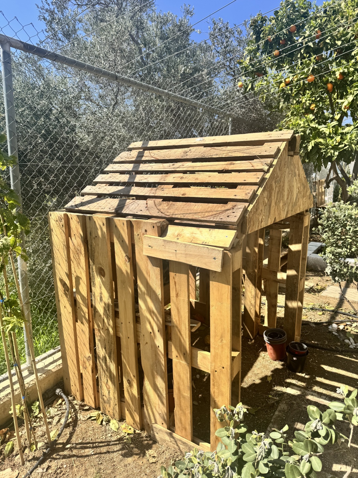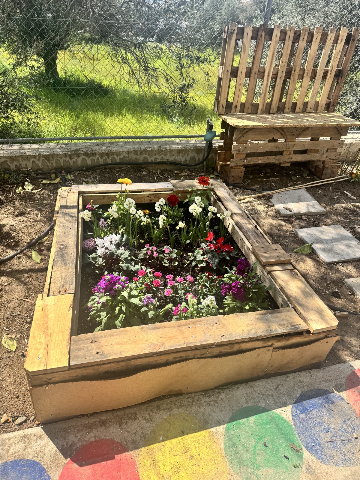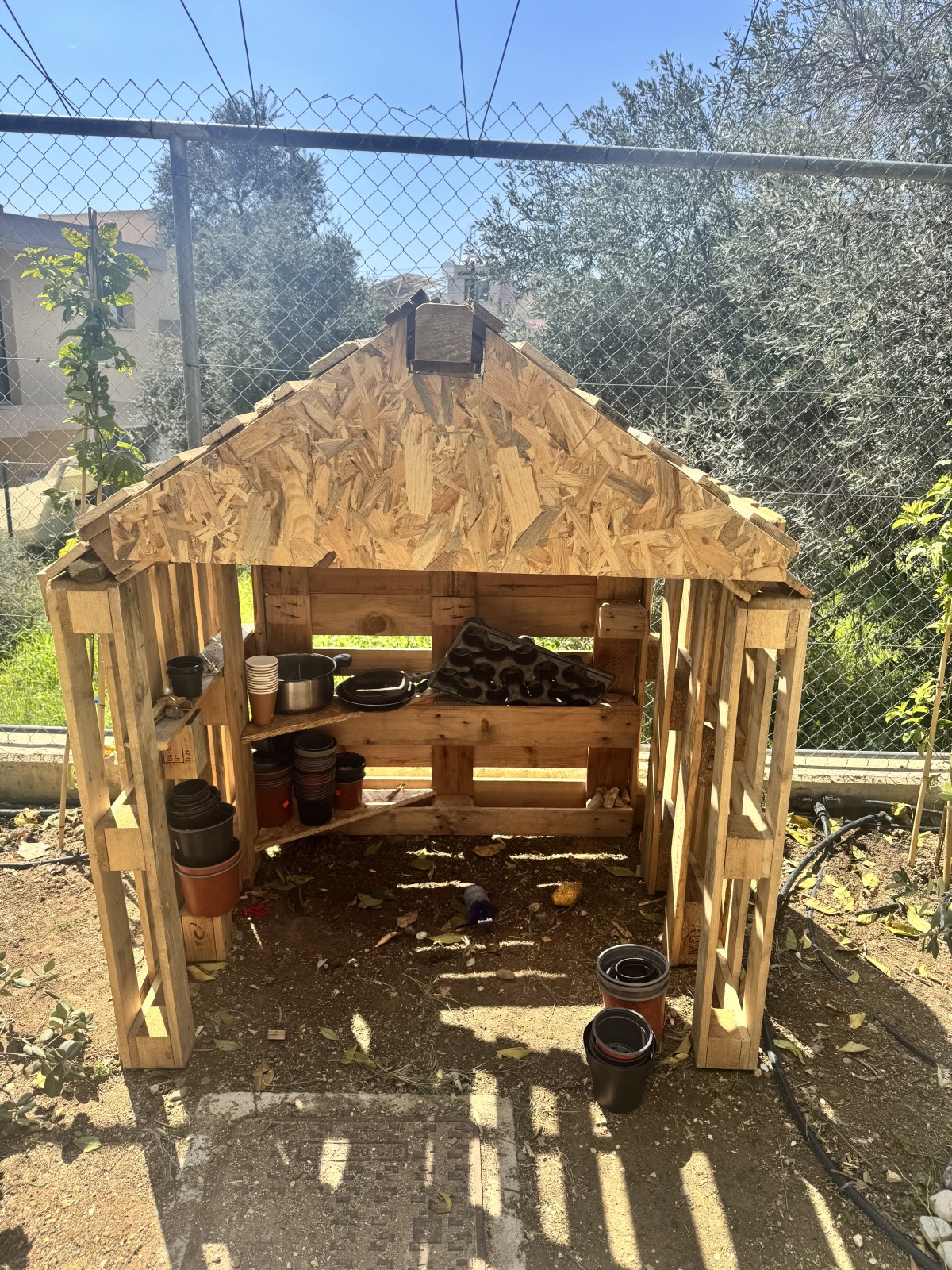 Οι γονείς με πολύ κέφι ήρθαν και με παλιά παλέτα έφτιαξαν σπιτάκια, παγκάκια και πάγκους εργασίας για δραστηριοποιούνται τα παιδιά στο χώρο πρασίνου!