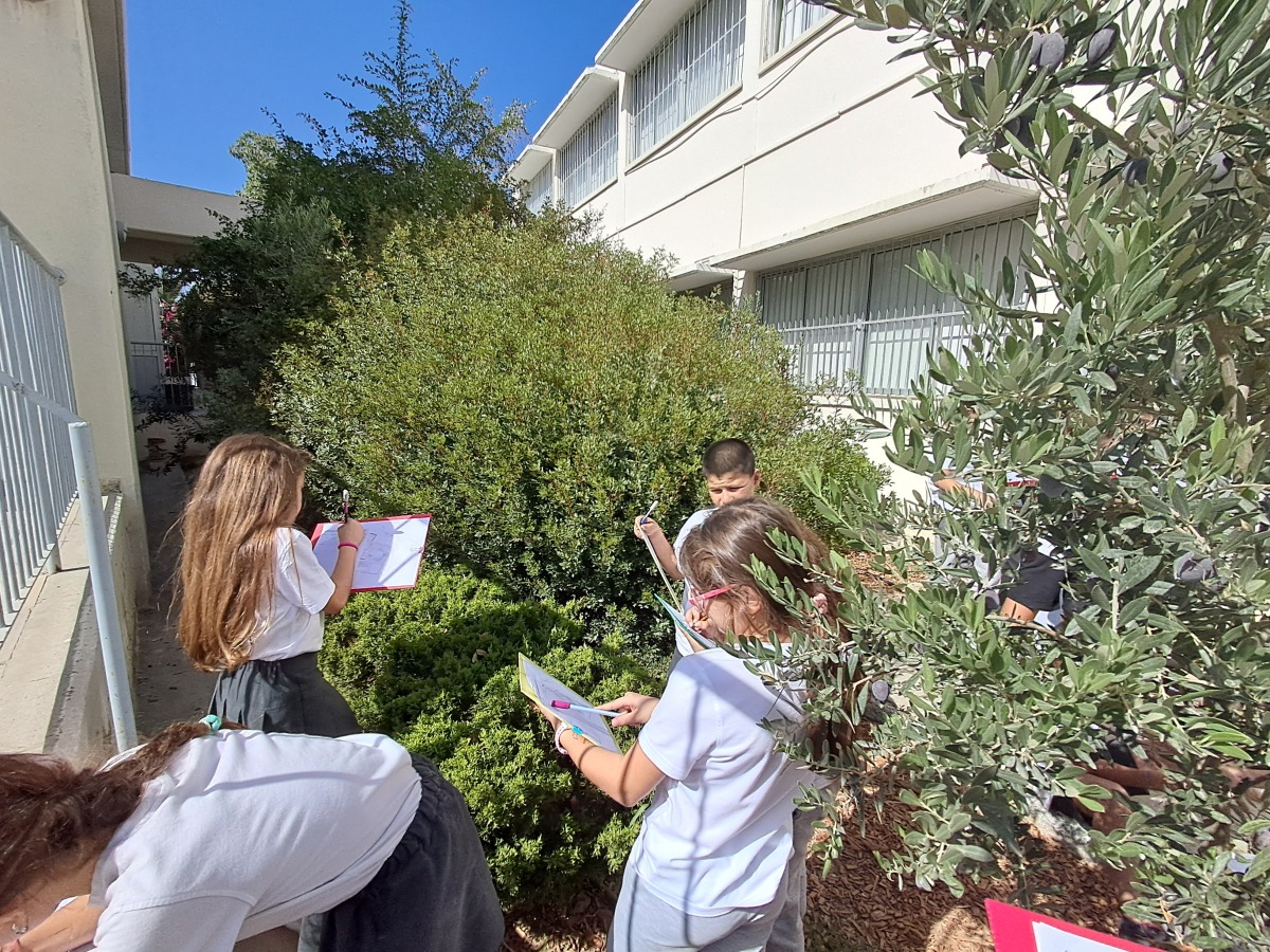 Μαθητές/μαθήτριες της Γ΄ τάξης, στο μάθημα της Γεωγραφίας, χώρισαν την σχολική αυλή σε 4 χώρους (βόρεια, νότια, ανατολικά, δυτικά), παρατήρησαν και κατέγραψαν τα είδη φυτών που βρίσκονται σε κάθε χώρο.