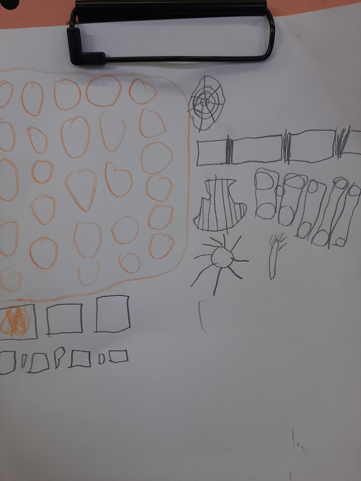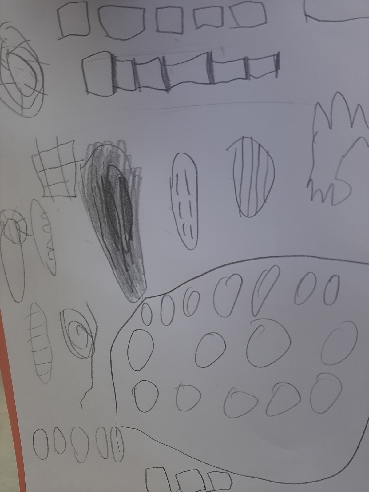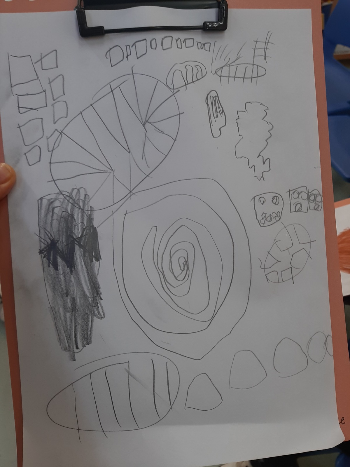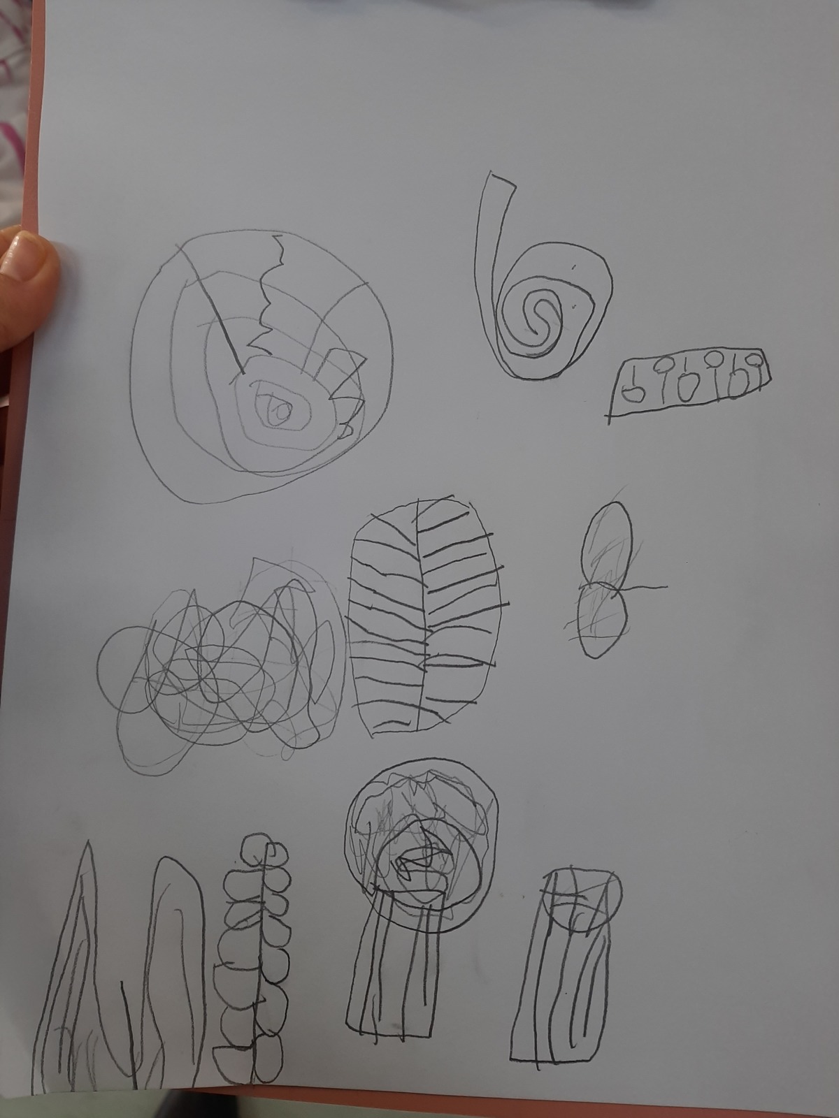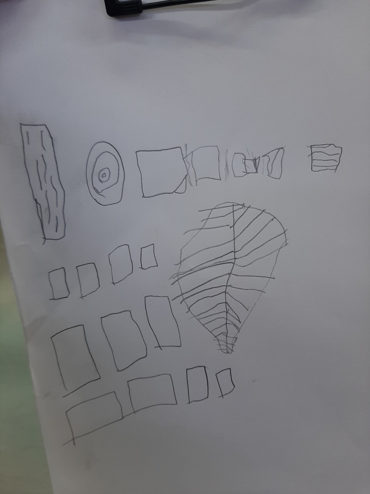Με αφορμή το προηγούμενο μάθημα, όπου τα παιδιά ζωγράφισαν στοιχεία της φύσης, διδαχθήκαμε την έννοια του μοτίβου. Αυτή τη φορά τα παιδιά έψαξαν να βρουν μοτίβα στη φύση τα οποία και κατέγραψαν - στα φύλλα, σε φλοιούς δέντρων, στην εγκάρσια τομή δέντρου, λουλούδι, σαλιγκάρι κ.λπ.